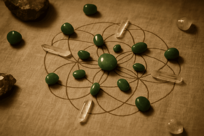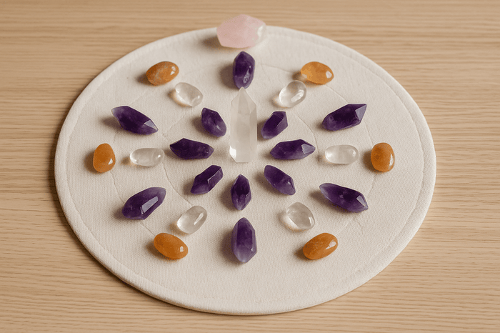 Grille cristalline pour l’abondance : comment amplifier la prospérité avec de la citrine, de la pyrite, de l’aventurine et du quartz clair