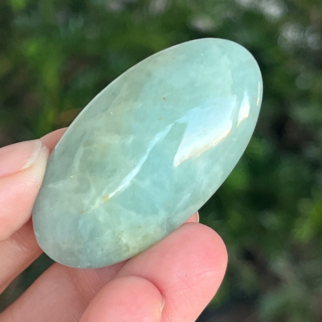 Description - Acvamarin unicat rulat , palmstone | Model 1