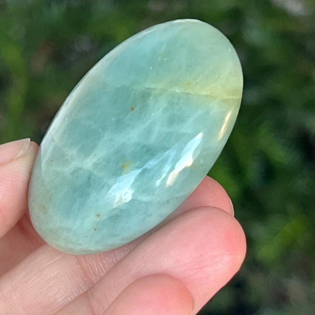 Description - Acvamarin unicat rulat , palmstone | Model 10