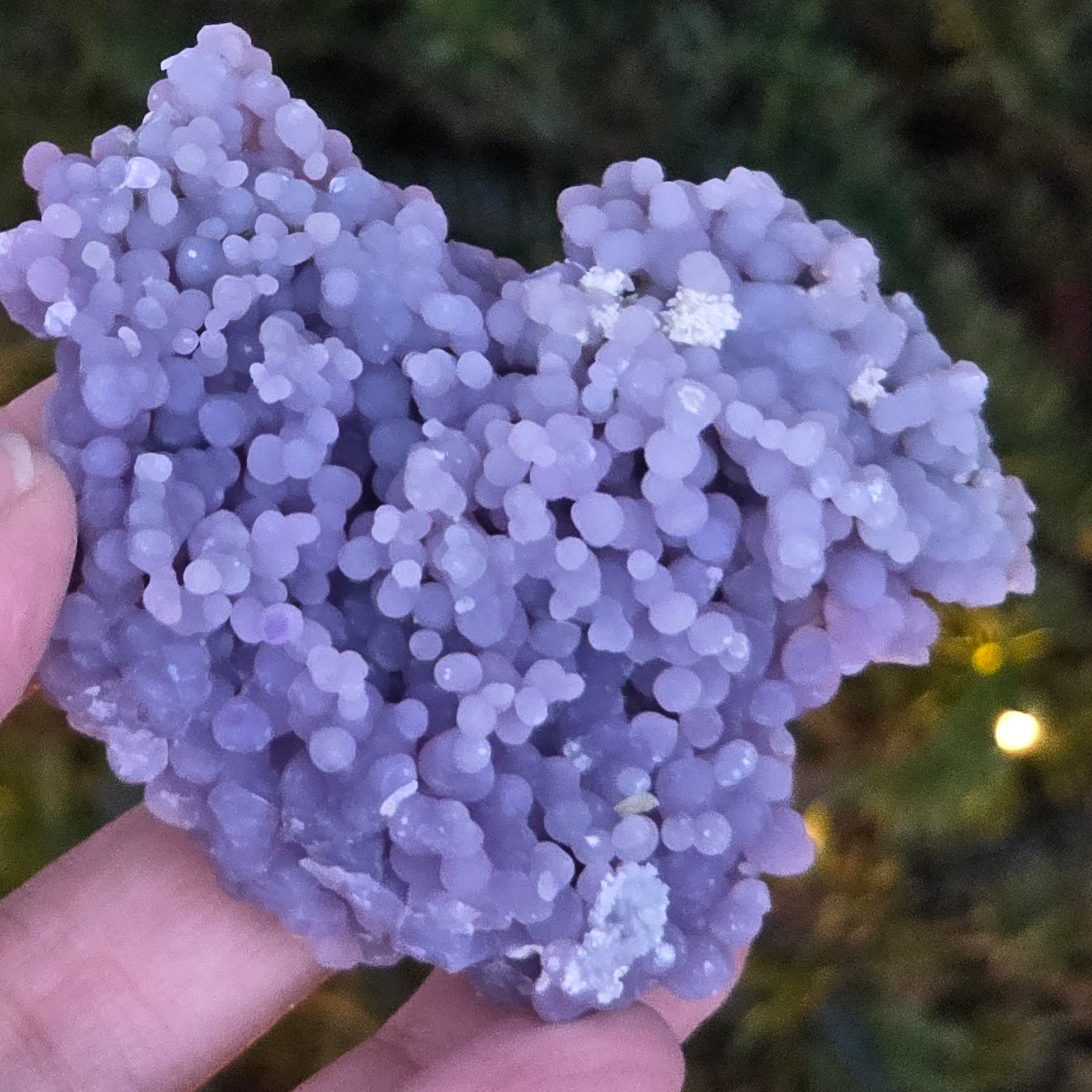 L'agate raisin se forme dans les cavités des roches volcaniques, où des solutions riches en silicium refroidissent et cristallisent, créant le motif distinctif de raisins.