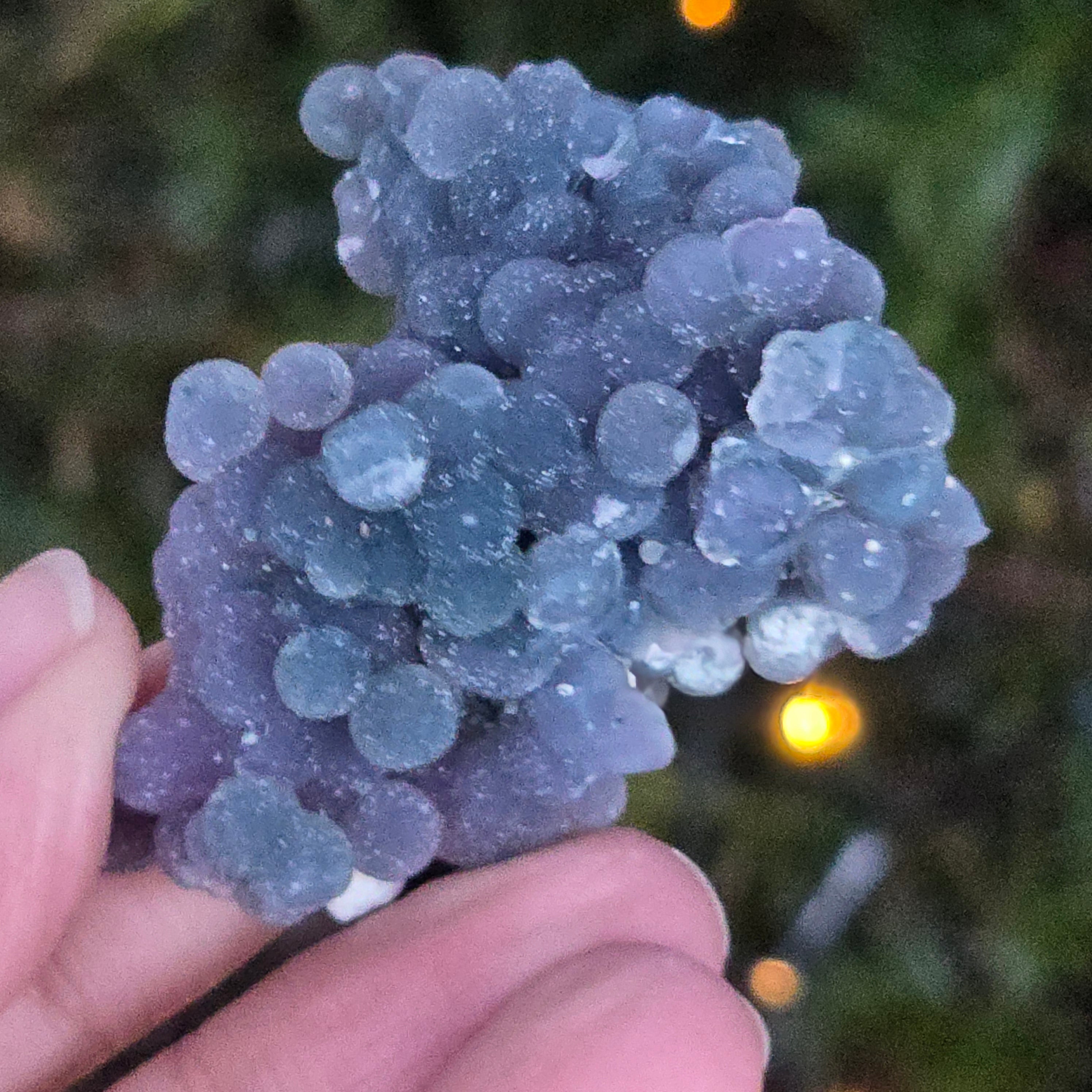 L'agate raisin se forme dans les cavités des roches volcaniques, où des solutions riches en silicium se refroidissent et cristallisent, créant le motif distinctif des raisins.