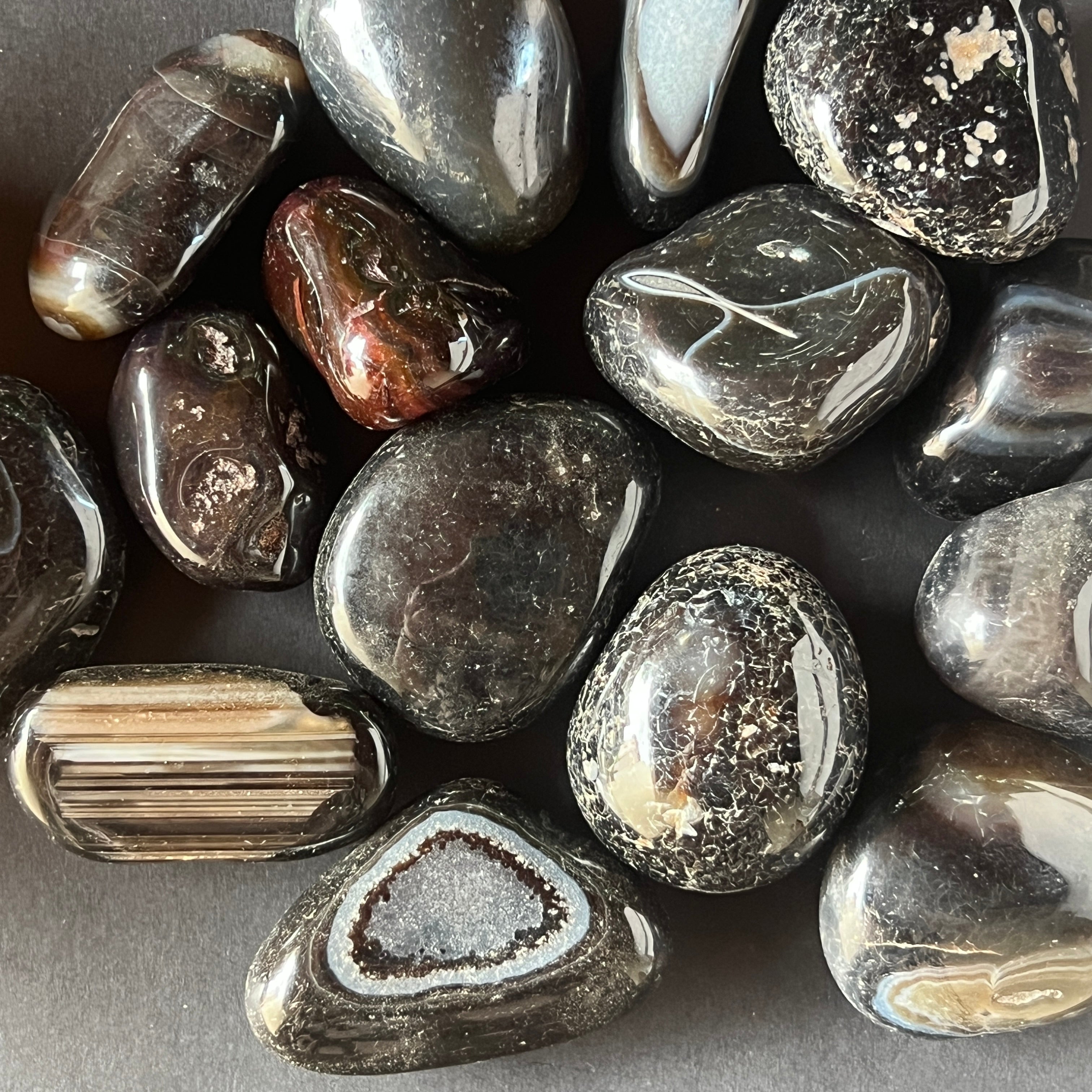 L'agate noire rayée est associée au chakra racine (chakra 1), qui est le centre de notre énergie de base, liée à la stabilité, à la sécurité et à la connexion avec la Terre. On pense que l'agate noire rayée a des effets protecteurs et enracinés, aidant à créer une base solide et à établir un équilibre émotionnel.