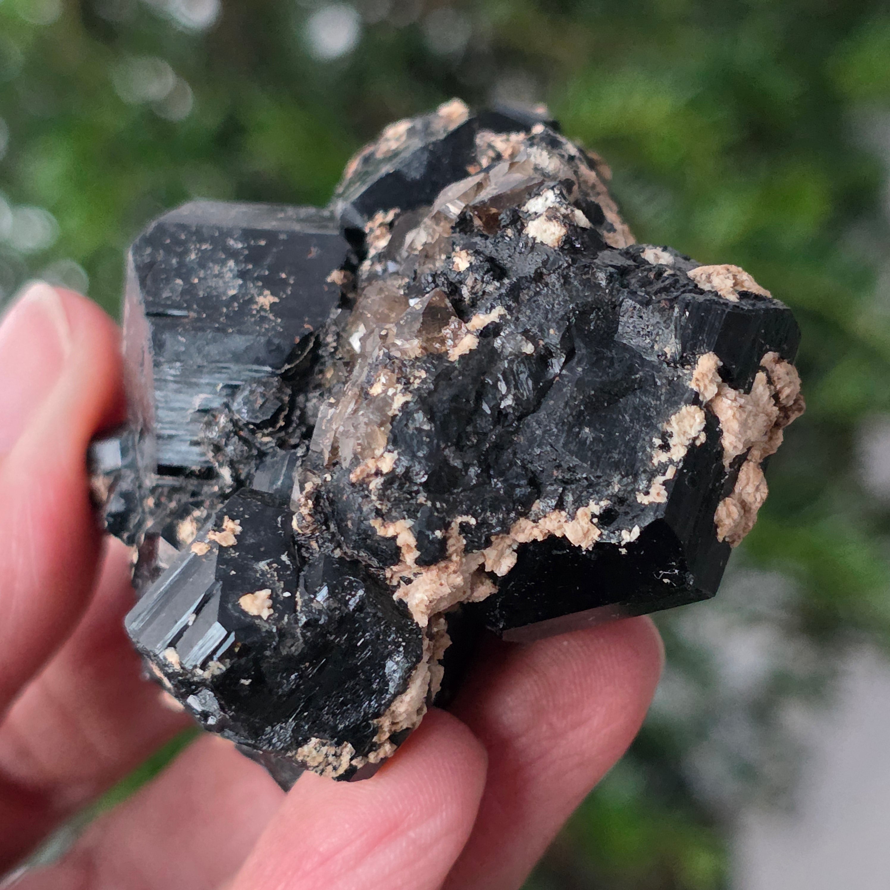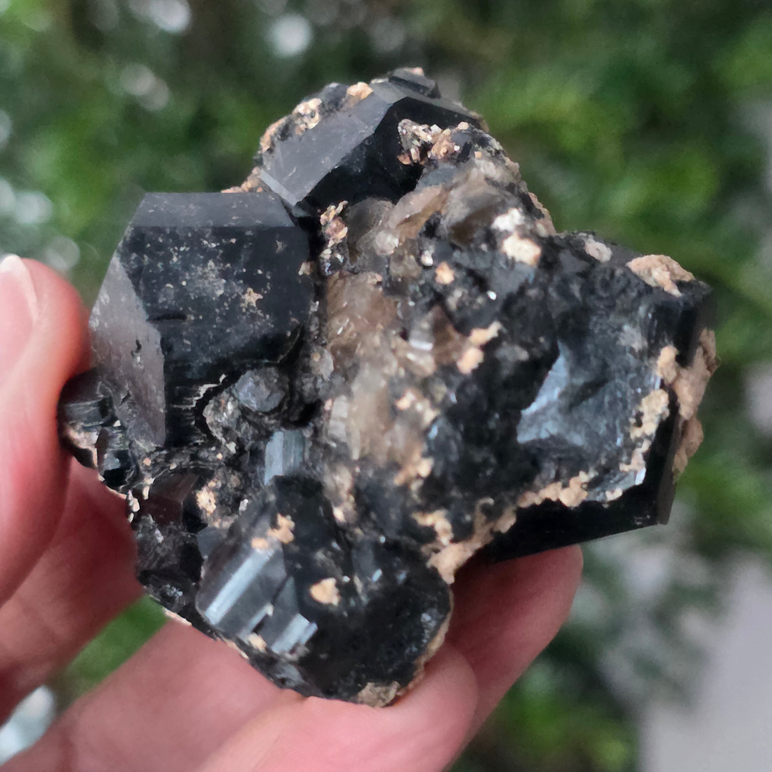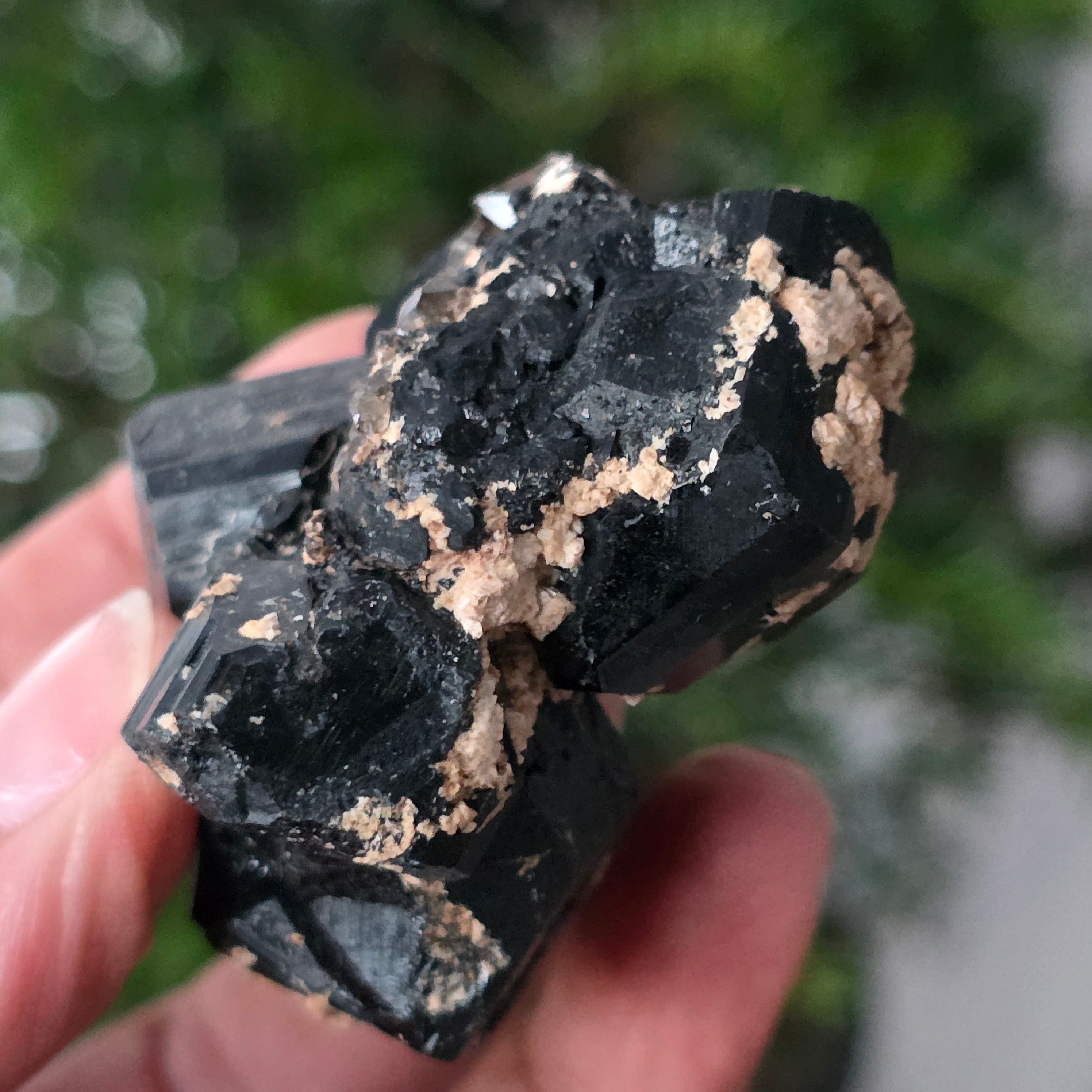 La tourmaline noire, également connue sous le nom de schorl, est constituée d'un mélange complexe de borosilicates et se présente sous diverses formes cristallines. C'est un minéral très dur et doté d'une grande résistance aux rayures et à l'usure.