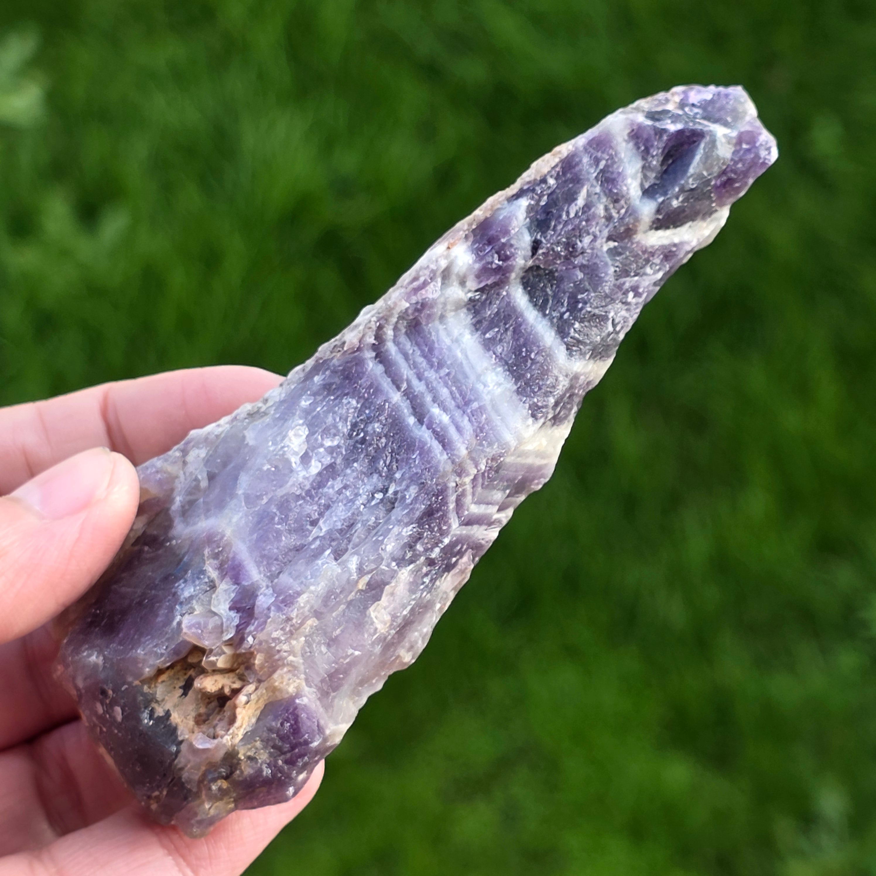 Amethyst Chevron est reconnu pour les associations avec les chakras de la Couronne et le troisième œil, augmentant l'intuition et la capacité de prendre des décisions.