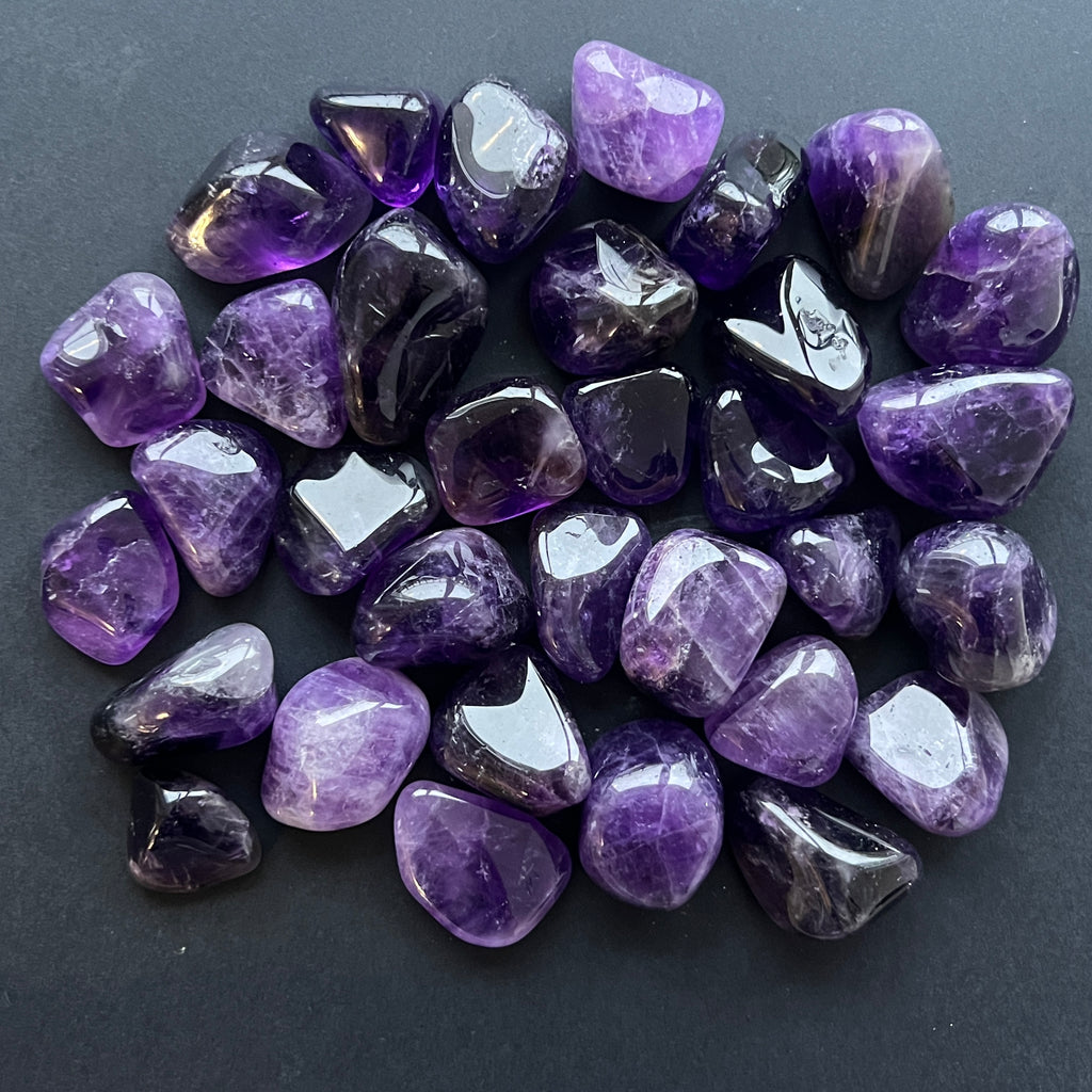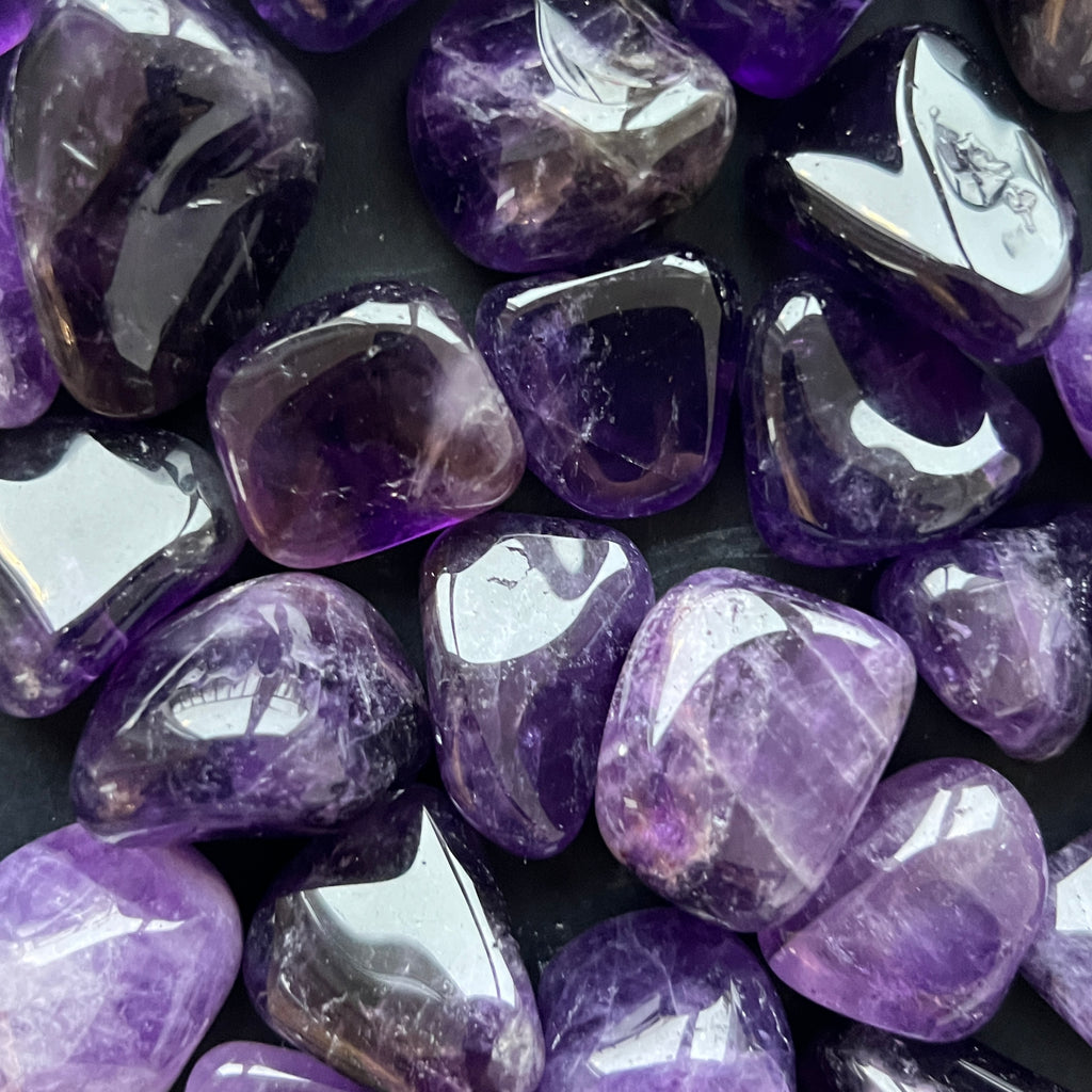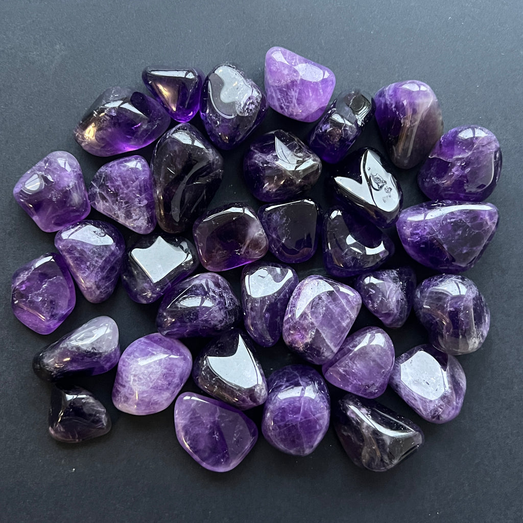 L'améthyste de Zambie est réputée pour sa teinte pourpre royal intense, souvent ponctuée de reflets translucides et de délicates irisations. Chaque pierre roulée est une petite œuvre d’art naturelle, polie pour mettre en valeur sa profondeur de couleur et son énergie pure.