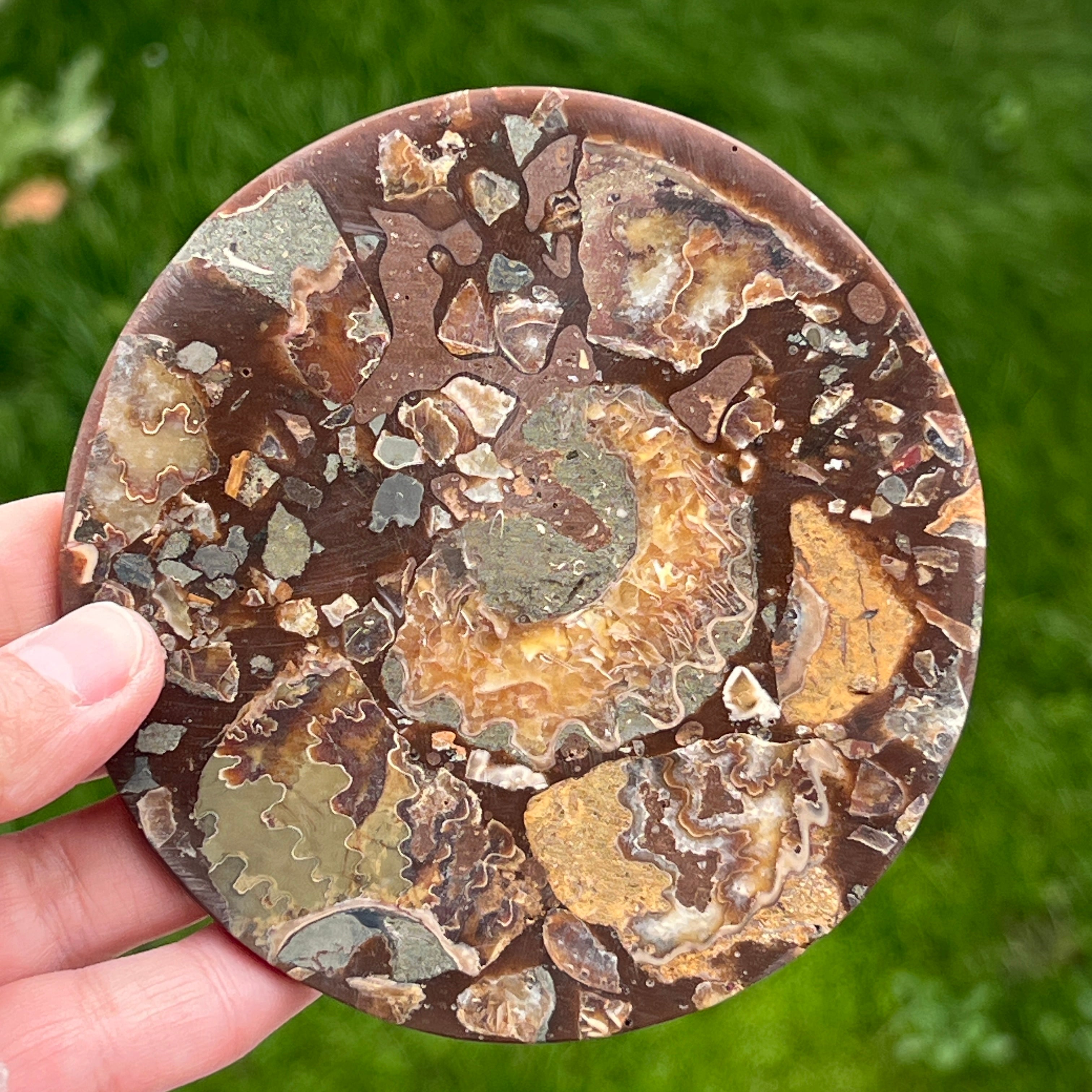 Tranche d'ammonite fossile 11,5 cm modèle 18