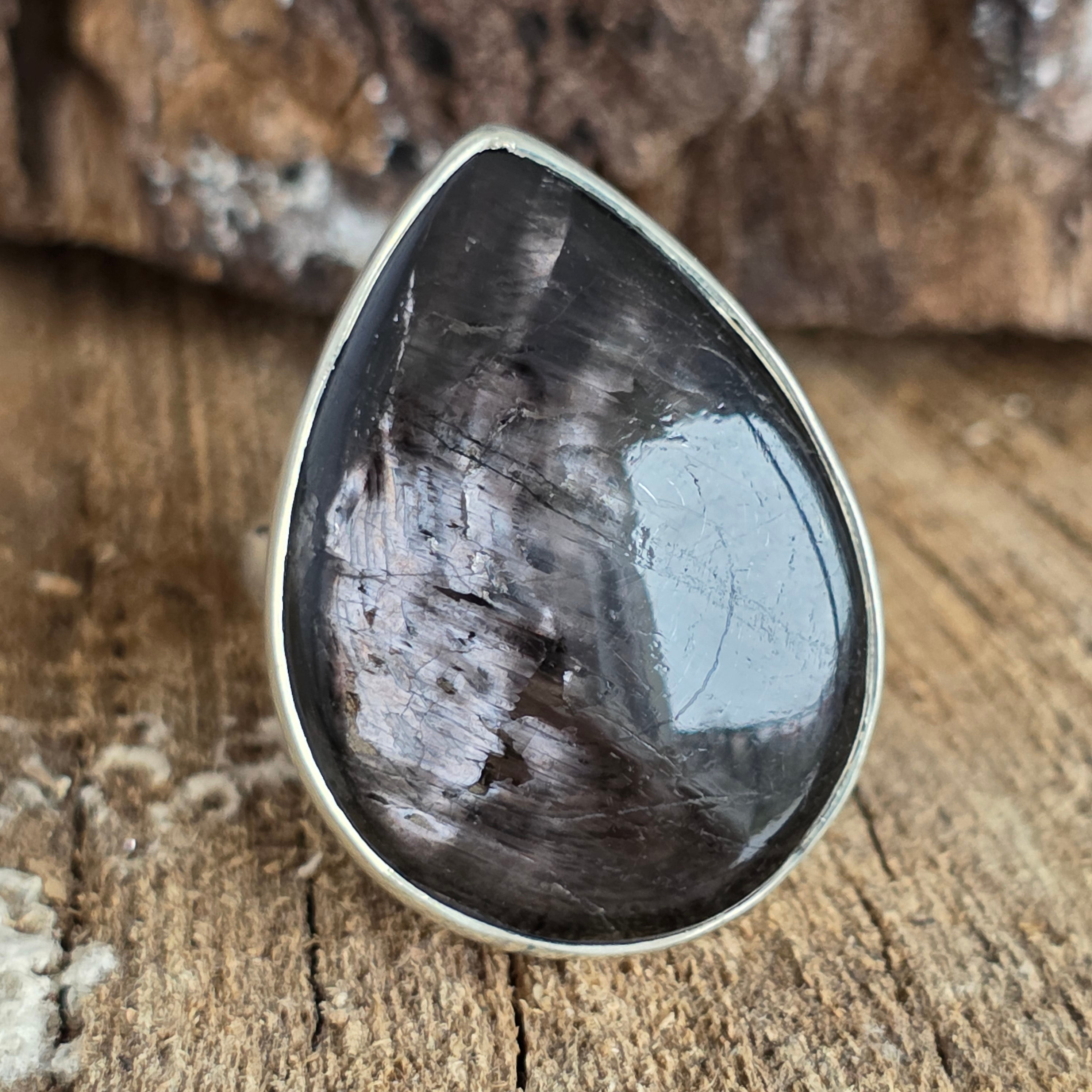 Choisissez cette bague avec hyperstène naturelle pour porter avec vous un symbole de clarté et de force intérieure – un bijou unique, créé par la nature et fini en argent.