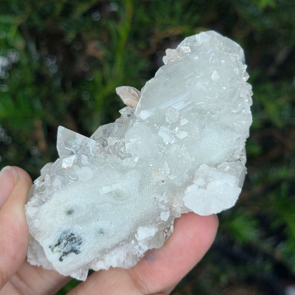 Născut în adâncurile rocilor bazaltice, acolo unde natura sculptează în tăcere formele sale perfecte, acest cluster de apofilit poartă în el claritatea și liniștea cristalelor pure.