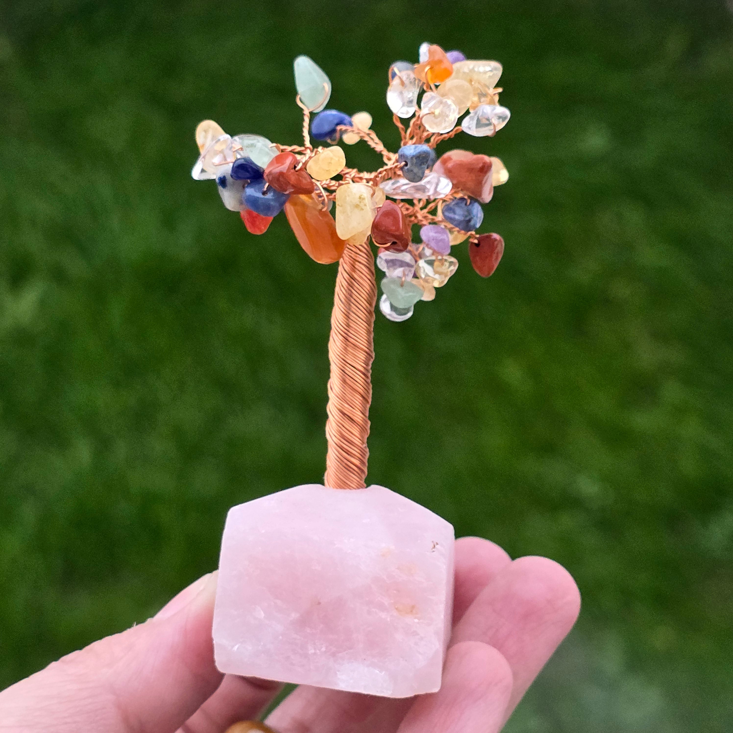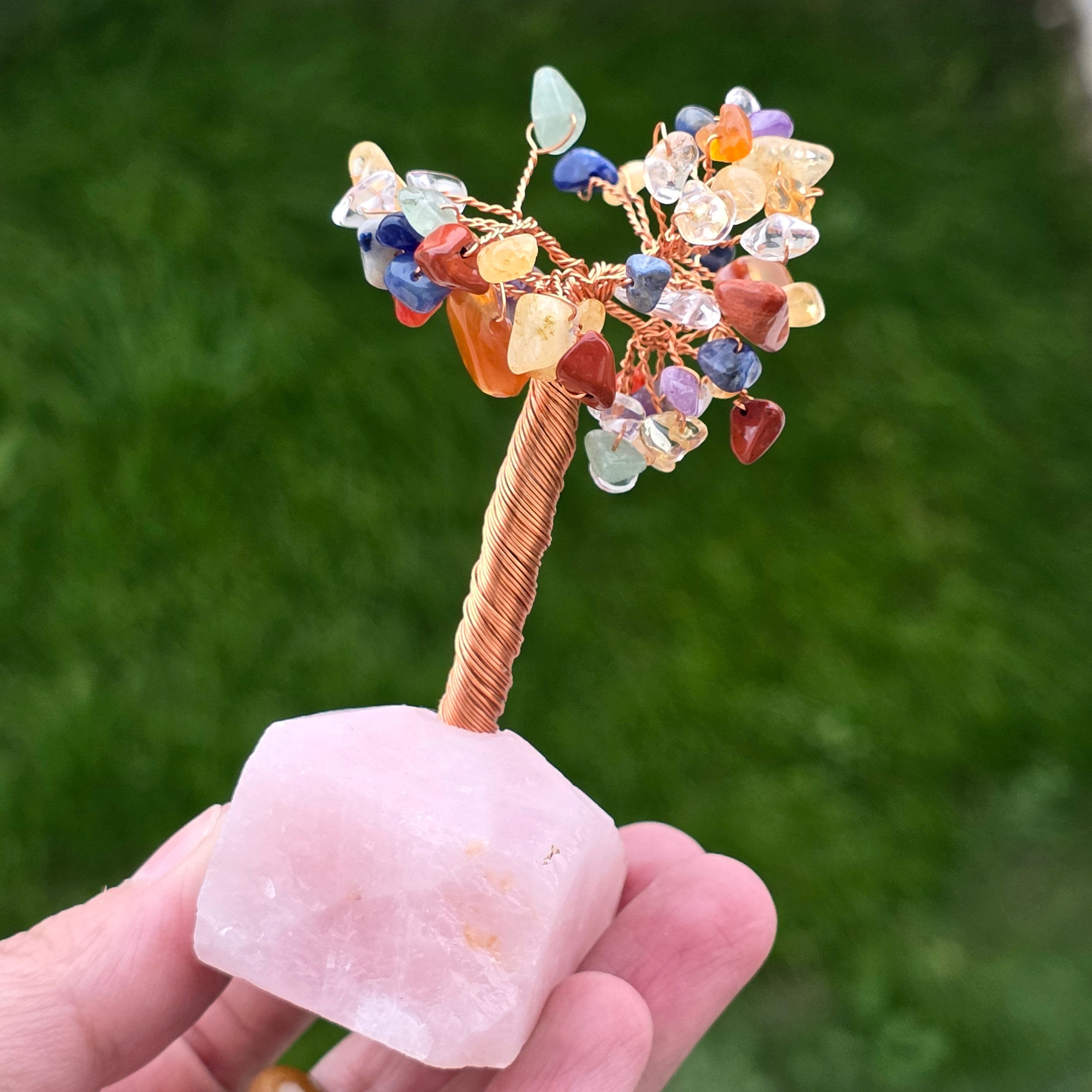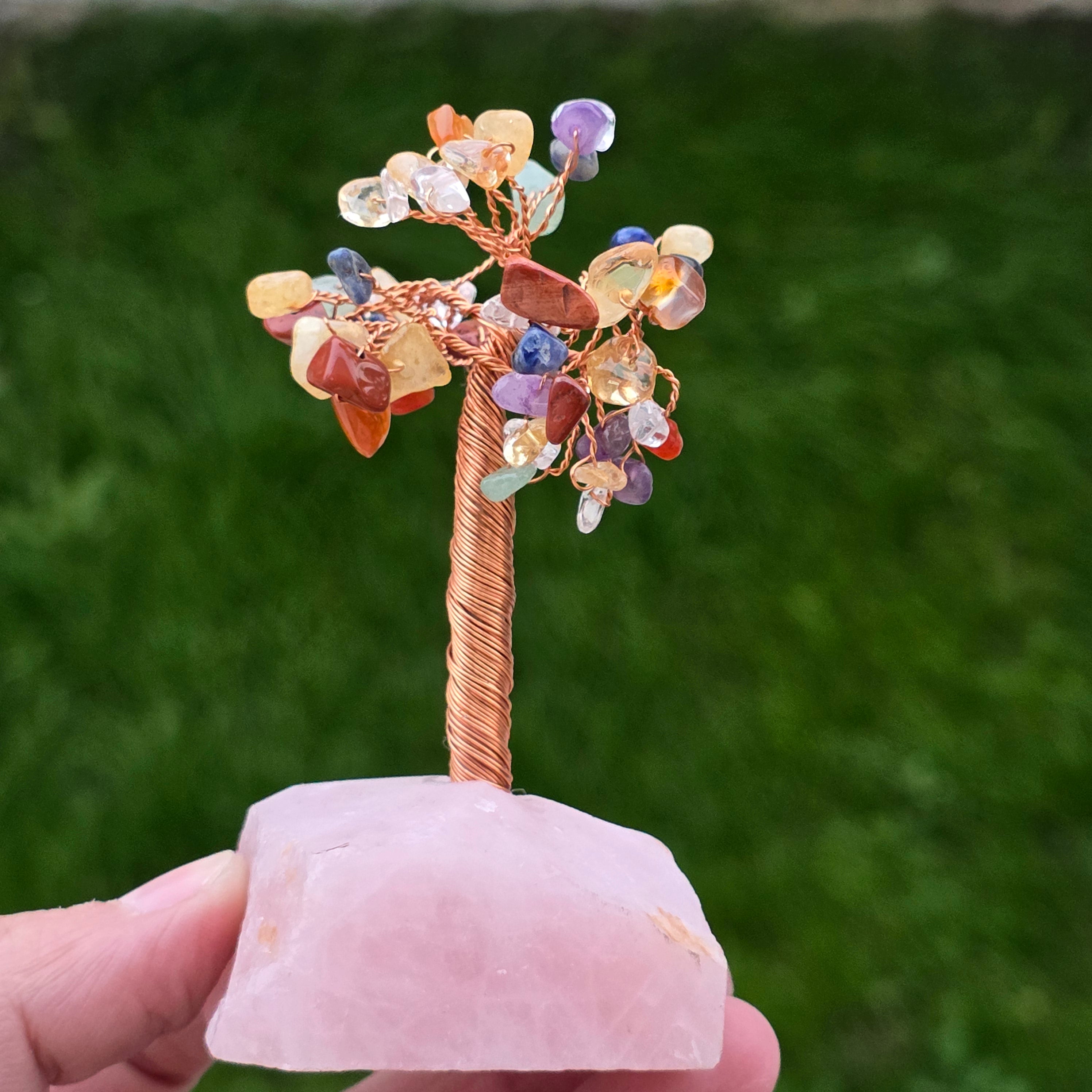 Arbre feng shui 7 chakras à base de quartz rose – taille S