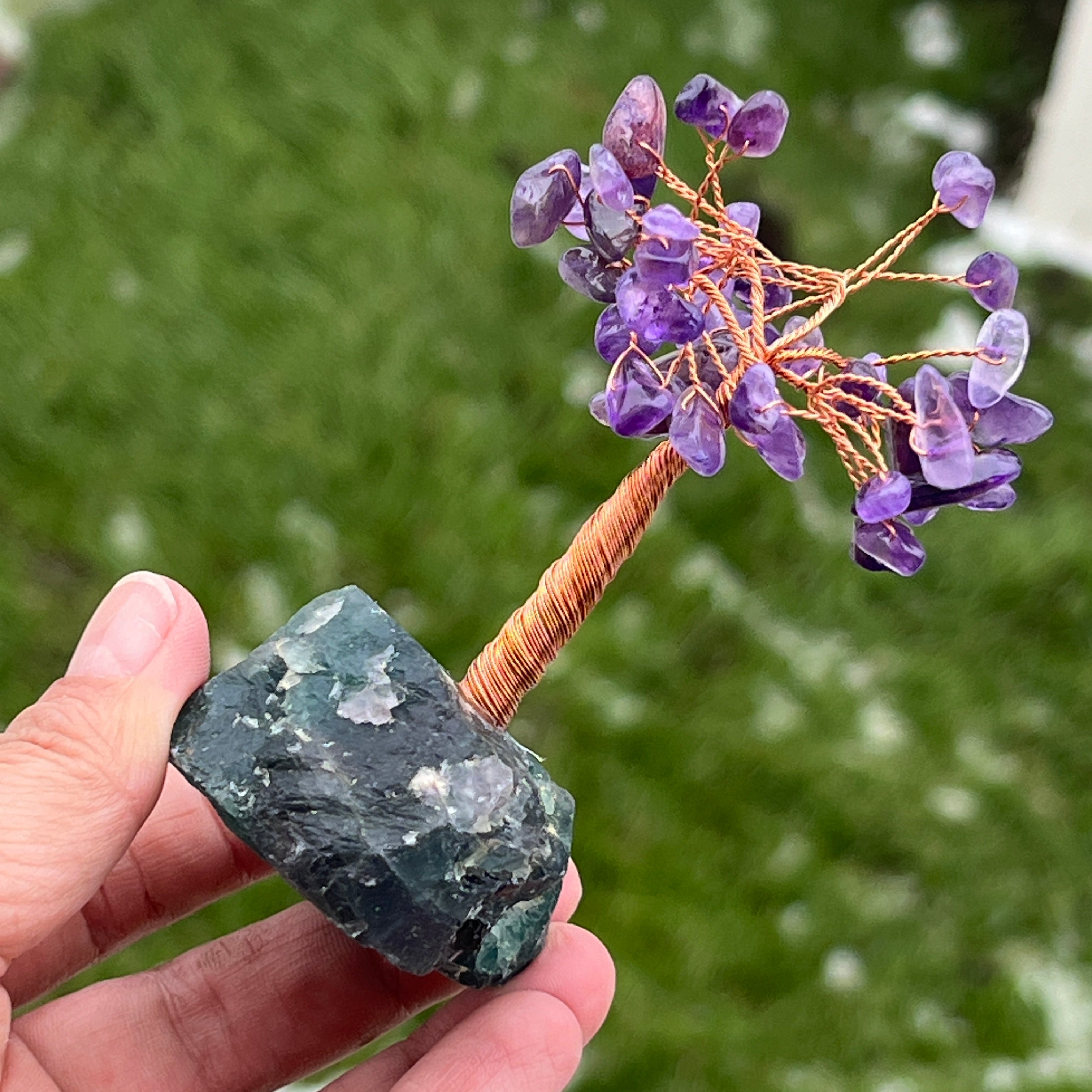 Arbre feng shui avec améthyste sur base de fluorite – taille S