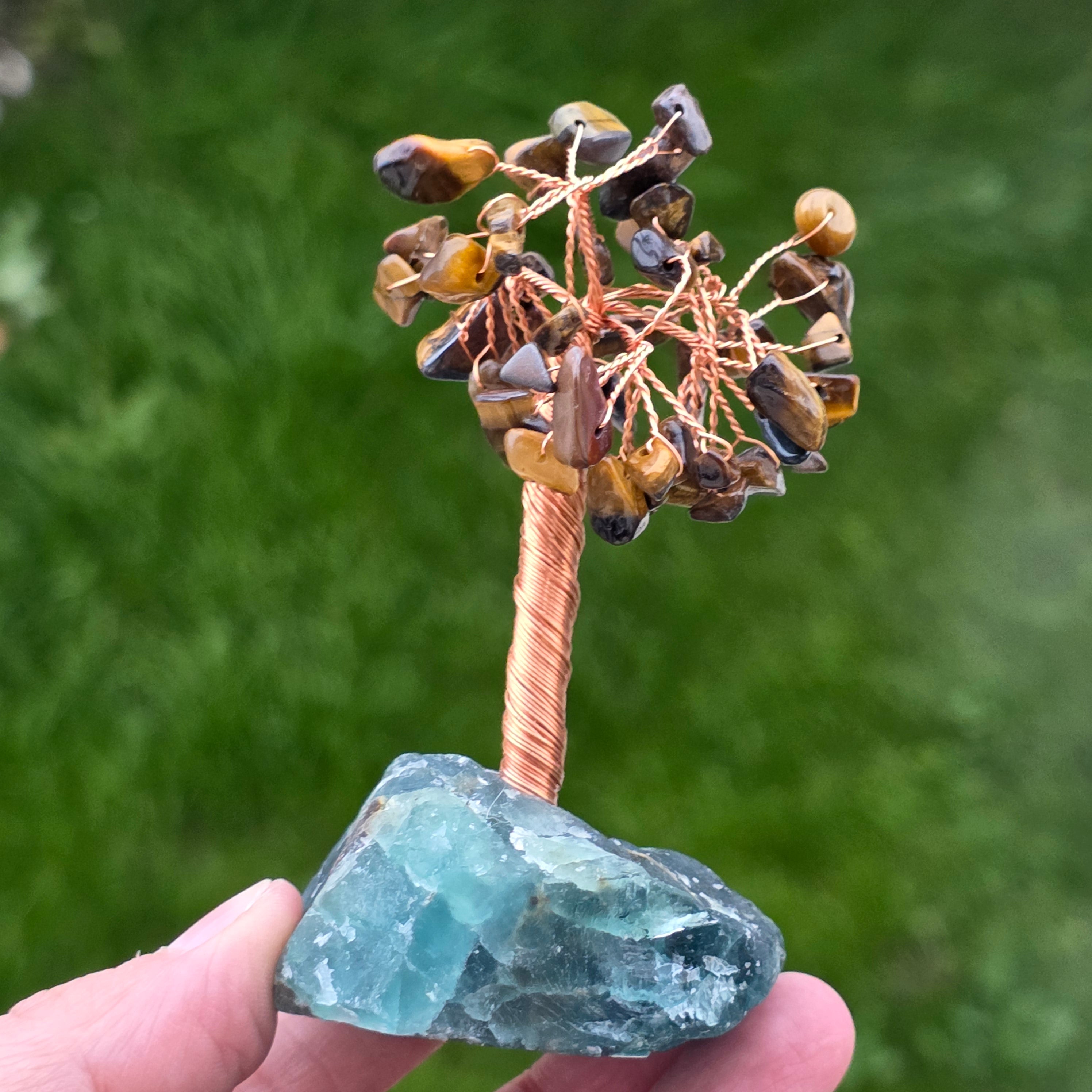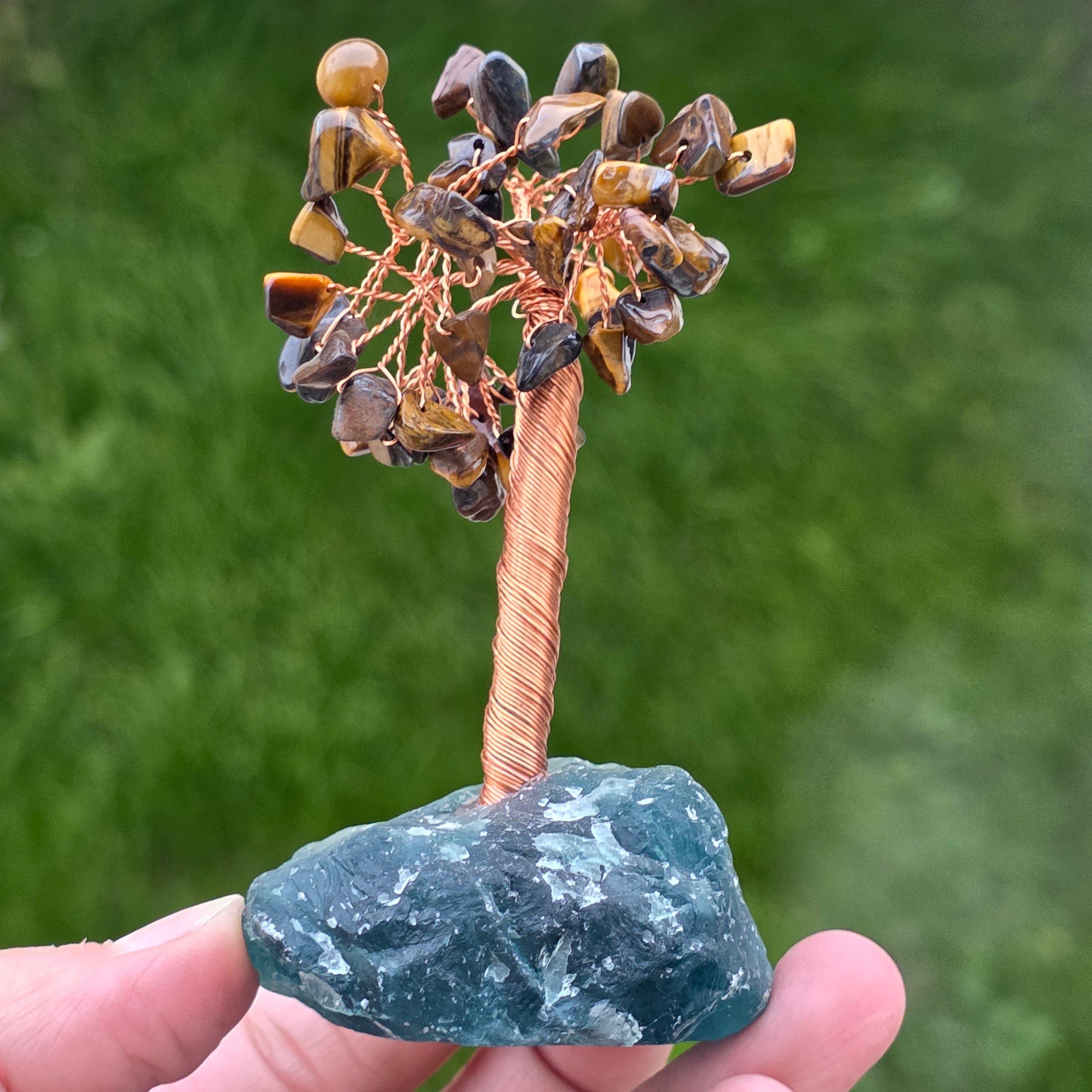 Arbre feng shui avec œil de tigre sur base d’aventurine – taille S