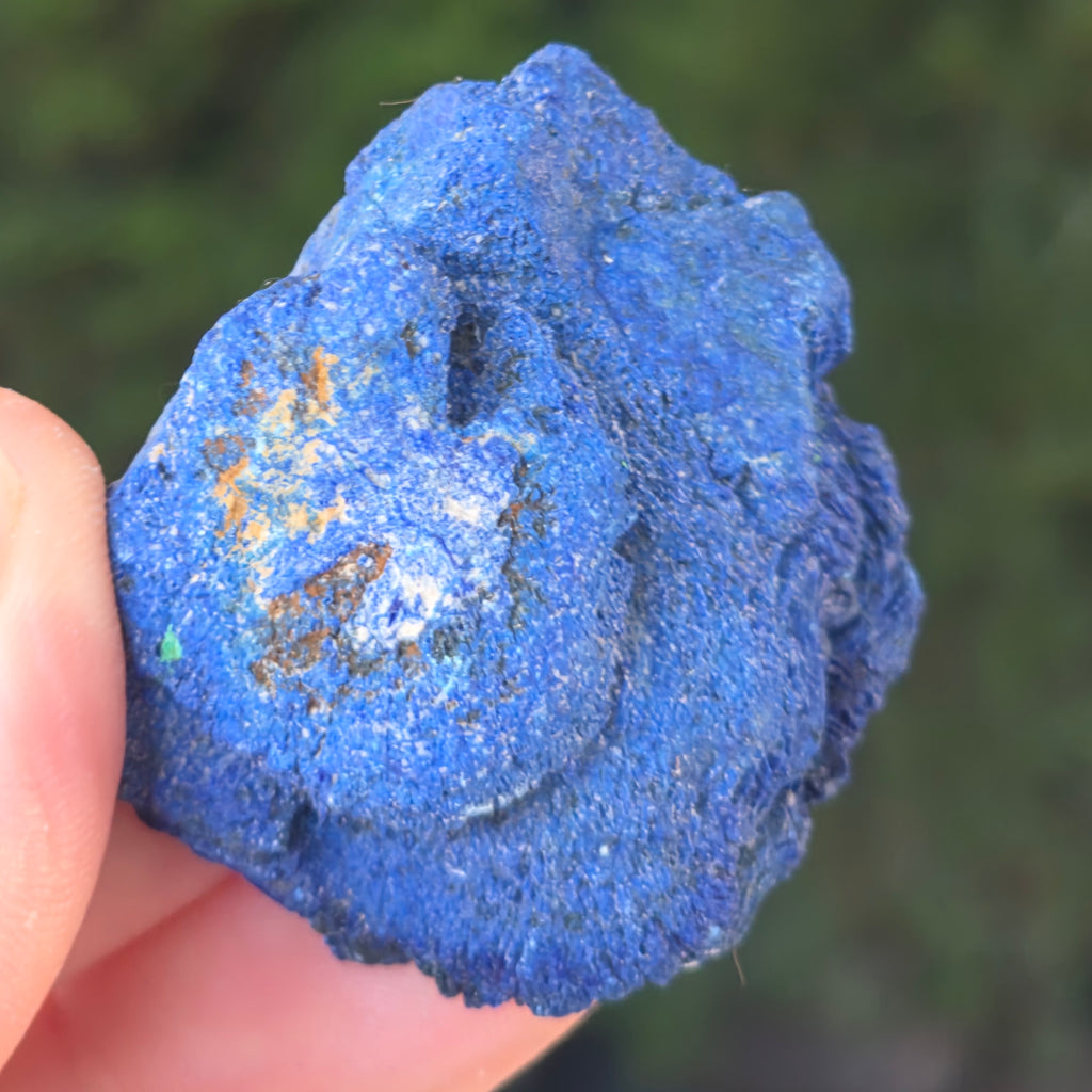 L'azurite se forme principalement dans les zones d'oxydation des gisements de cuivre. Le processus de formation implique l’interaction d’eaux souterraines riches en carbonates avec des minerais de cuivre, entraînant la cristallisation de l’azurite dans les fractures et les vides rocheux. L'azurite est souvent associée à la malachite, un autre minéral de cuivre, de couleur vert foncé. Les deux minéraux se forment dans des conditions similaires et se retrouvent parfois ensemble sous forme de pierres azurite-malachite.