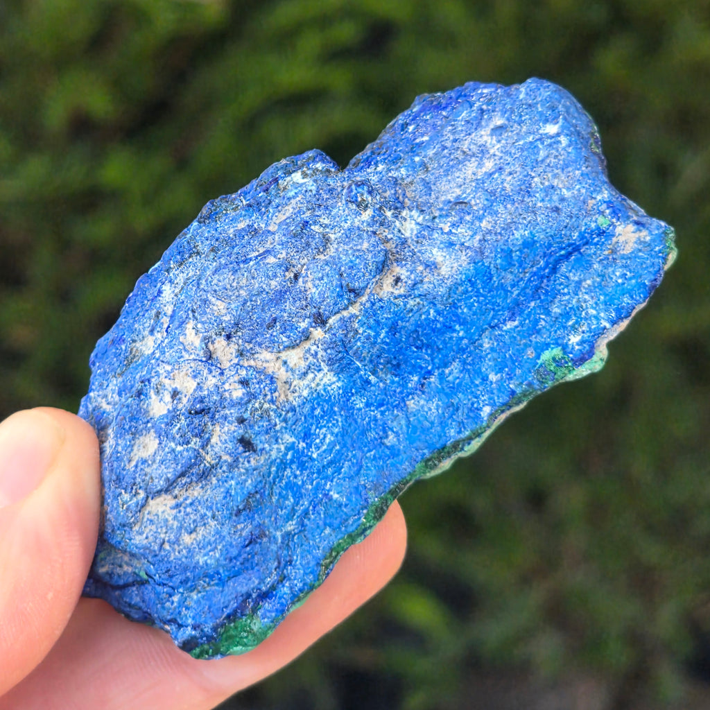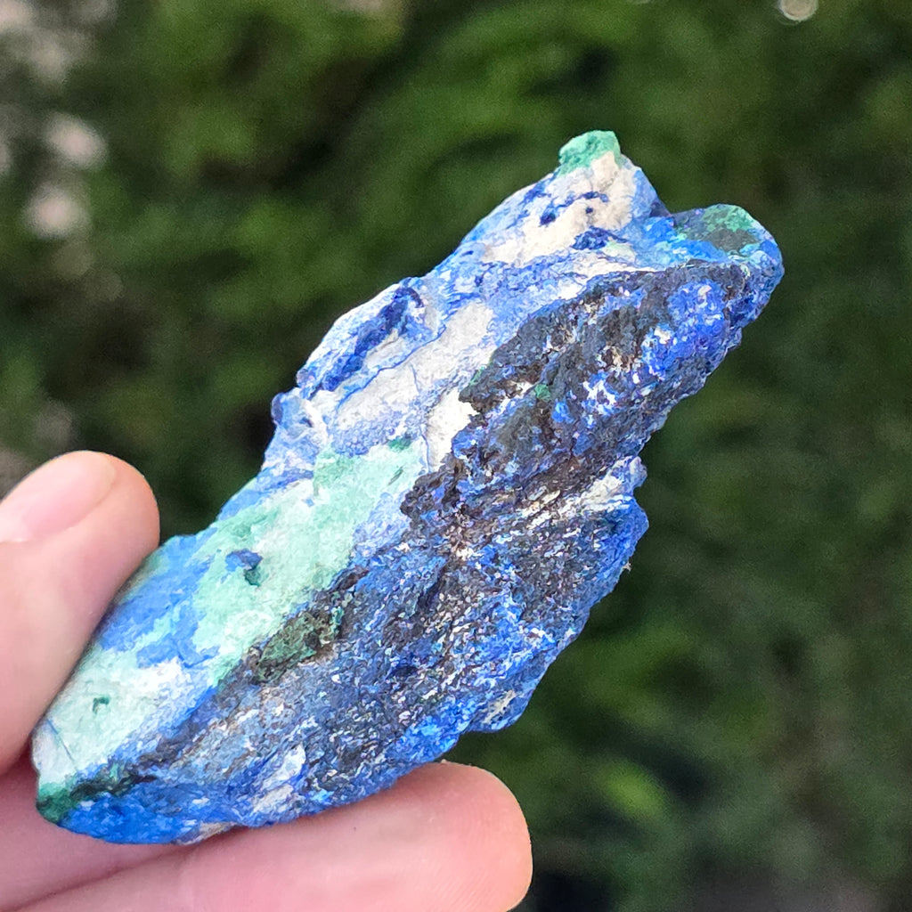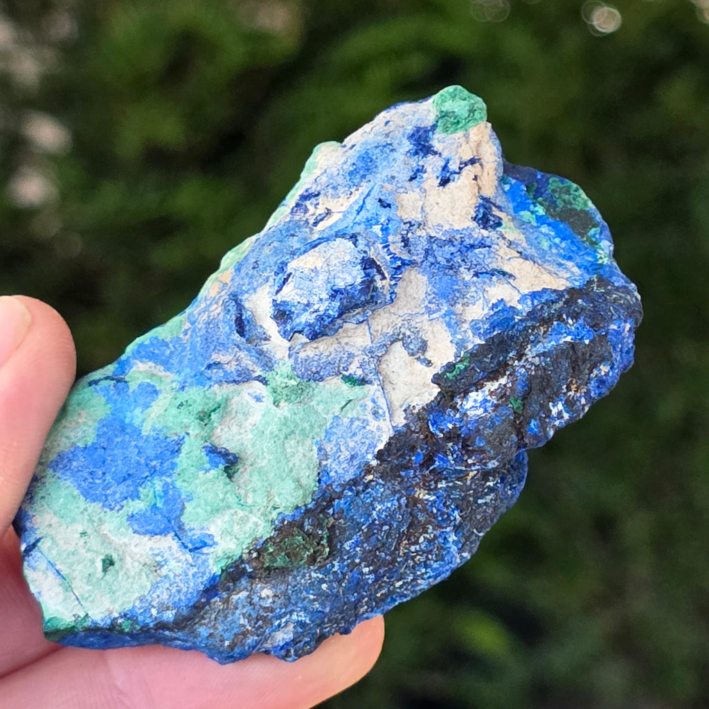 L’azurite se forme principalement dans les zones d’oxydation des gisements de cuivre. Le processus de formation implique l’interaction d’eaux souterraines riches en carbonate avec des minerais de cuivre, ce qui entraîne la cristallisation de l’azurite dans les fractures et les vides rocheux. Souvent, l’azurite est associée à la malachite, un autre minéral de cuivre qui a une couleur vert foncé. Les deux minéraux se forment dans des conditions similaires et se trouvent parfois ensemble sous la forme de pierres d’azurite-malachite.