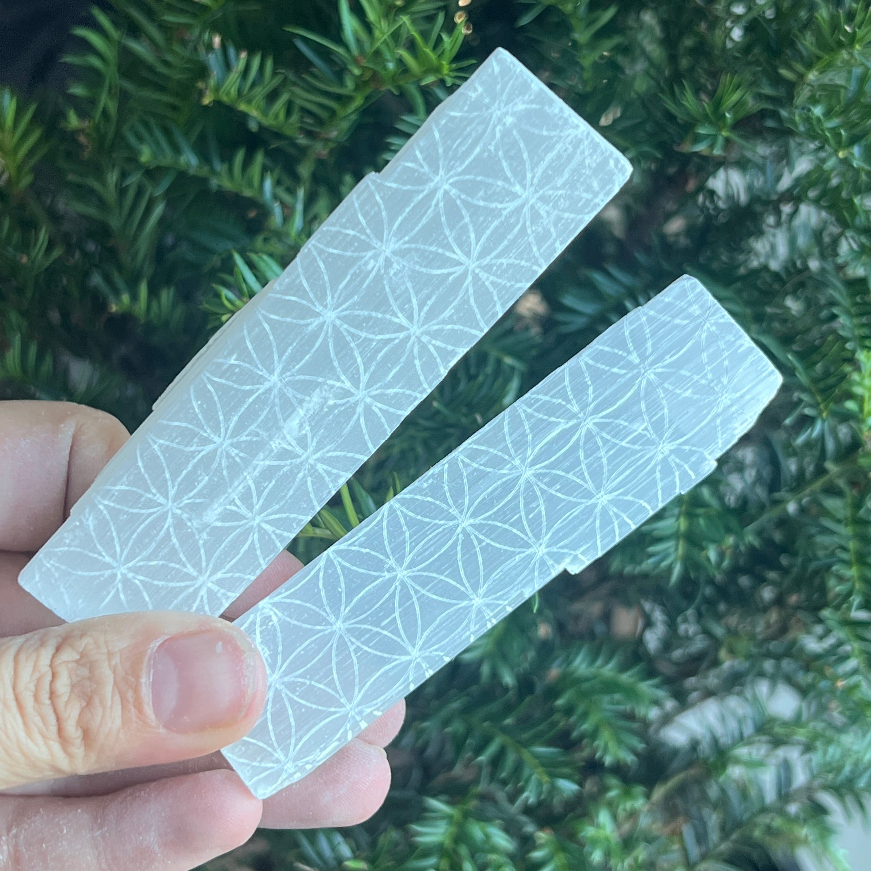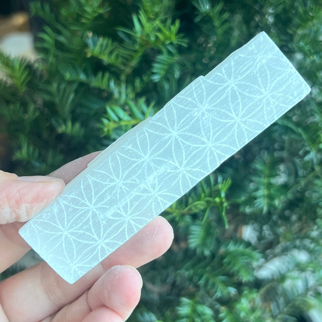 Avis - Bagheta selenit Flower of Life, felie selenit bruta