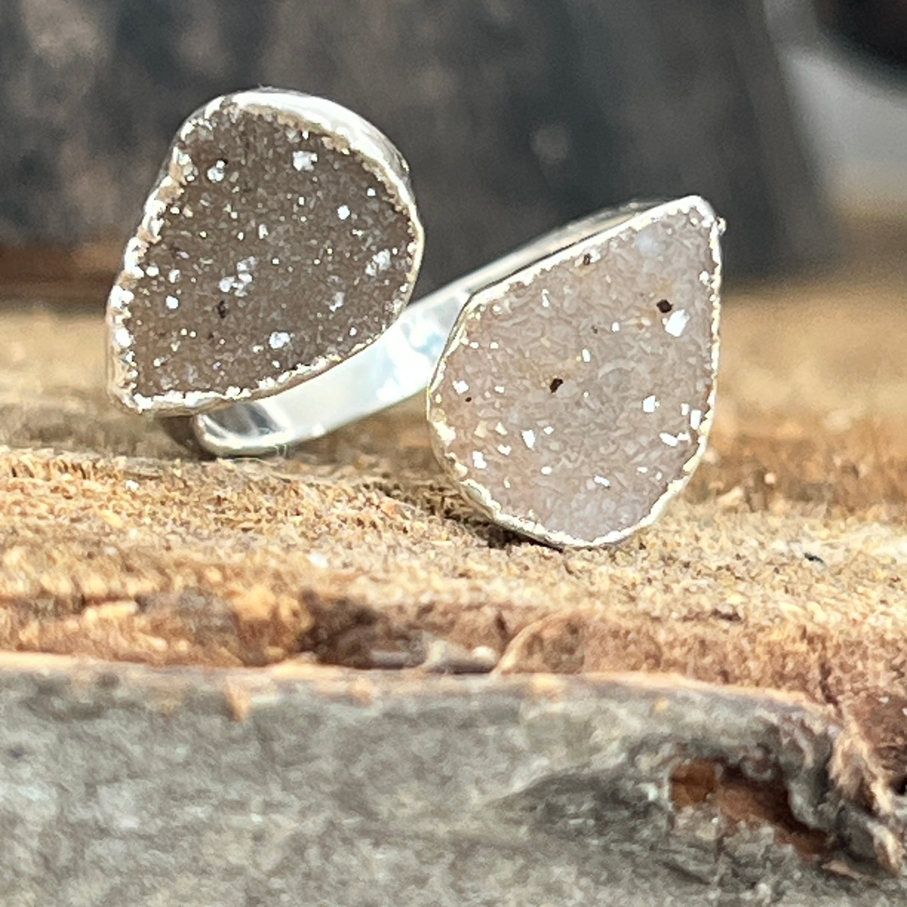Description - Bague agate druzy réglable plaquée argent du Brésil modèle 2