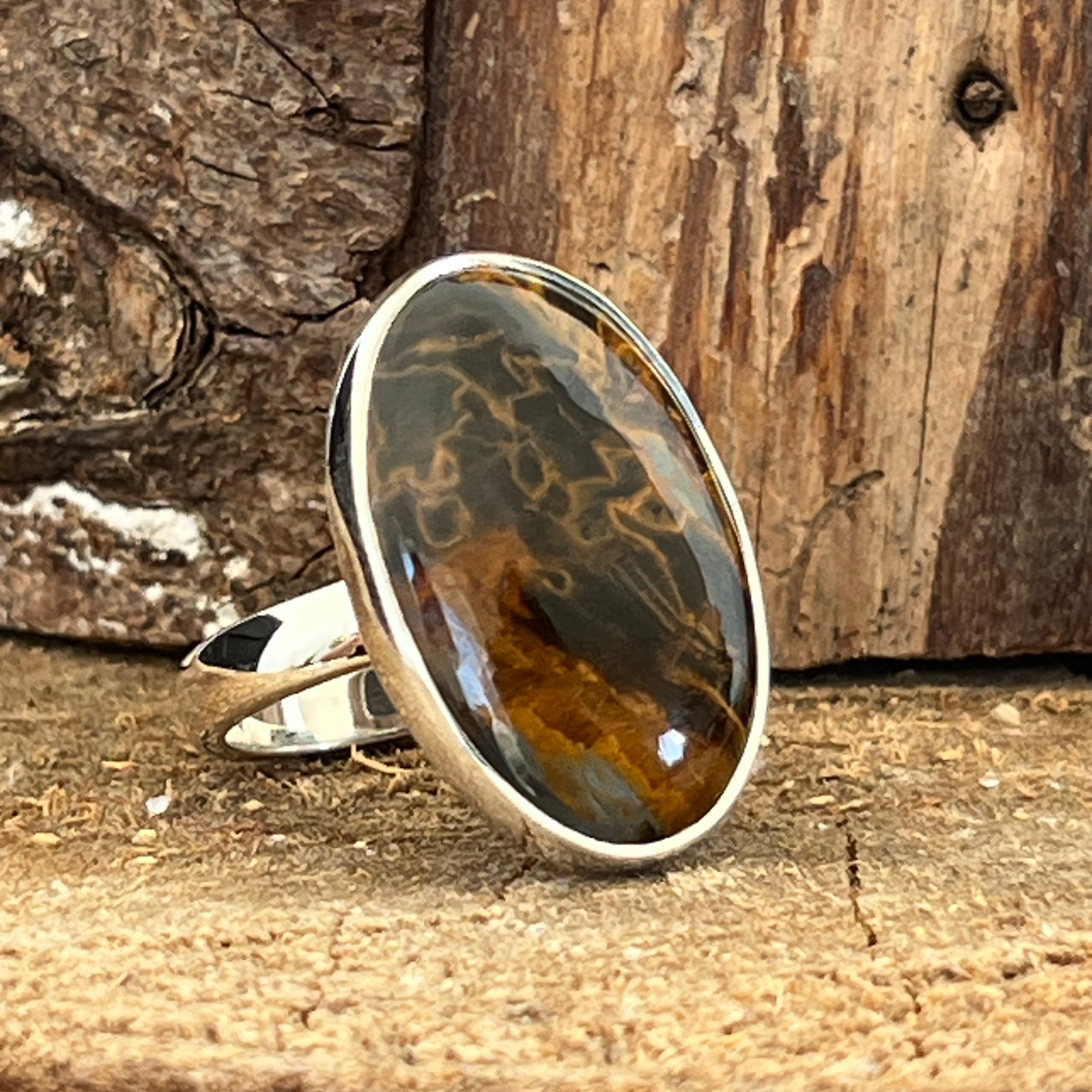 Description - Bague ajustable Pietered en argent, pierre de tempête modèle 1