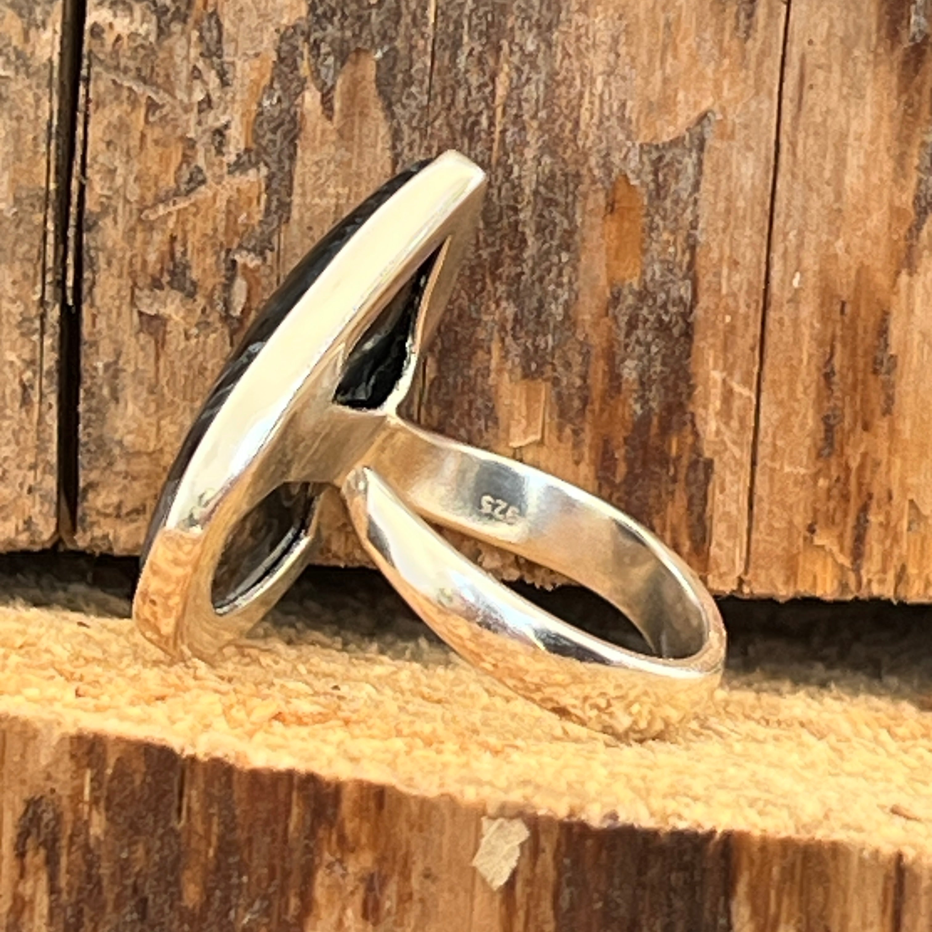 Description - Bague ajustable en argent, pierre de tempête modèle 3