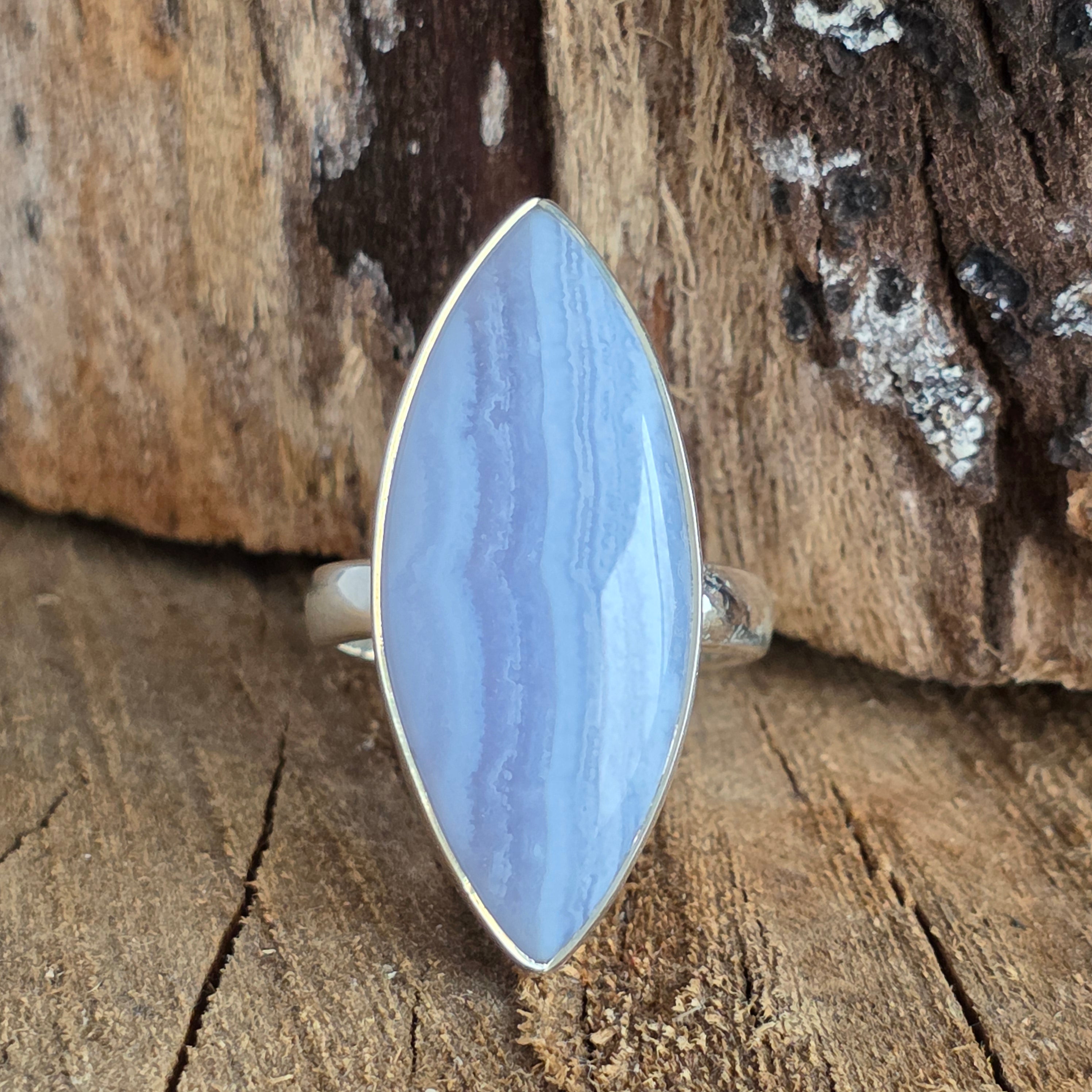 Bague dentelle bleue calcédoine argent | Modèle 1