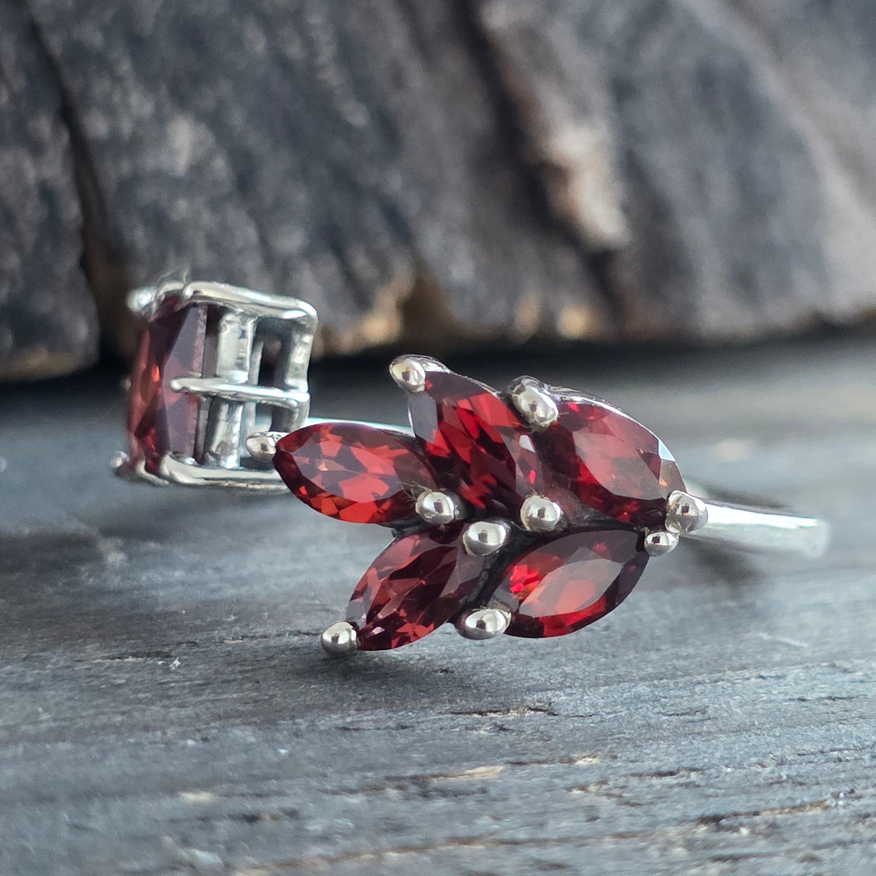 Description - Bague en argent grenat | Fleurs 2