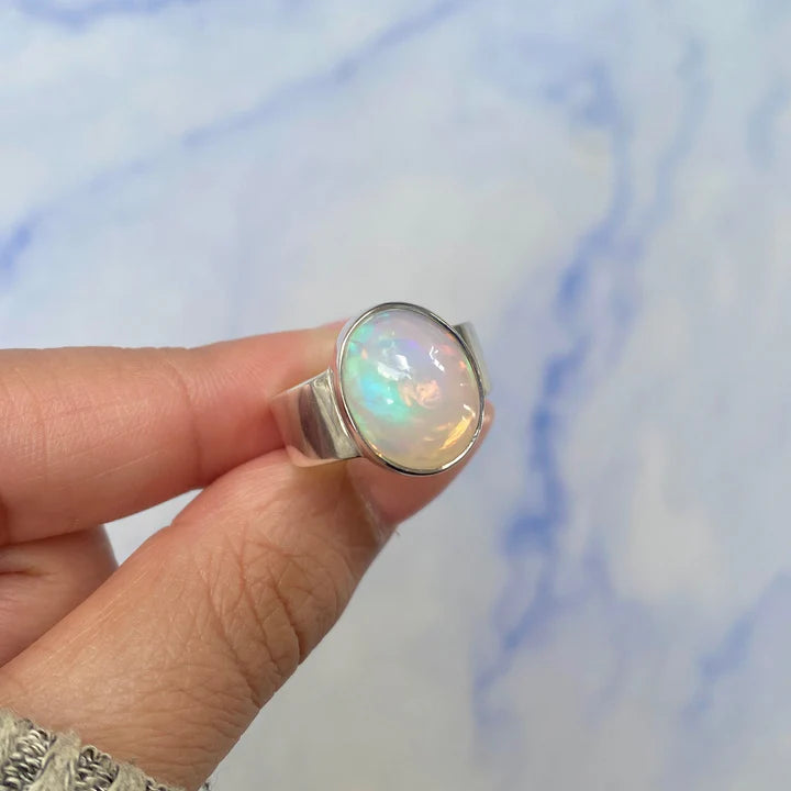 Description - Bague en argent opale éthiopienne | Modèle 9
