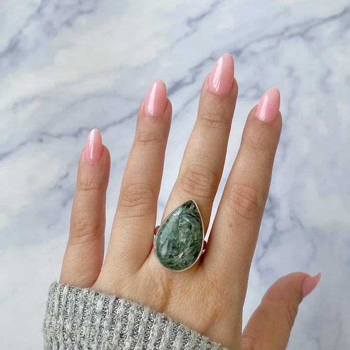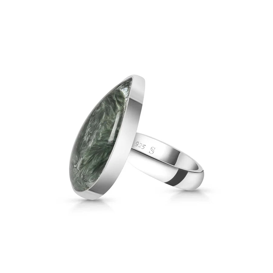 La séraphinite se distingue par ses nuances subtiles de vert, harmonieusement mêlées à des stries argentées ou blanches, qui ressemblent aux ailes d’un ange. Cette combinaison de couleurs et de motifs naturels crée un aspect délicat et charmant dans les bijoux. La séraphinite est souvent associée aux énergies angéliques et spirituelles, étant considérée comme une pierre de lumière et d’amour divin.