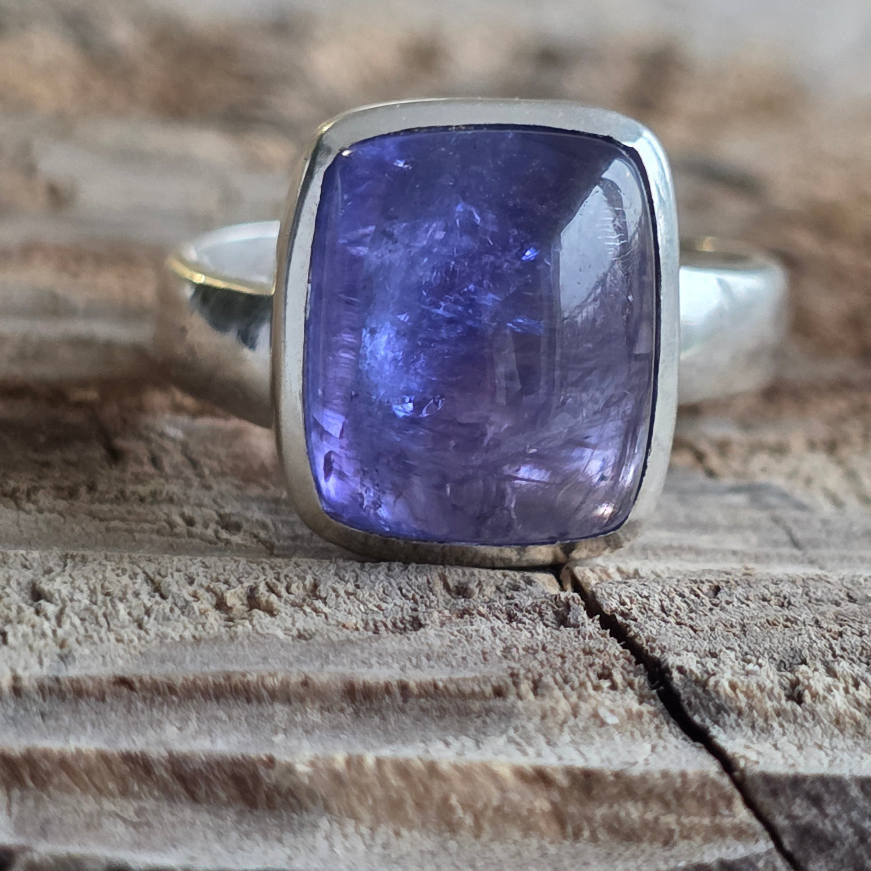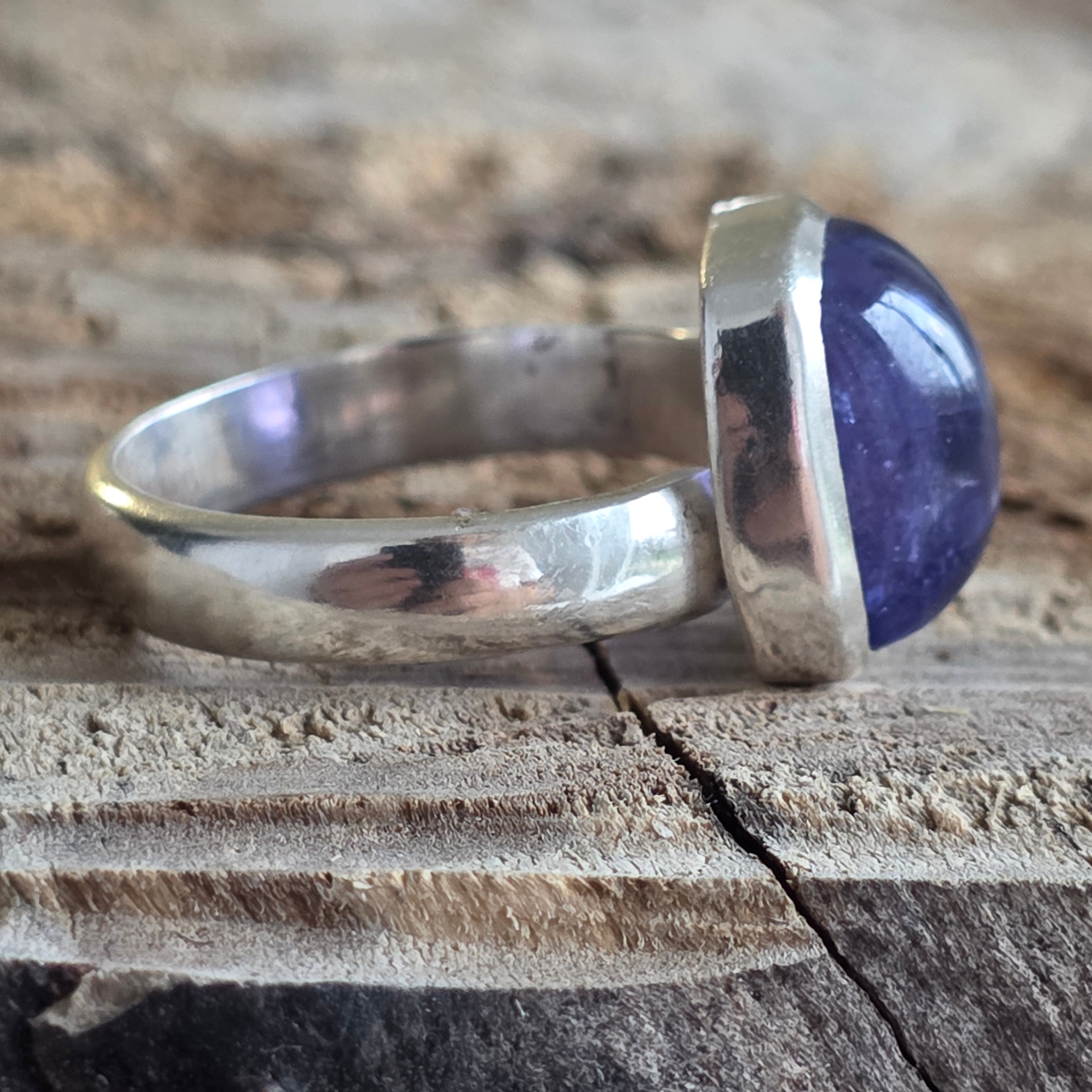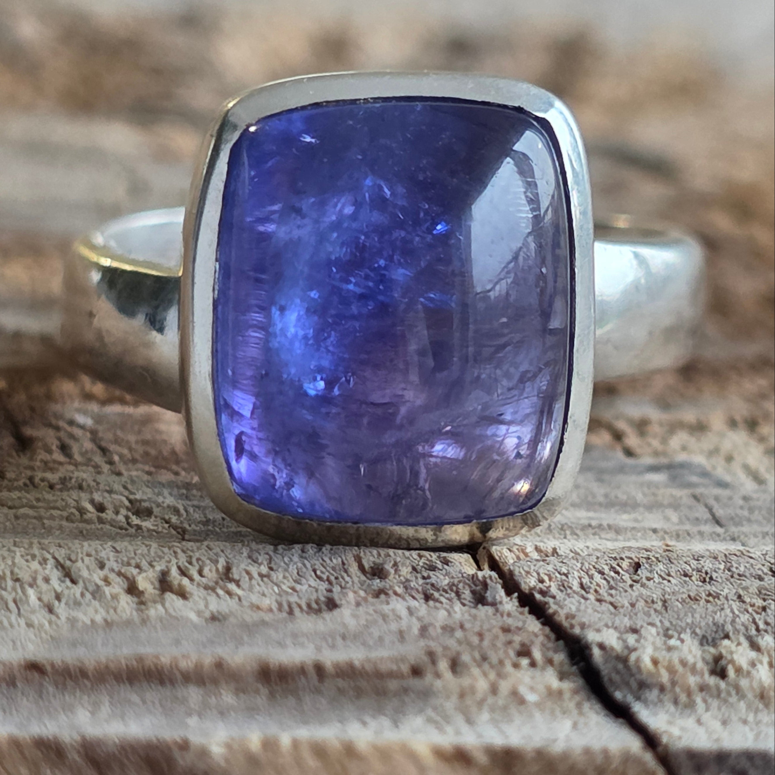 Cette bague en argent avec tanzanite impressionne par ses nuances intenses de bleu-violet, offrant un aspect élégant et raffiné. Son design met en valeur la beauté naturelle de la pierre, en faisant une pièce spéciale.