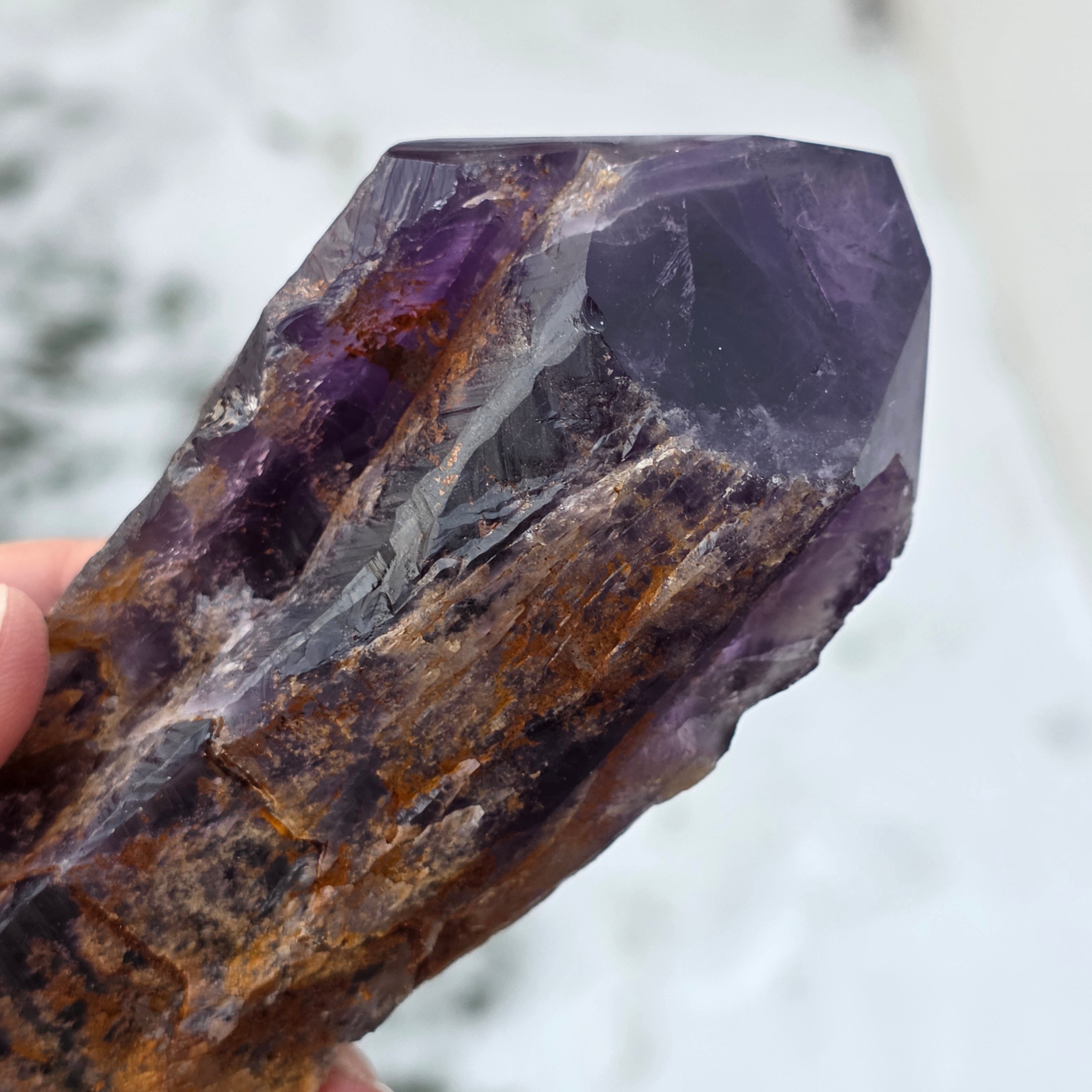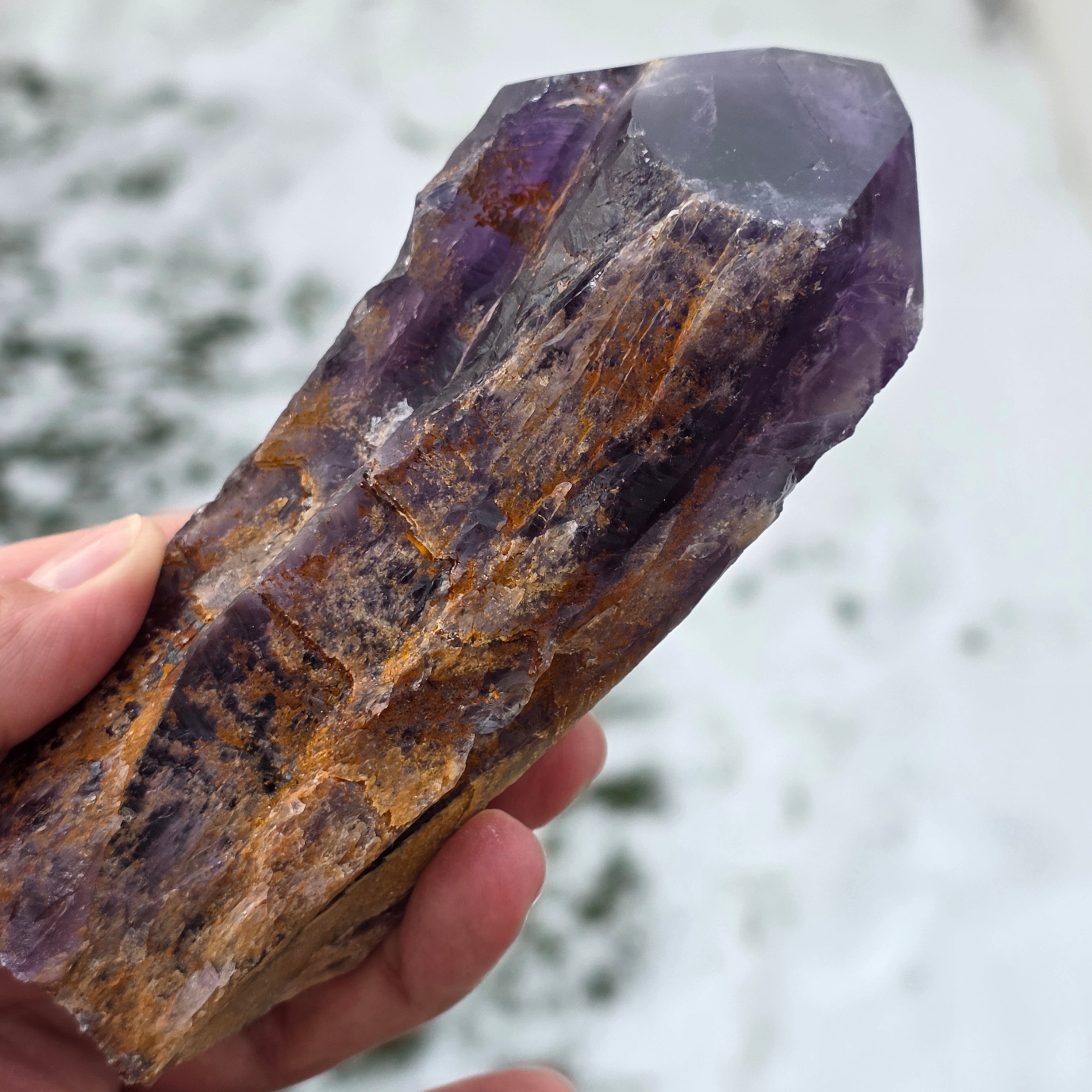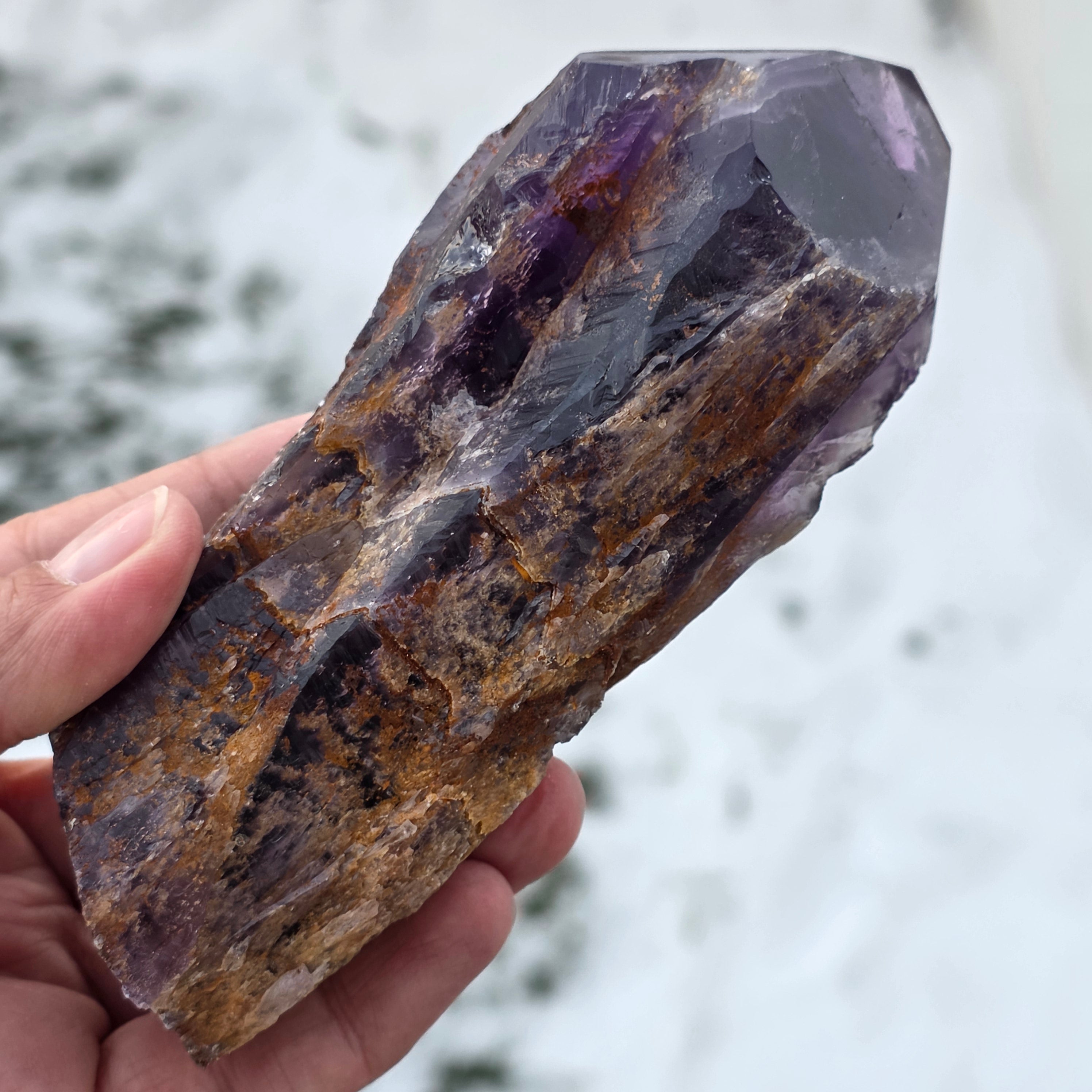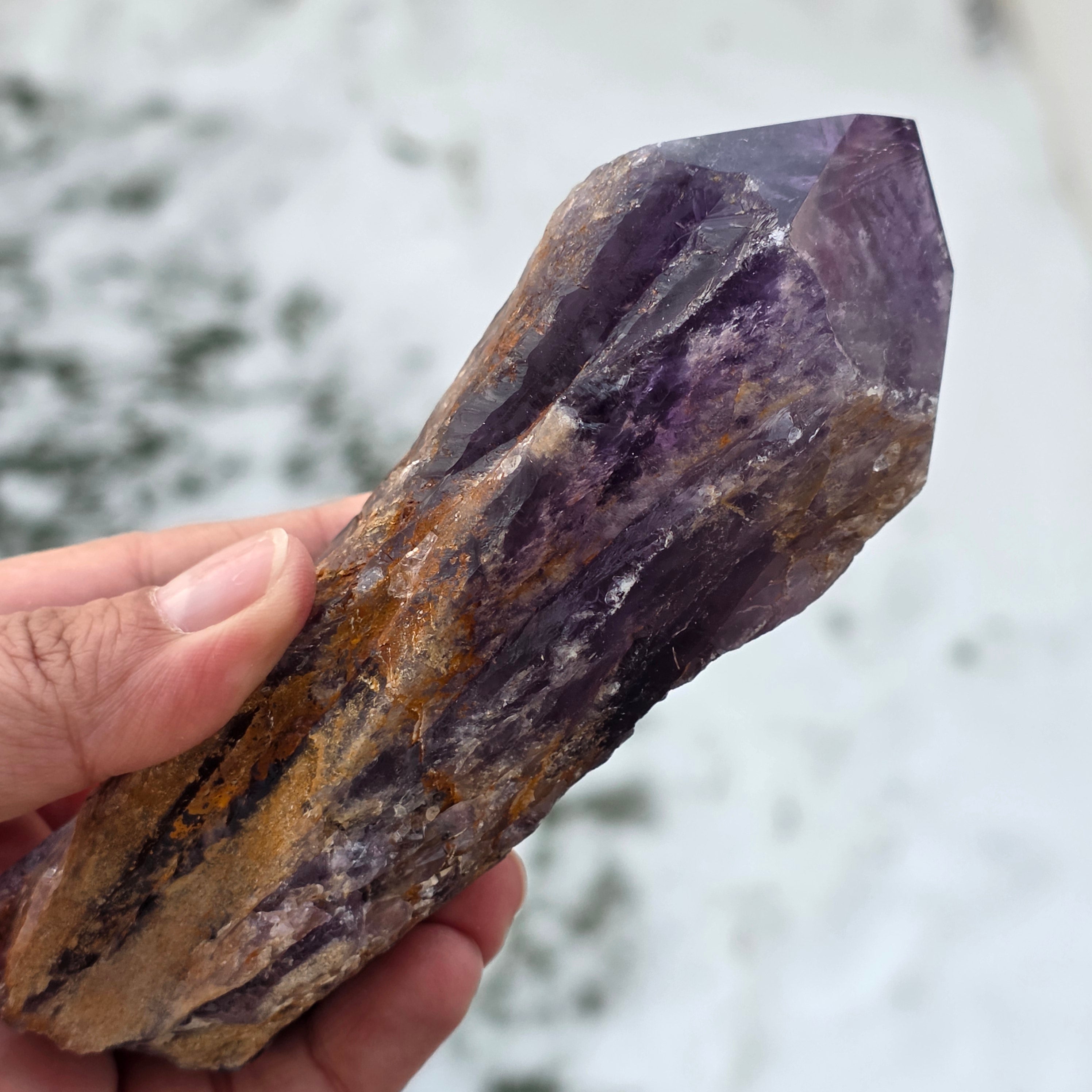 L'améthyste de Bahia, parfois appelée "Coin du Dragon", est extraite de la région de Bahia, au Brésil. Chaque cristal est un spécimen naturel unique, avec une forme cristalline bien définie et présente des cloisons ou des protubérances sur toute sa longueur. Ces cristaux ne sont pas détachés d'un groupe plus grand, mais se forment individuellement, un par un.