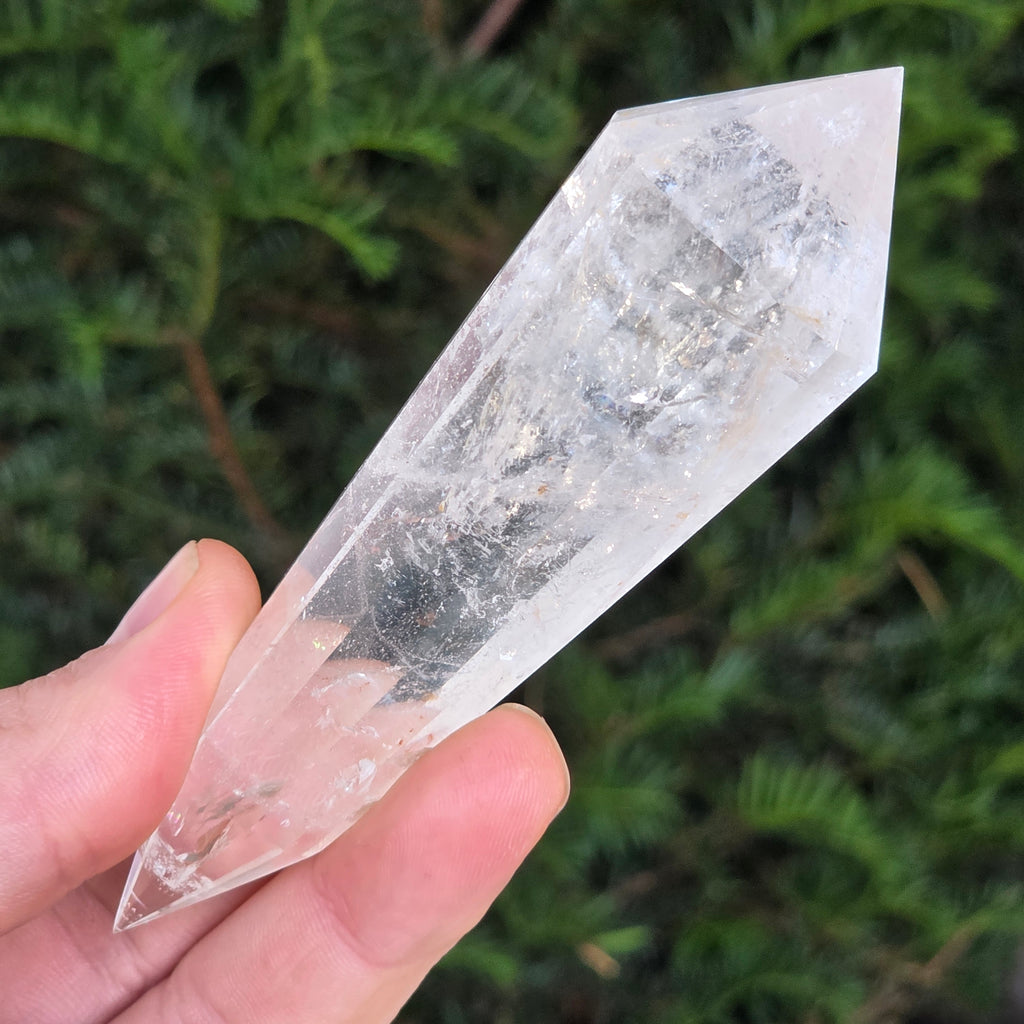 Un Baguette Vogel Il s’agit d’une baguette en cristal de quartz Spécialement poli selon une certaine norme géométrique, inventée par Dr. Marcel Vogel, chercheur chez IBM dans les années 70.