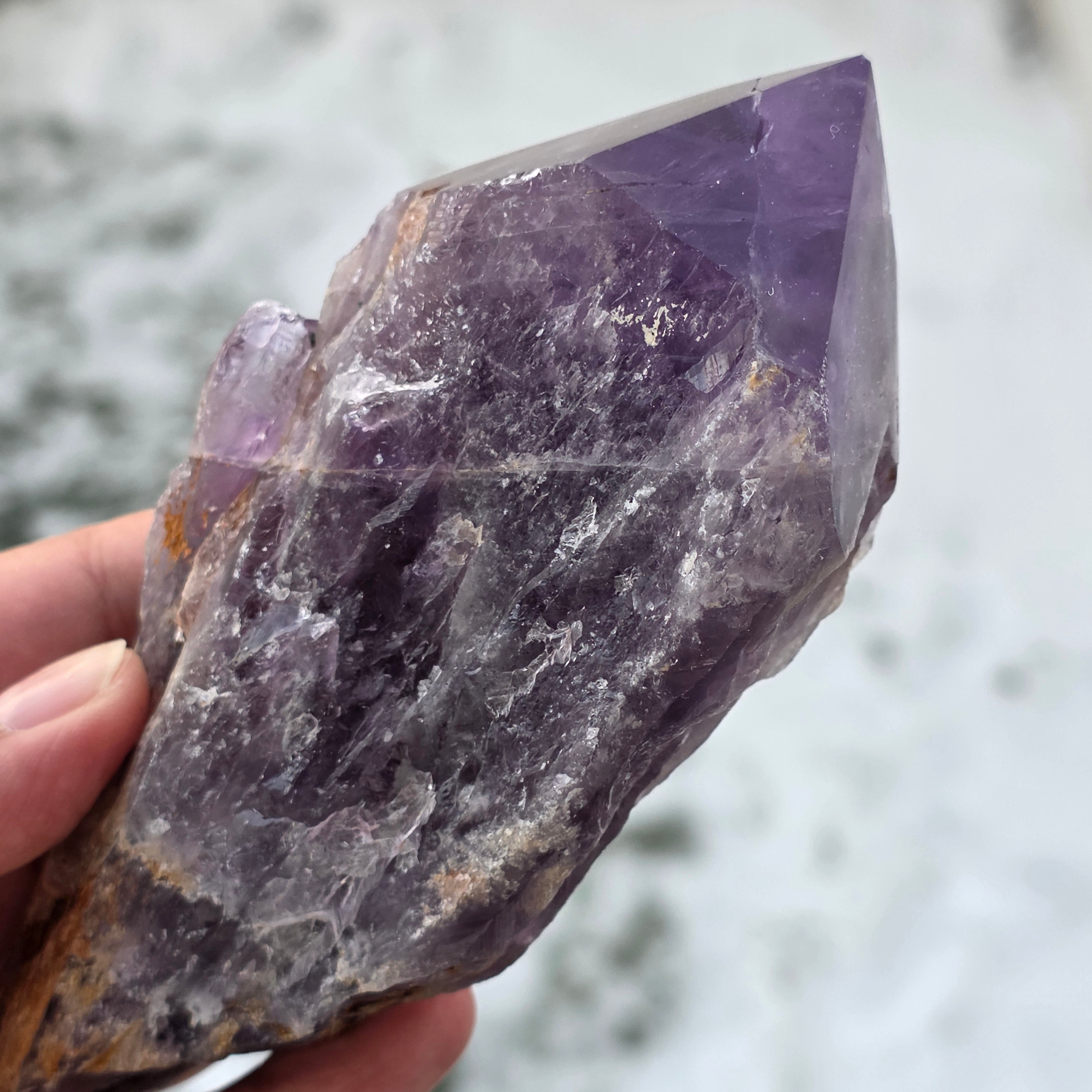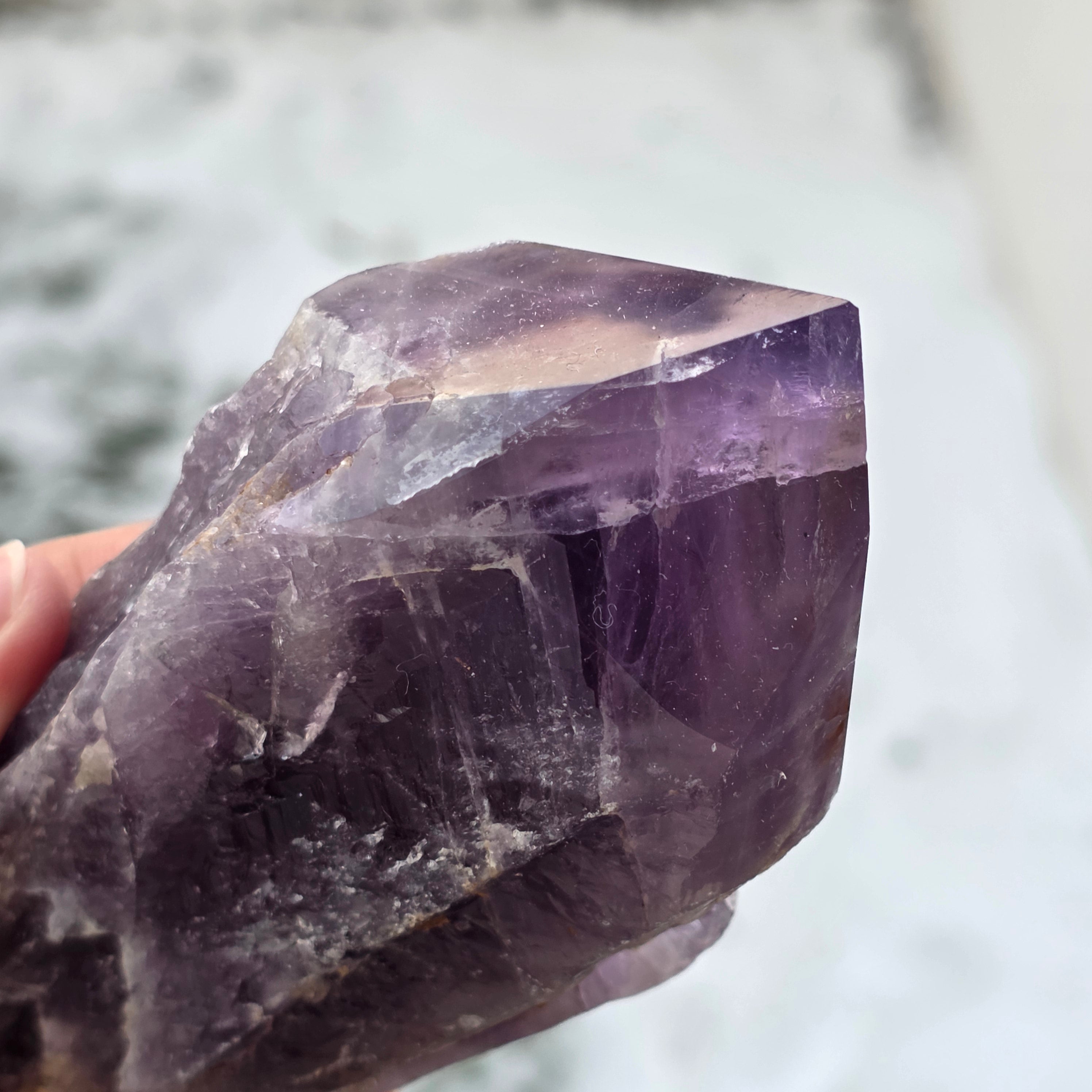 L'améthyste de Bahia, parfois appelée aussi « Coin du Dragon », est extraite de la région de Bahia, au Brésil. Chaque cristal est un spécimen naturel unique, avec une forme cristalline bien définie et présente des arêtes ou des protubérances sur toute sa longueur. Ces cristaux ne sont pas détachés d'un groupe plus grand, mais se forment individuellement, un par un.