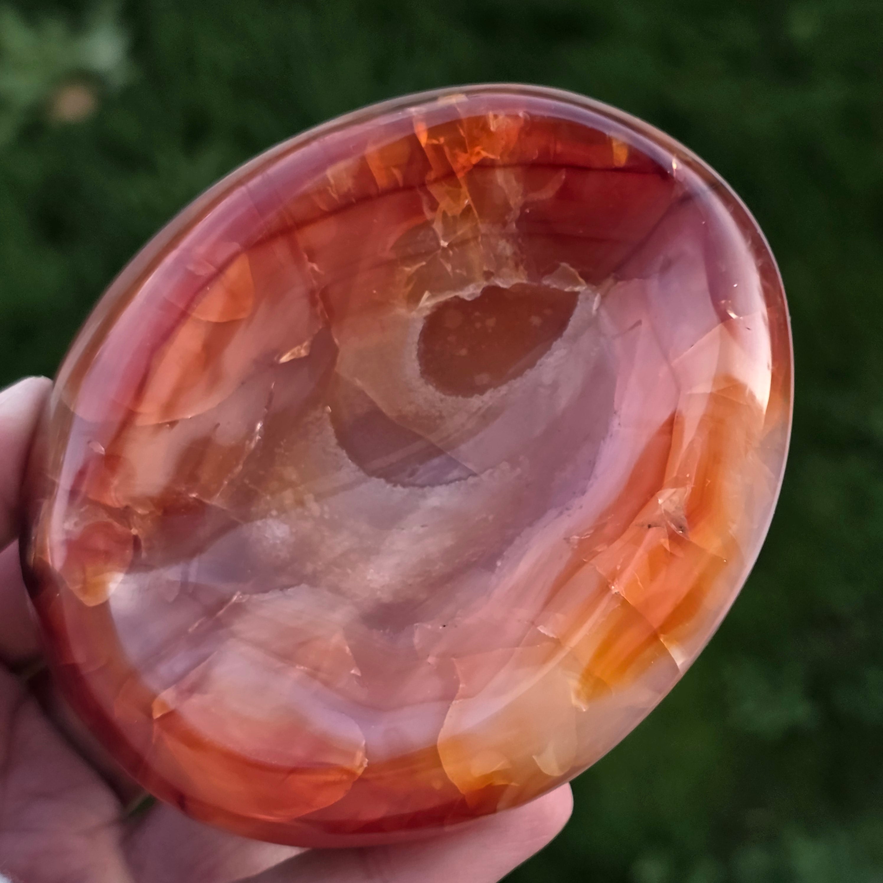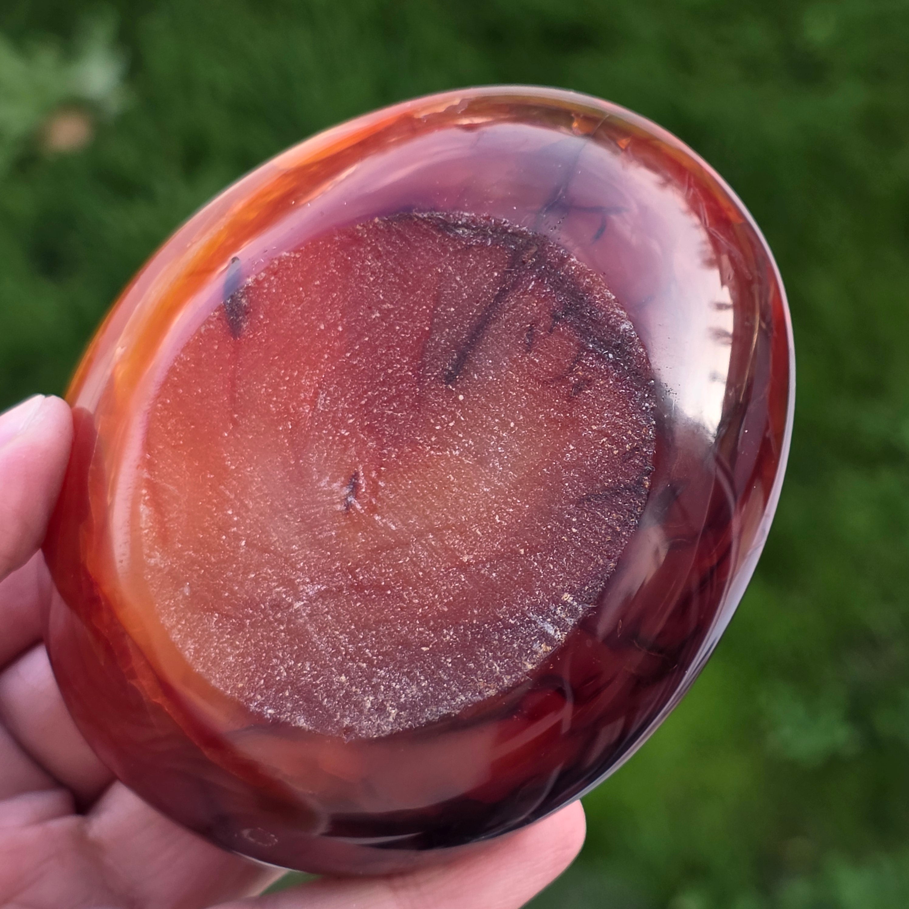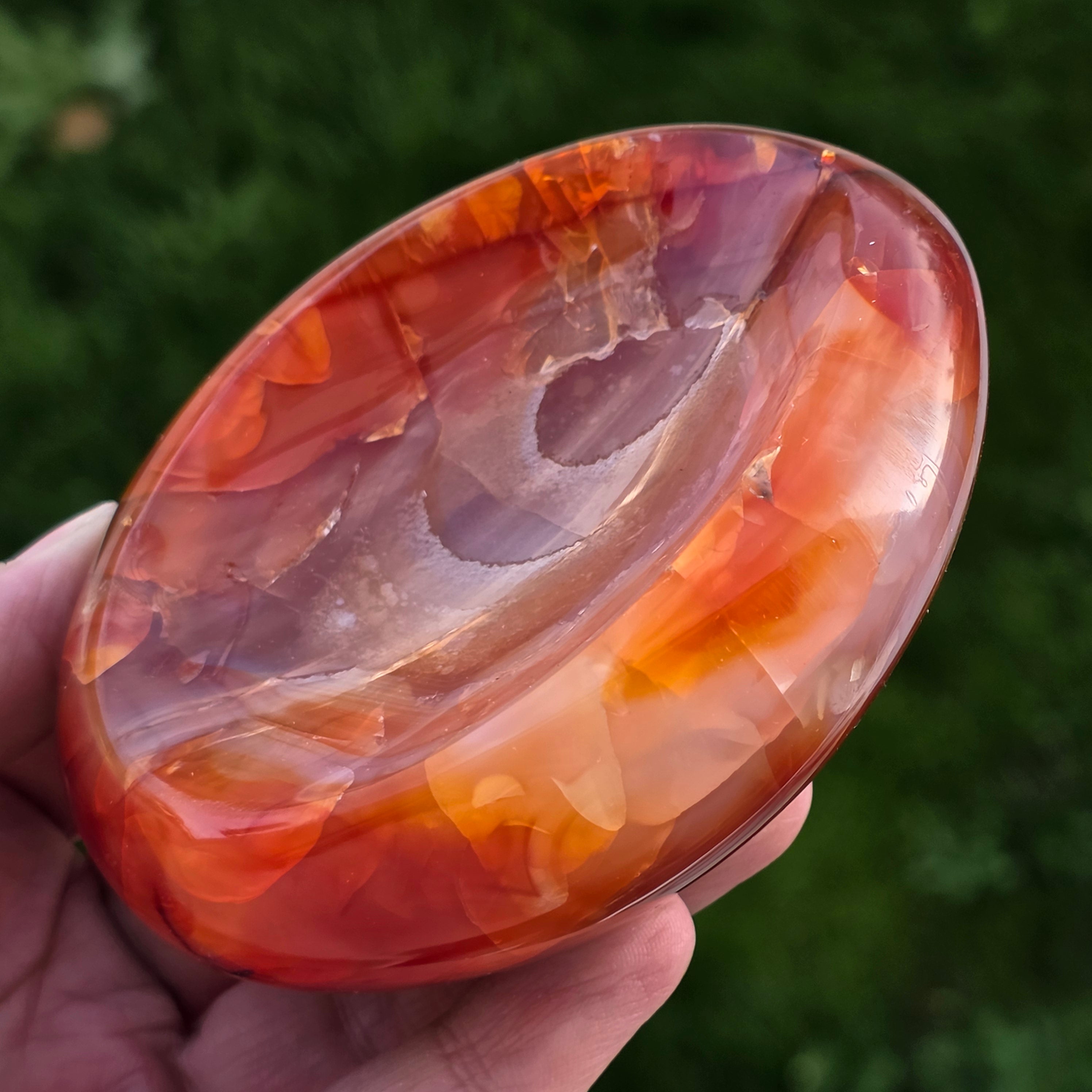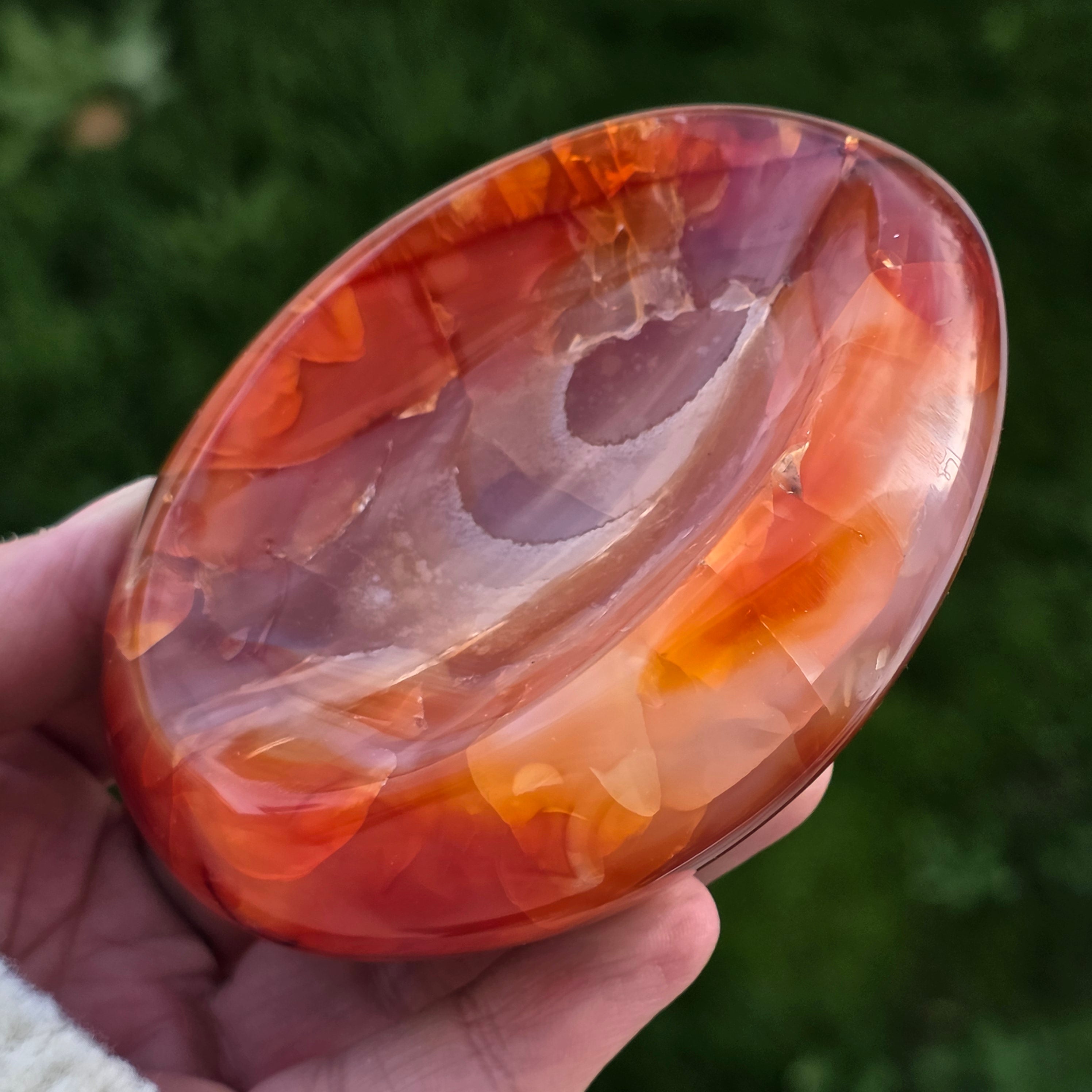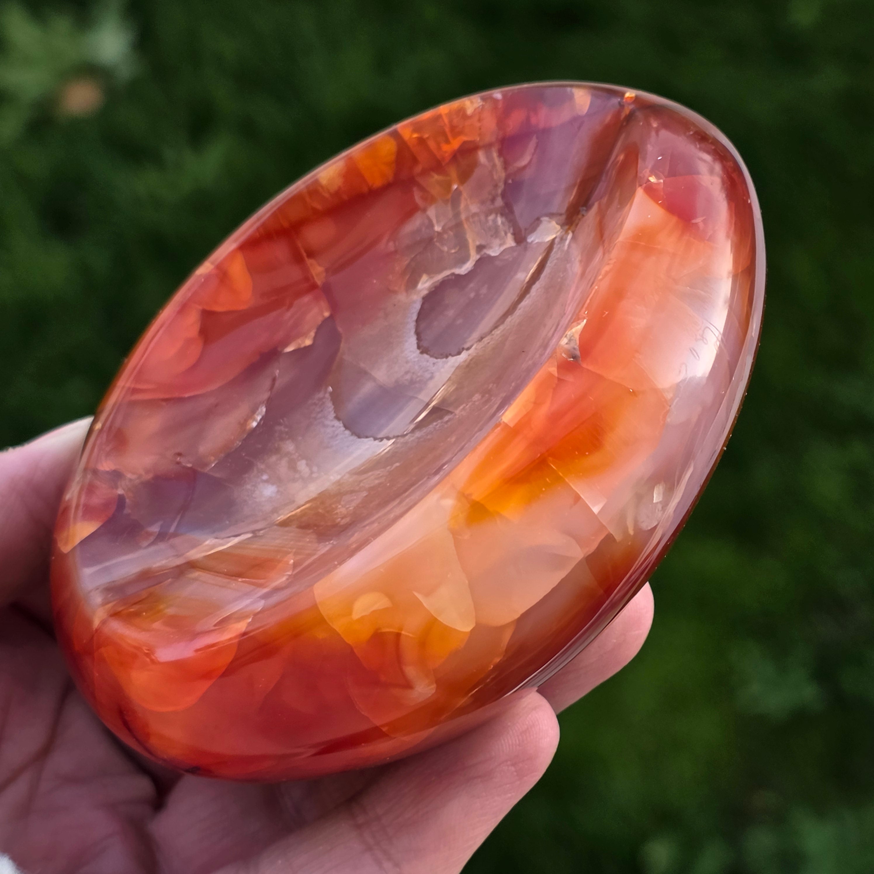 Bol en cornaline naturelle unique, provenant de Madagascar, sculpté avec soin pour mettre en valeur la beauté naturelle de la pierre.