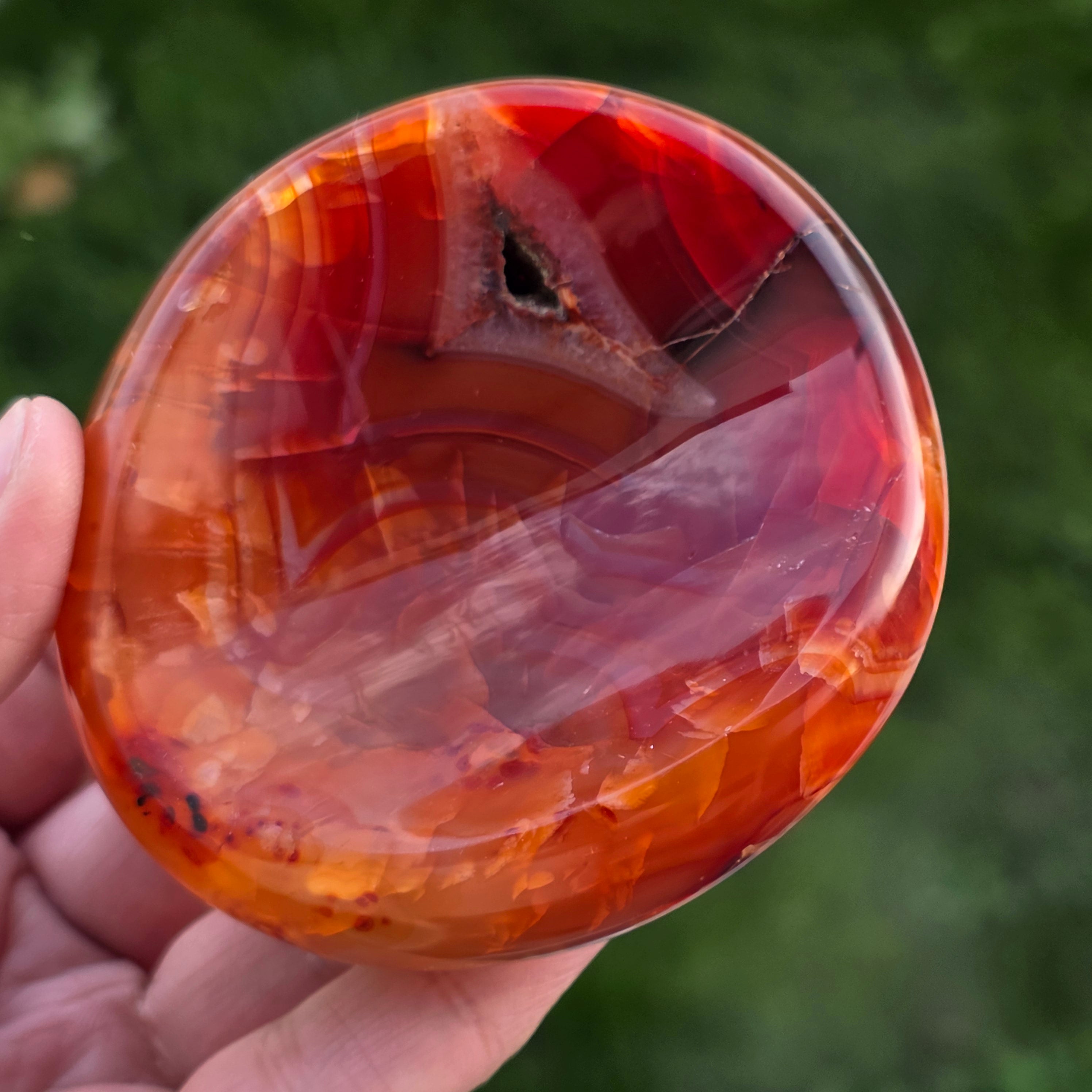 Bol en cornaline naturelle unique,provenant de Madagascar, sculpté avec soin pour mettre en valeur la beauté naturelle de la pierre.