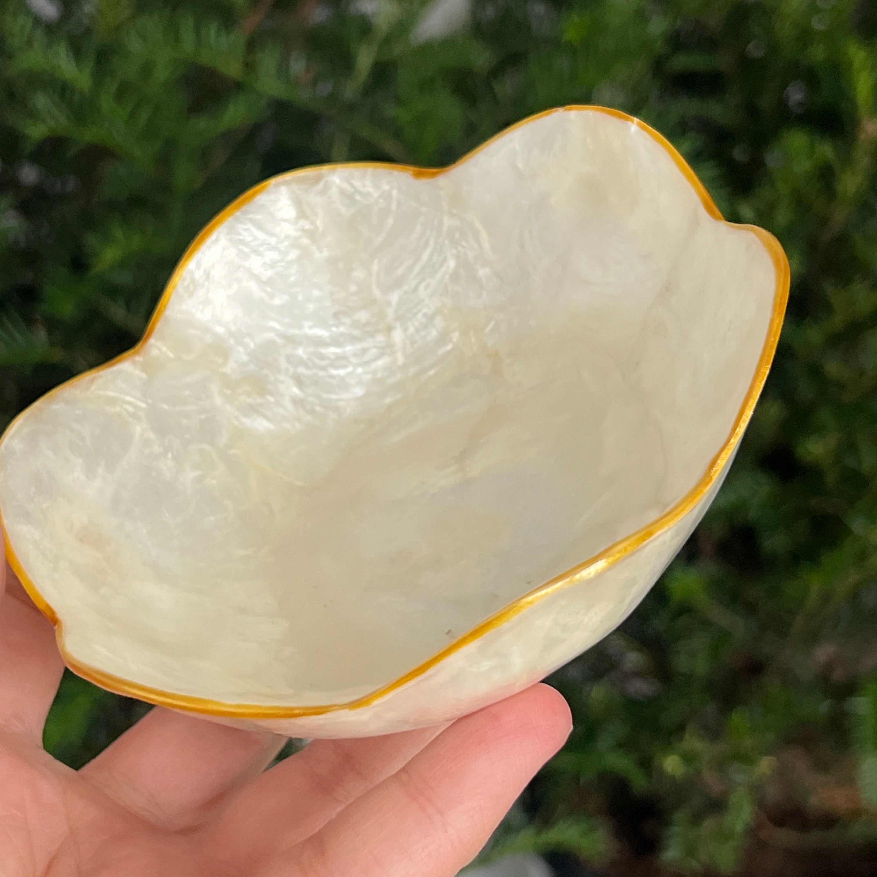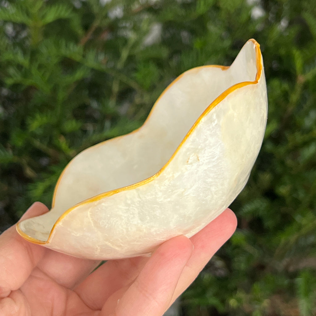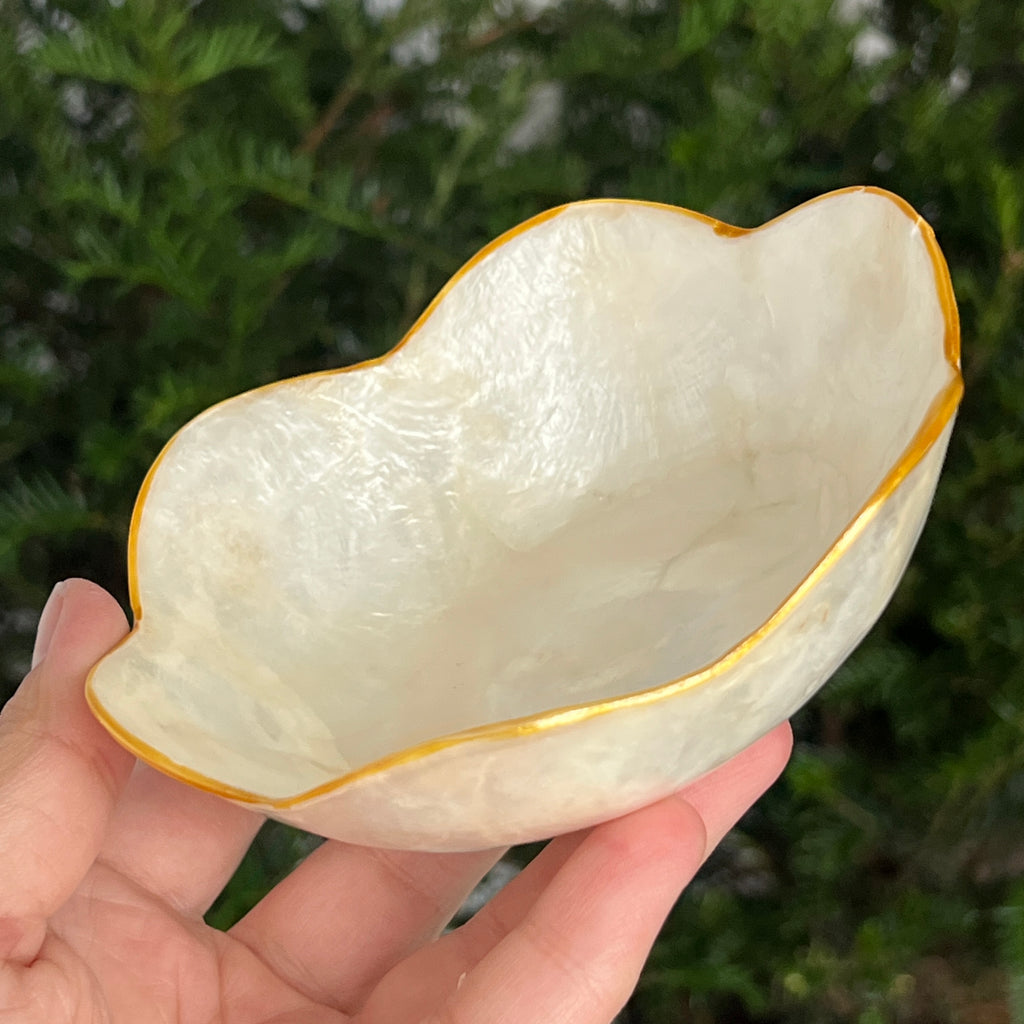 Bolul din scoică abalone este o piesă decorativă naturală, care îmbină căldura pământului cu strălucirea mării. Reflexele sidefate amintesc de adâncurile oceanului și aduc o notă elegantă oricărui spațiu. Ideal pentru colecționari, pentru decorarea altarului personal sau ca suport pentru cristale și bijuterii.