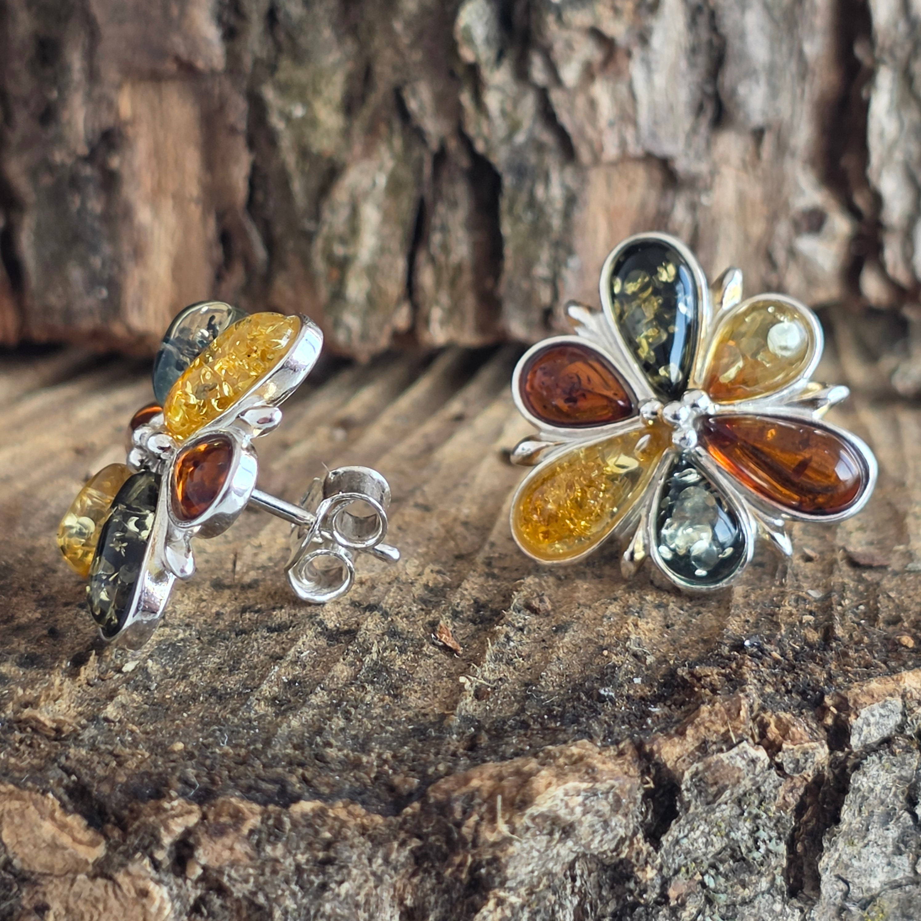 Boucles d'oreilles en argent avec ambre Amber15