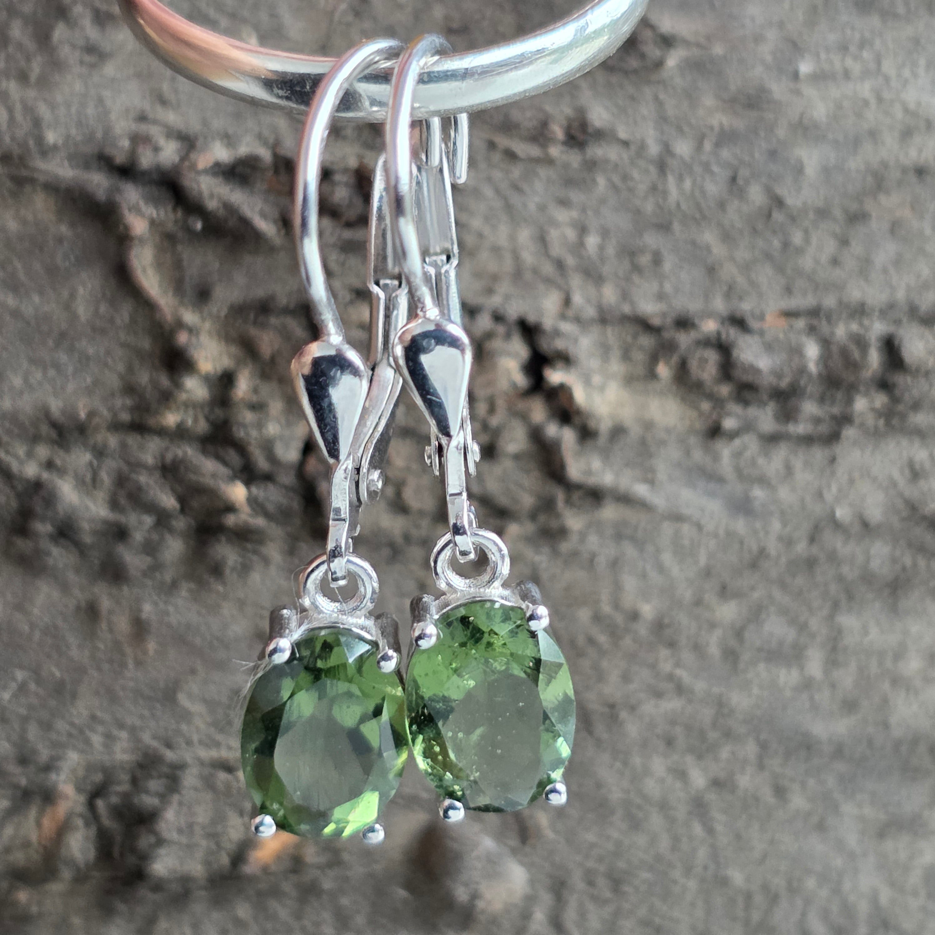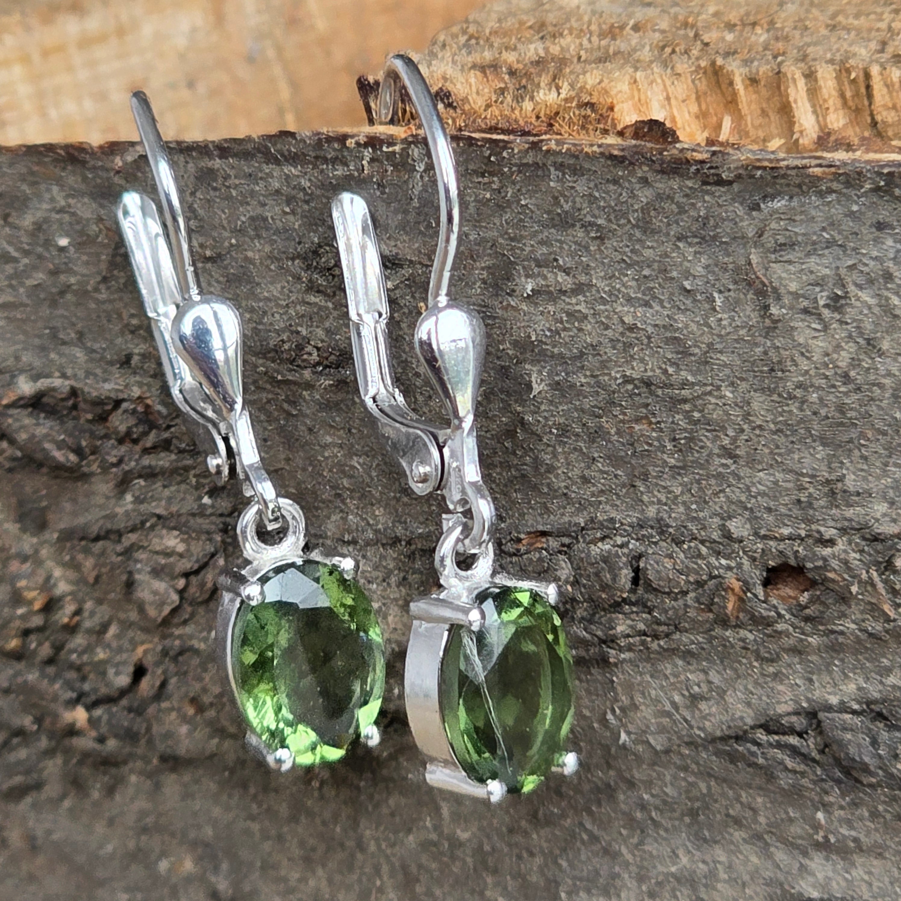 Matériaux des boucles d'oreilles : moldavite, argent