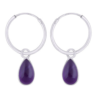 Ces boucles d'oreilles en argent 925 apportent une note de raffinement moderne, grâce à la combinaison de la simplicité des cercles fins et de l'intensité hypnotique de la pierre d' améthyste naturelle.