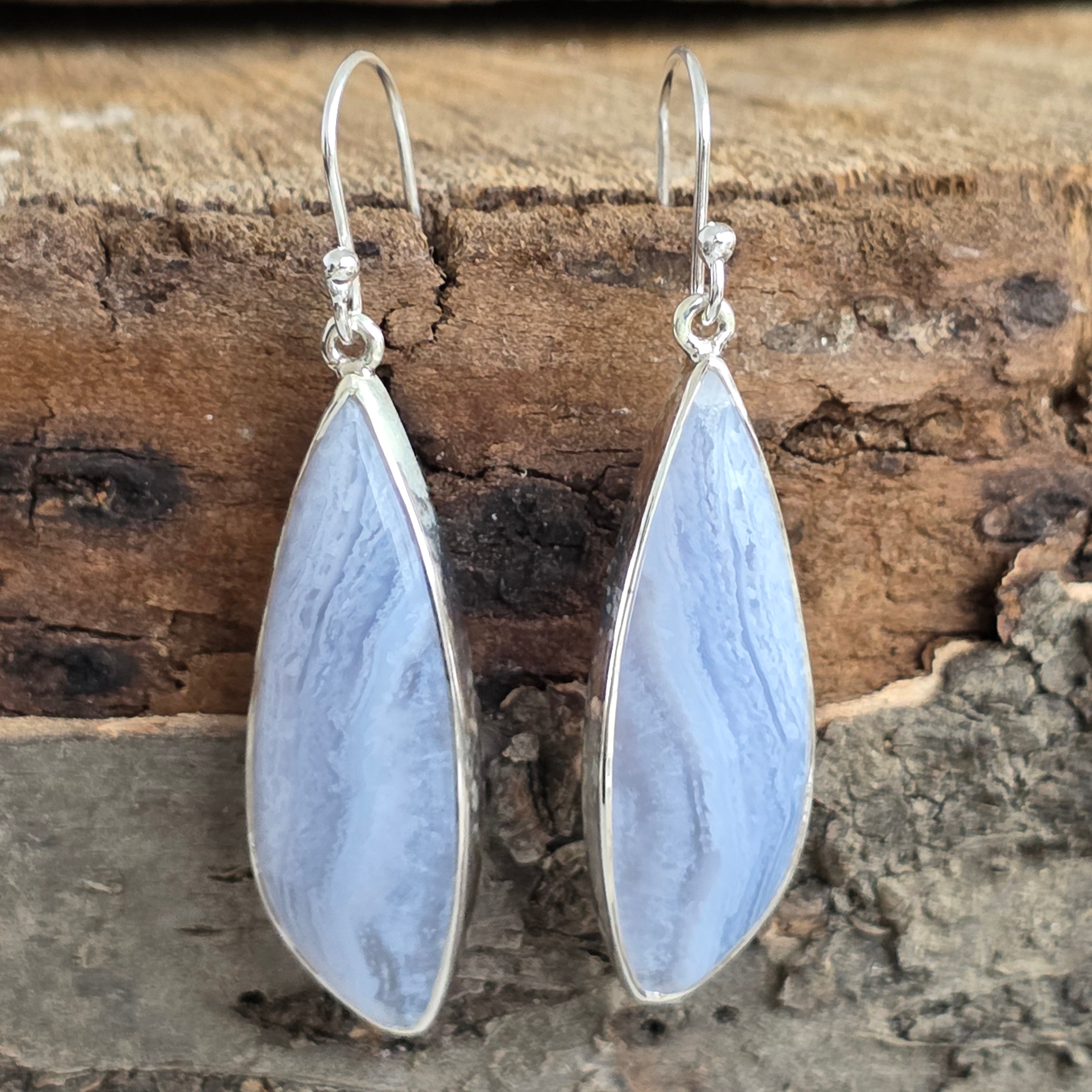 Description - Boucles d'oreilles calcédoine argentée/dentelle bleue | Modèle 1