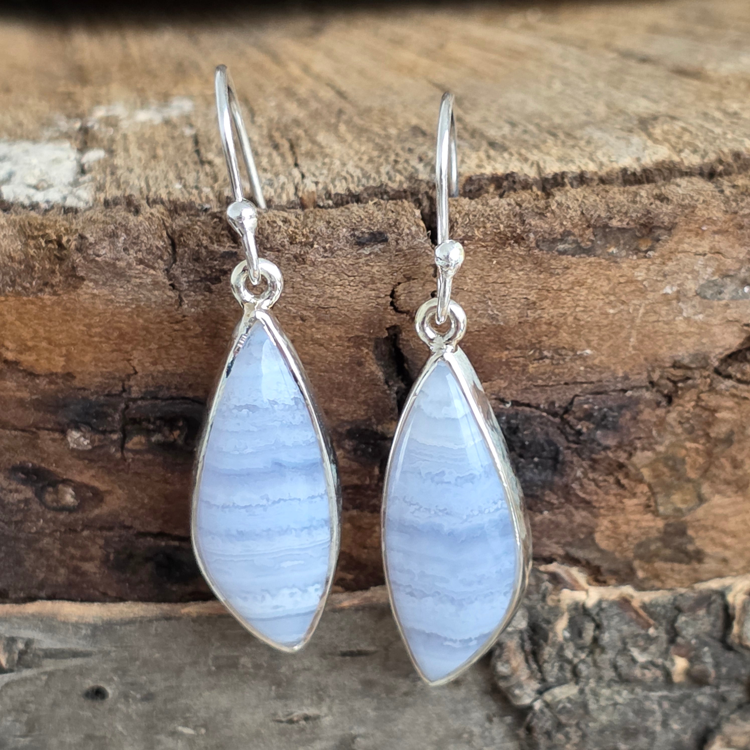Boucles d'oreilles calcédoine argentée/dentelle bleue | Modèle 2
