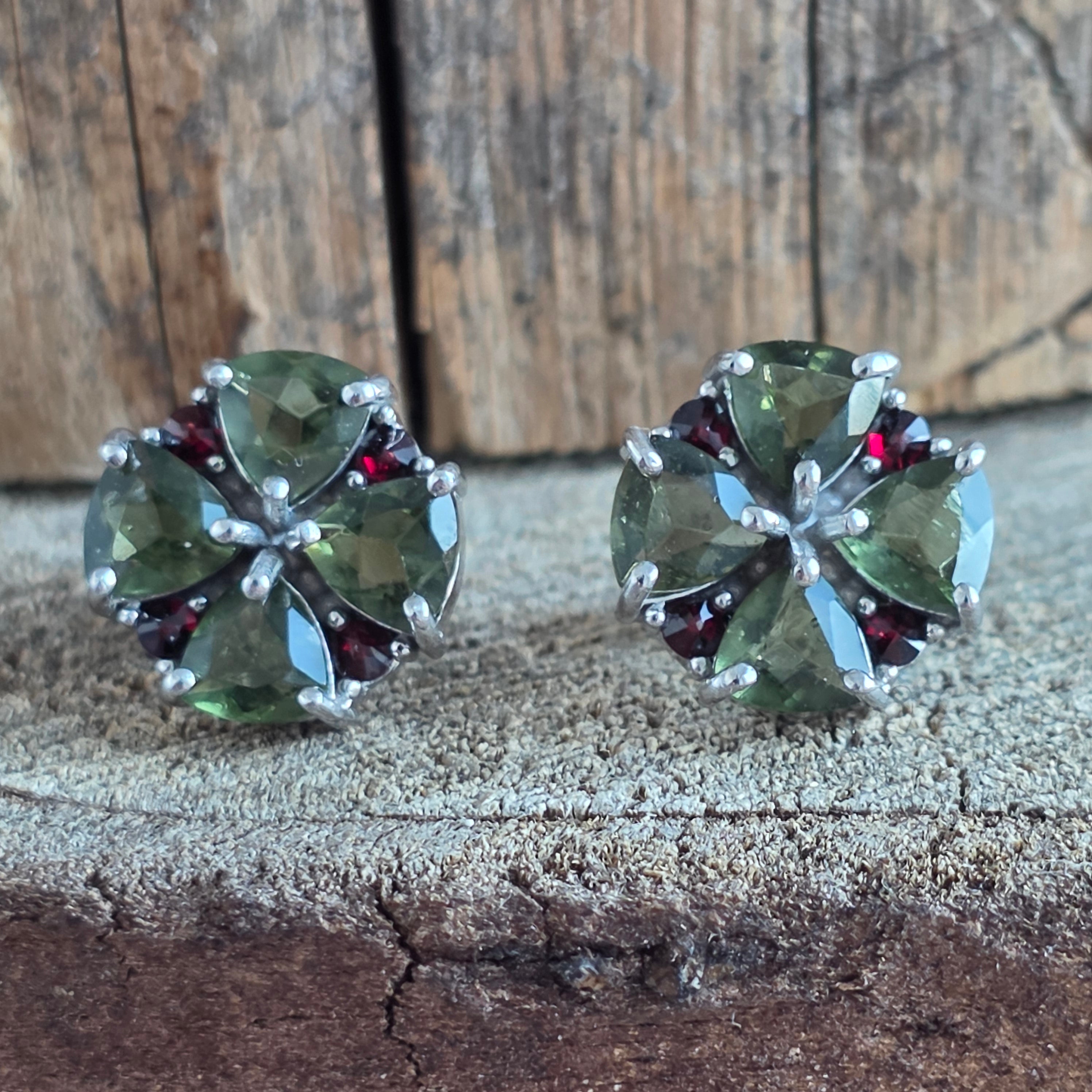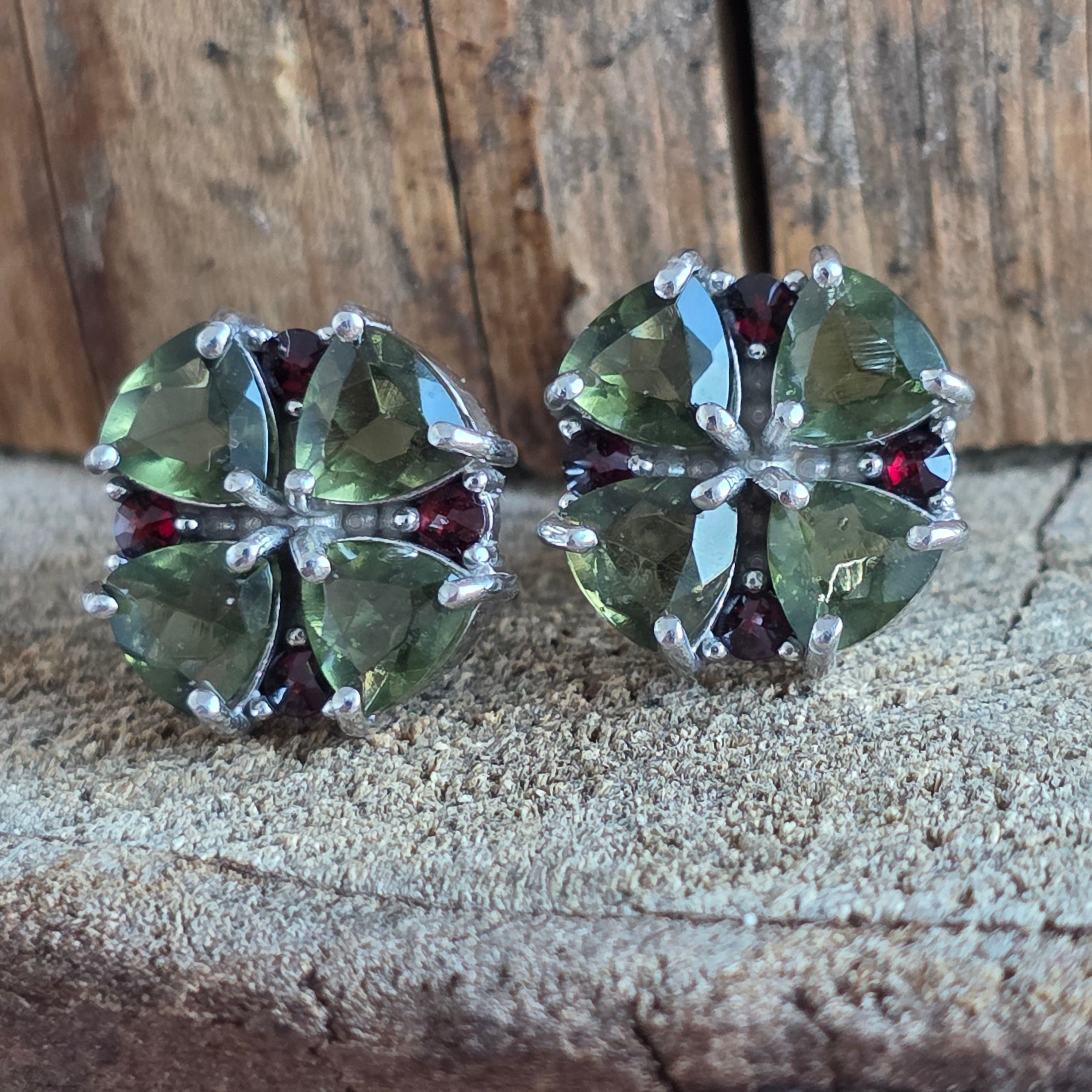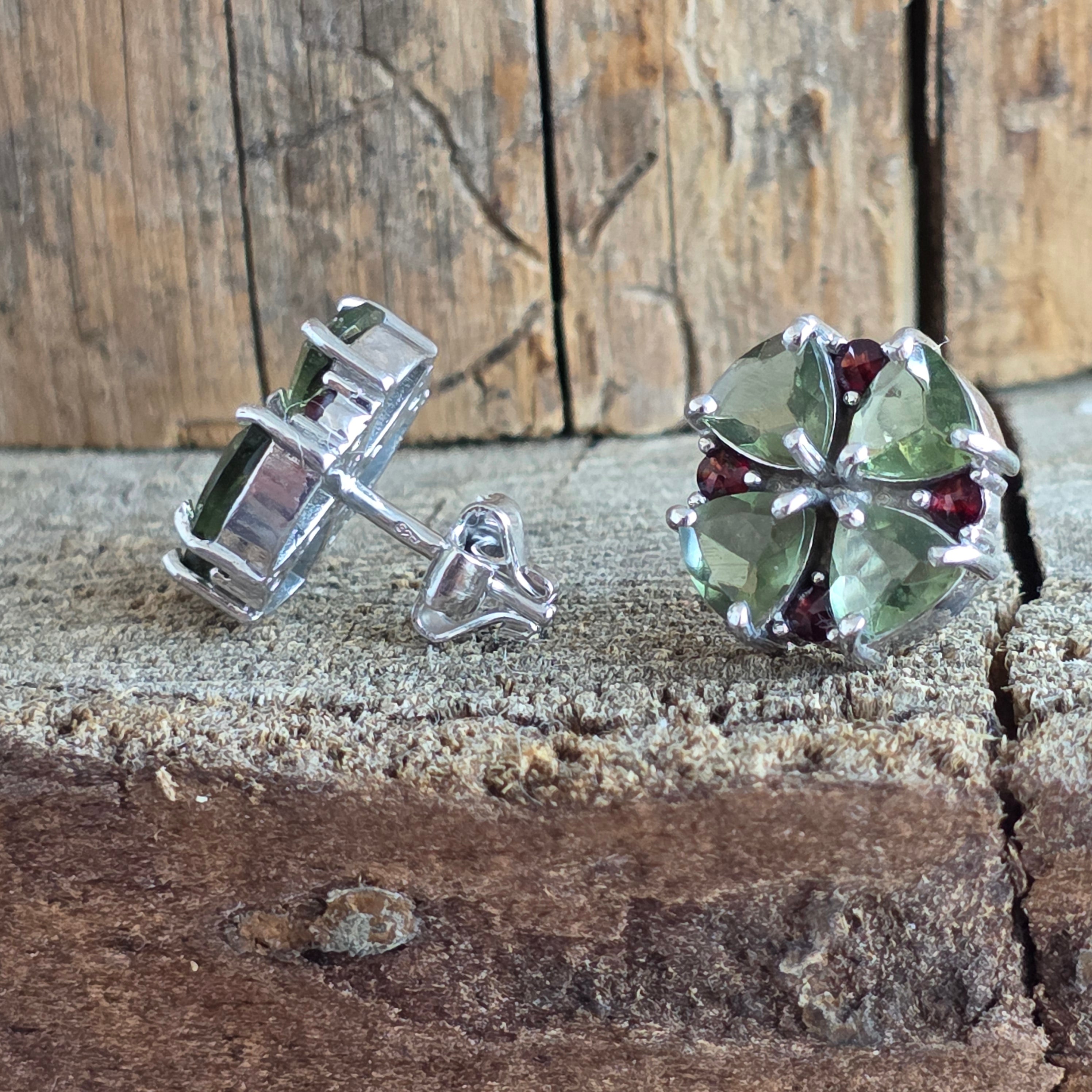 Boucles d'oreilles moldavite et grenat en argent | Lucky