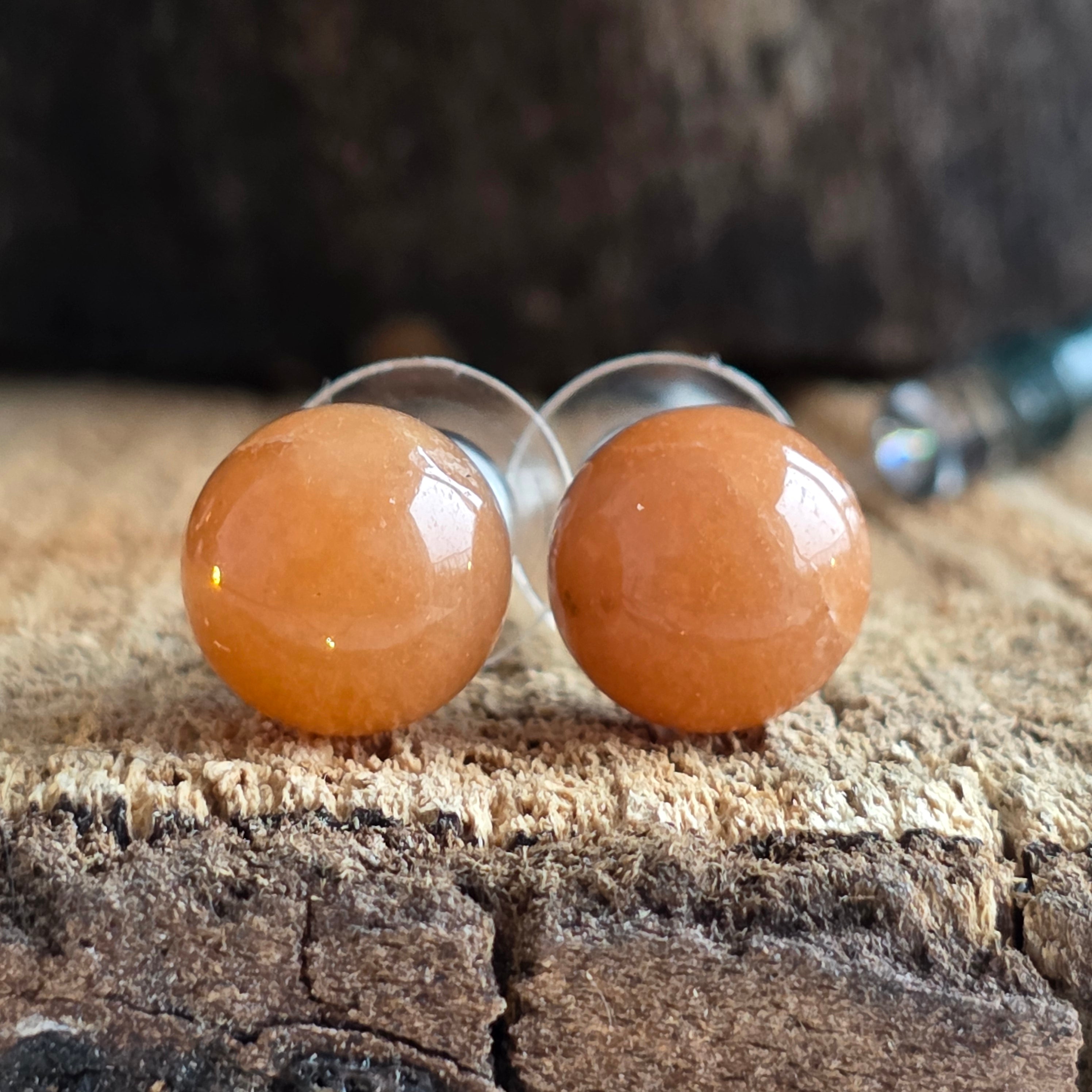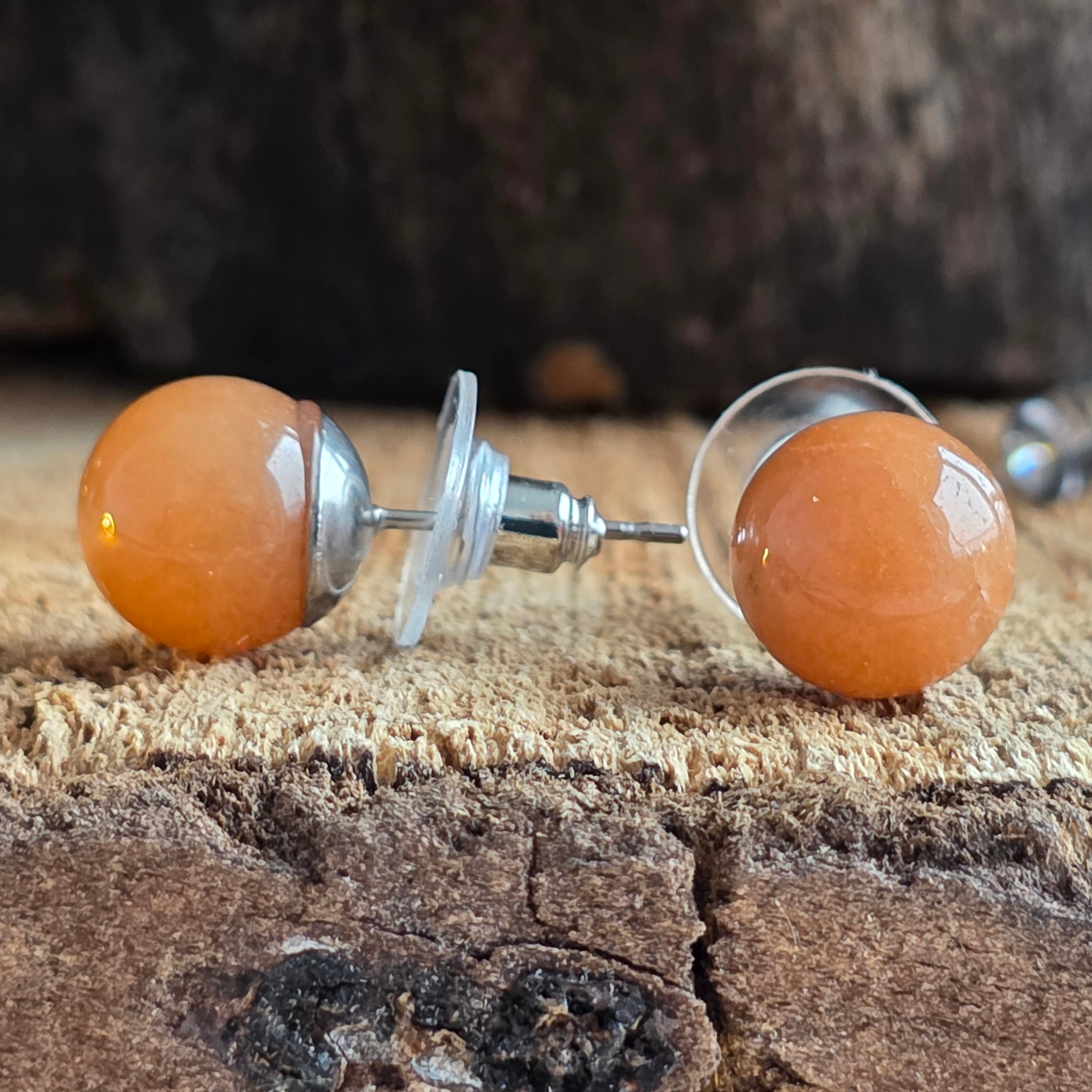 Description - Boucles d'oreilles puces sphère aventurine orange