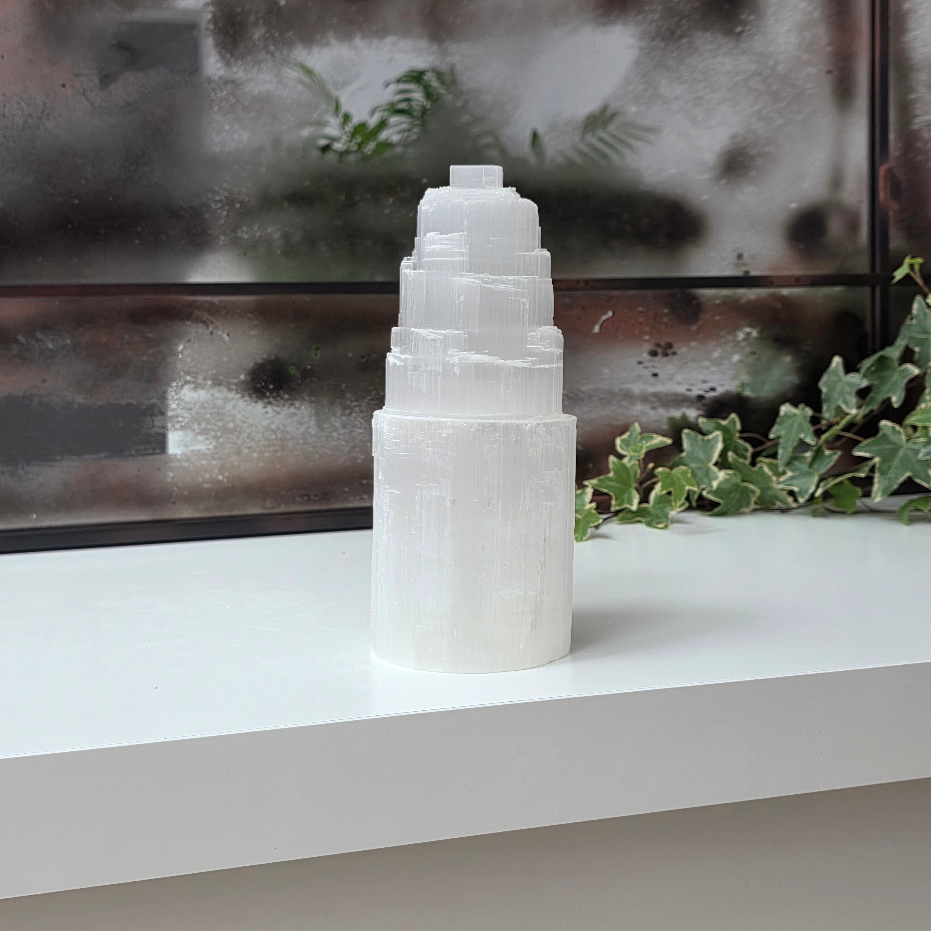Ce bougeoir tour, fabriqué à partir de sélénite naturelle, apporte une touche de magie et de lumière à n'importe quel espace. La sélénite est considérée comme la pierre de pureté et de paix intérieure.