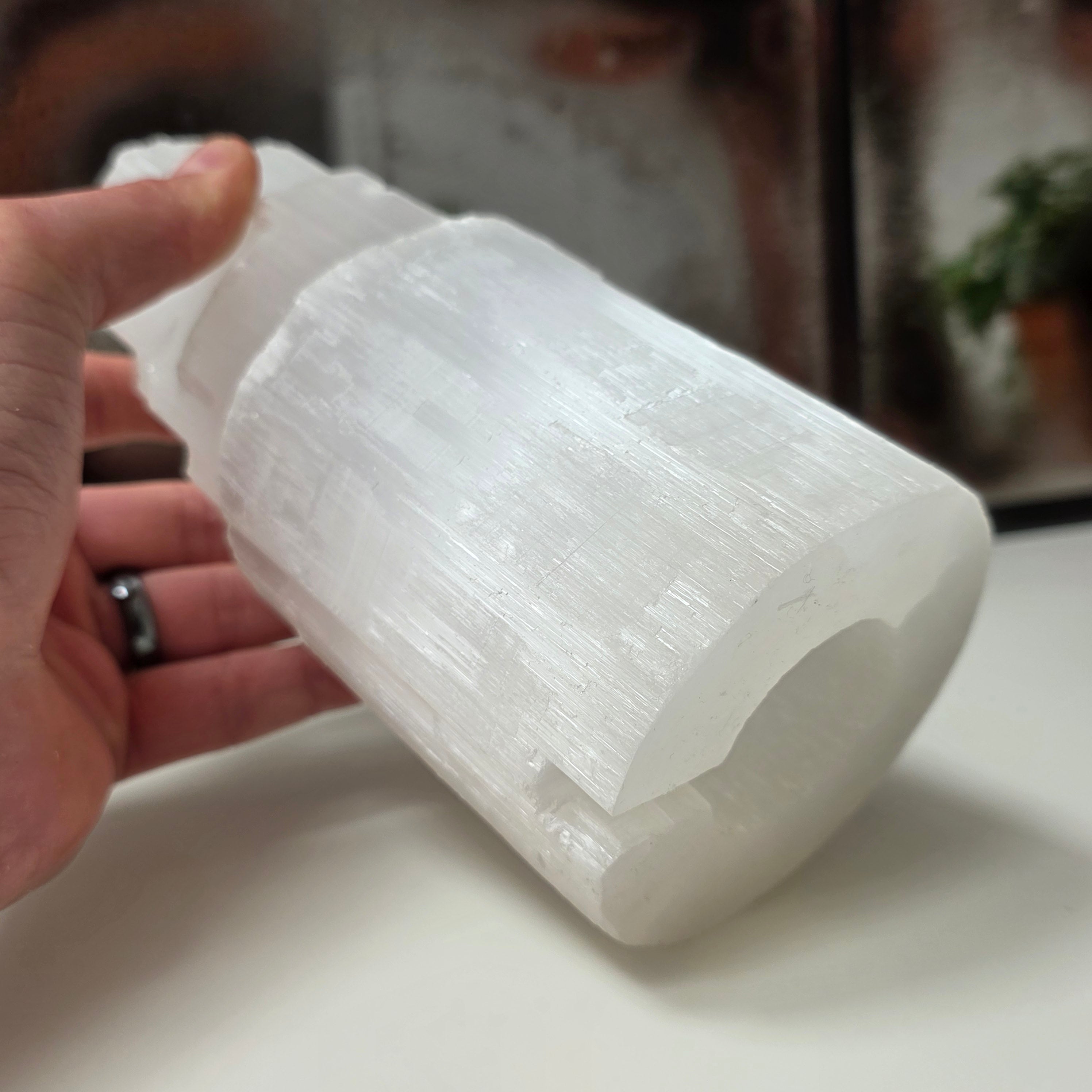 Choisissez le bougeoir en sélénite pour apporter une énergie purifiante et une atmosphère pleine d'harmonie dans votre espace 🌙✨.