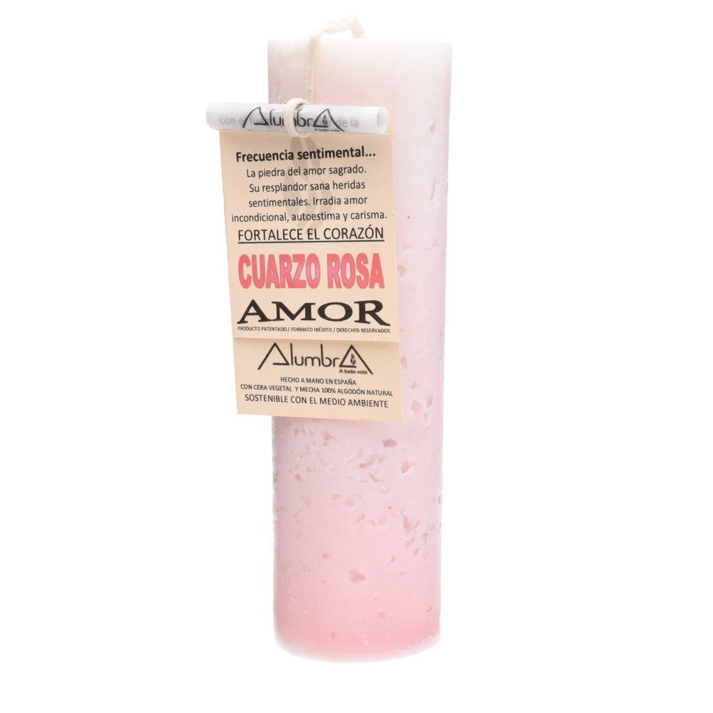 Description - Bougie avec inserts en quartz rose | je t'aime
