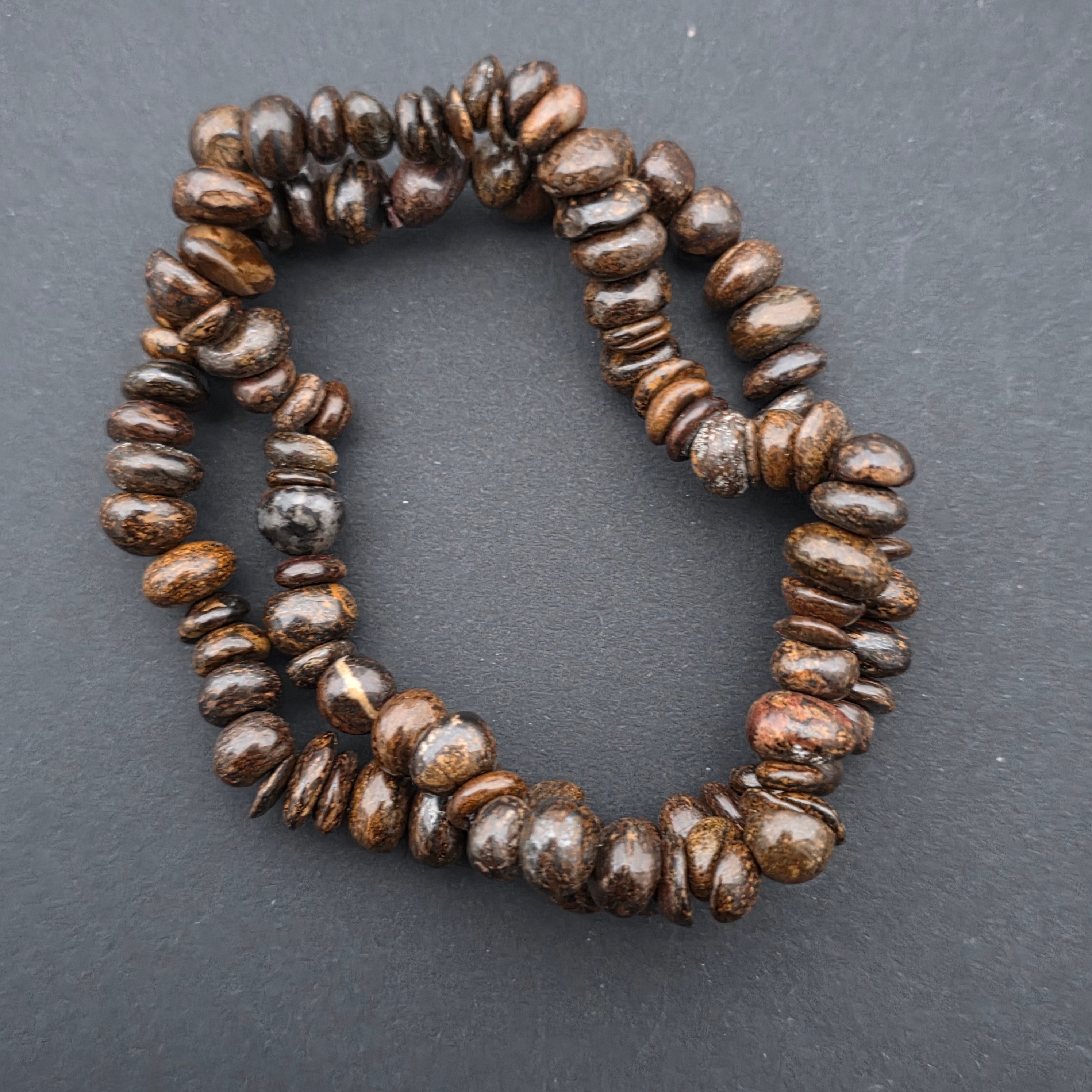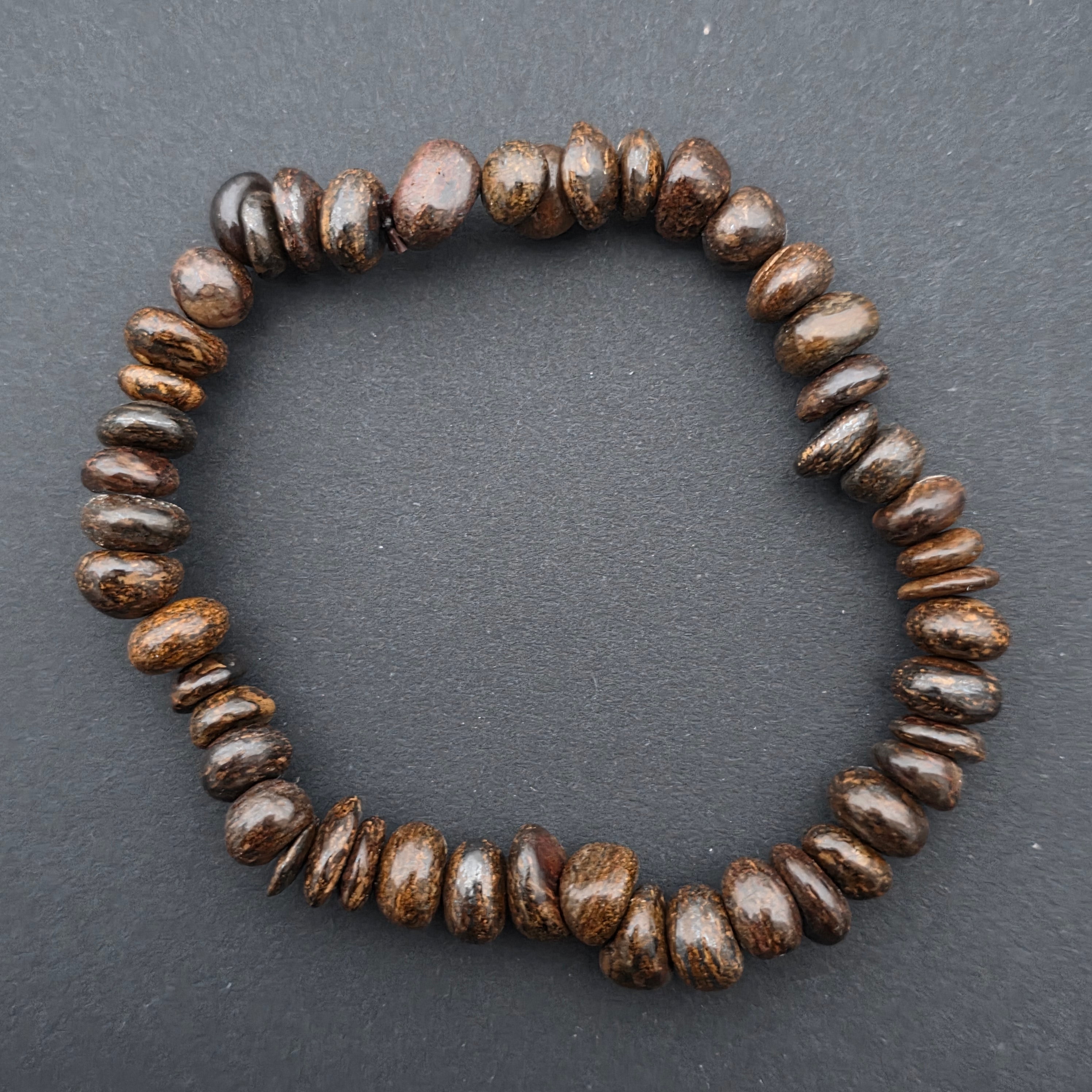 Culoare: maro închis cu reflexe metalice aurii-bronz, fiecare brățară unică