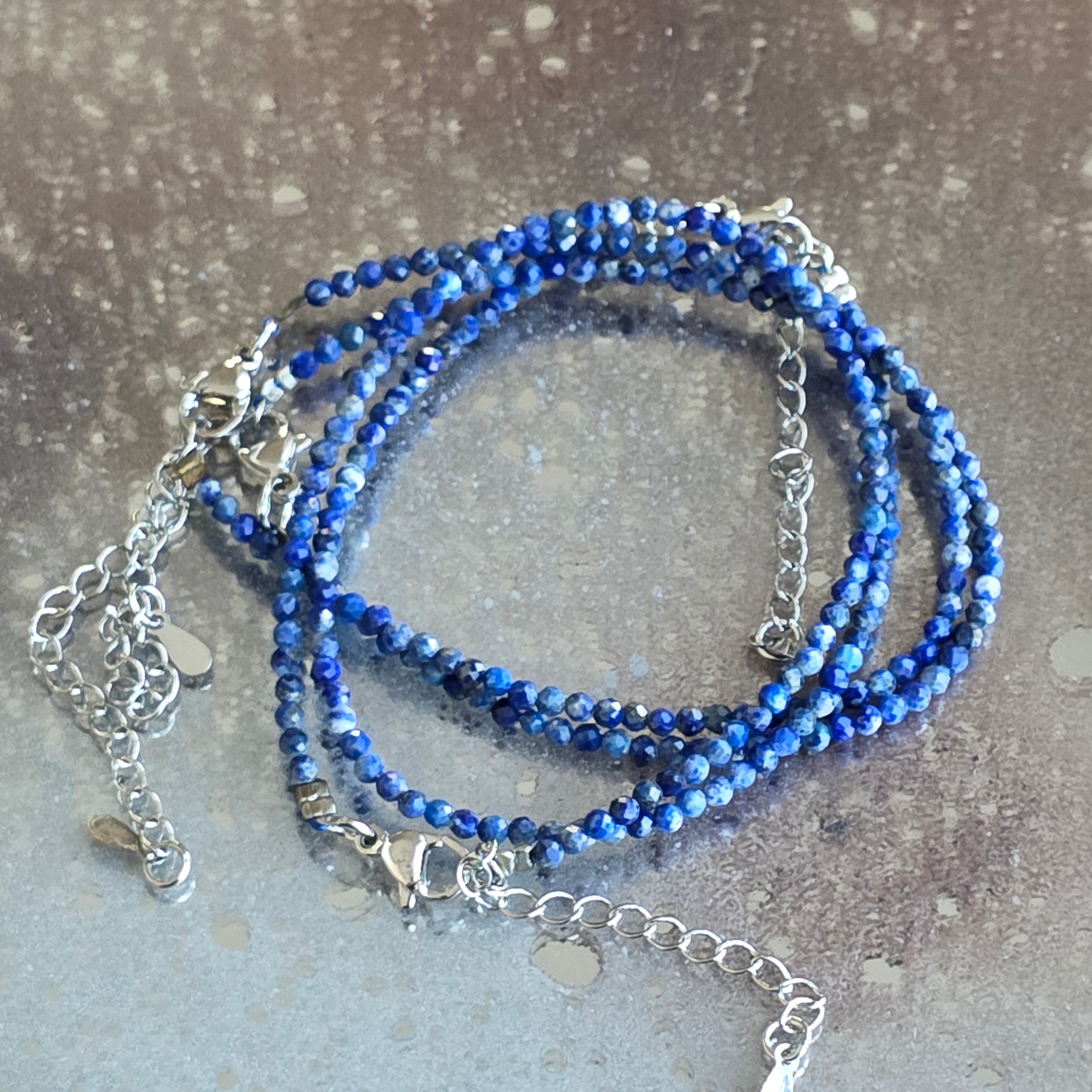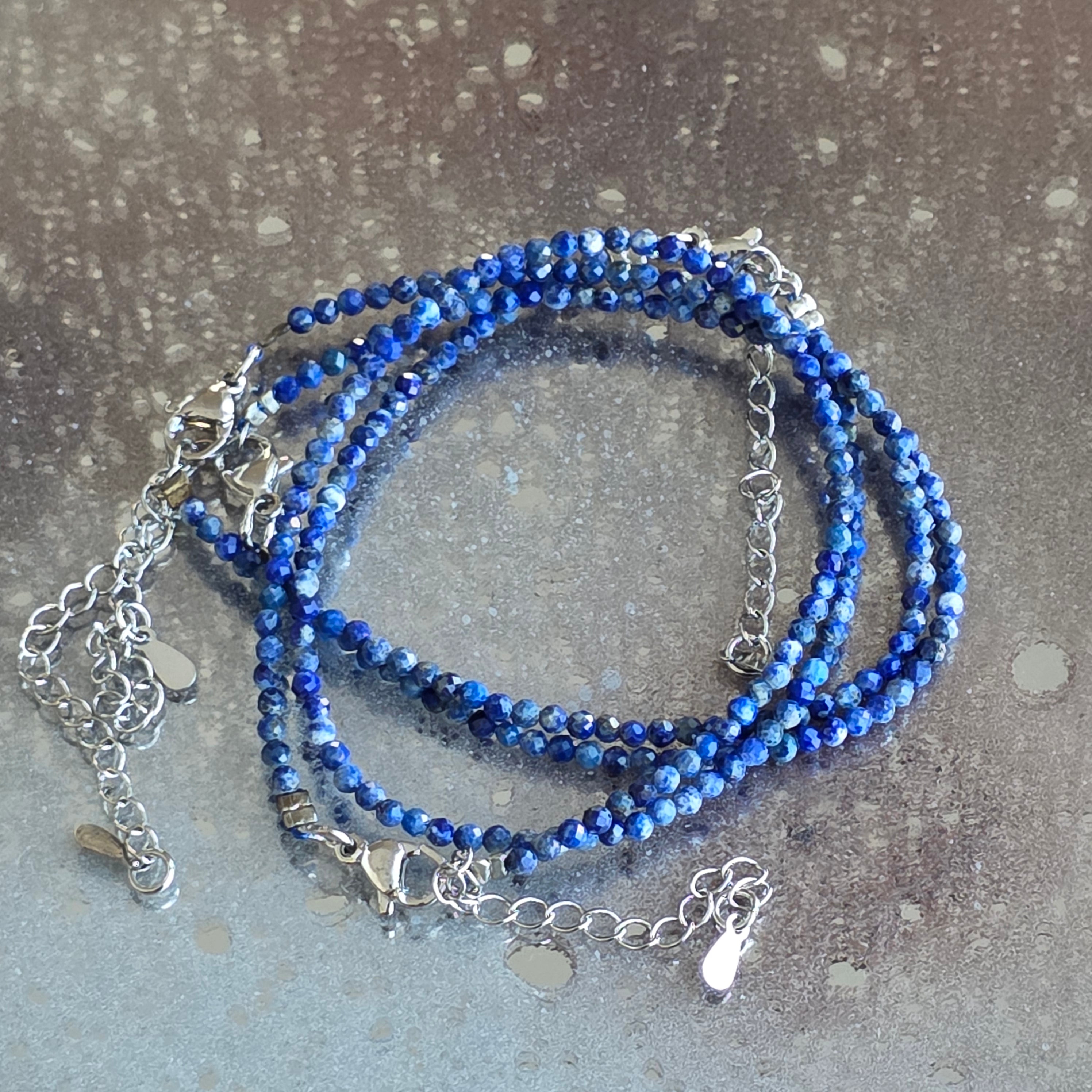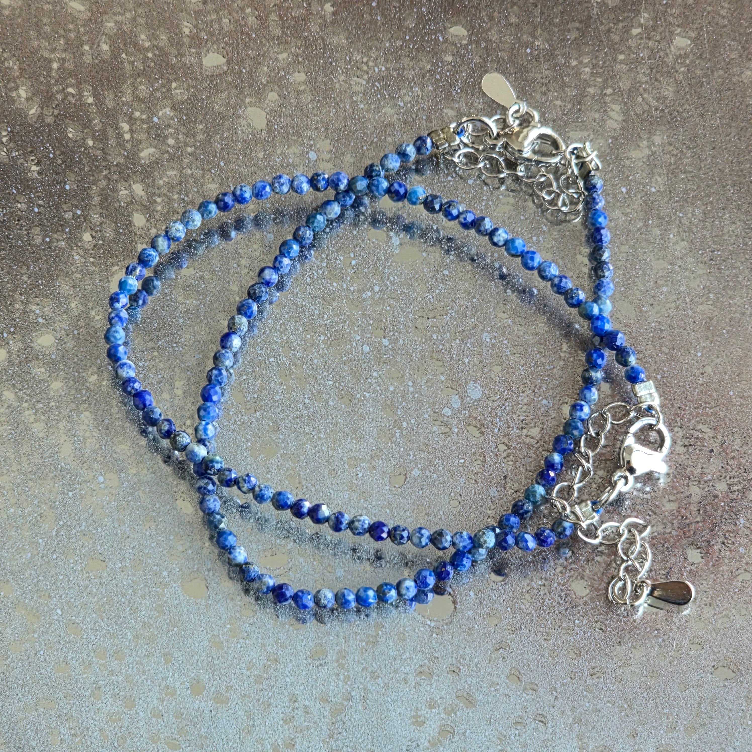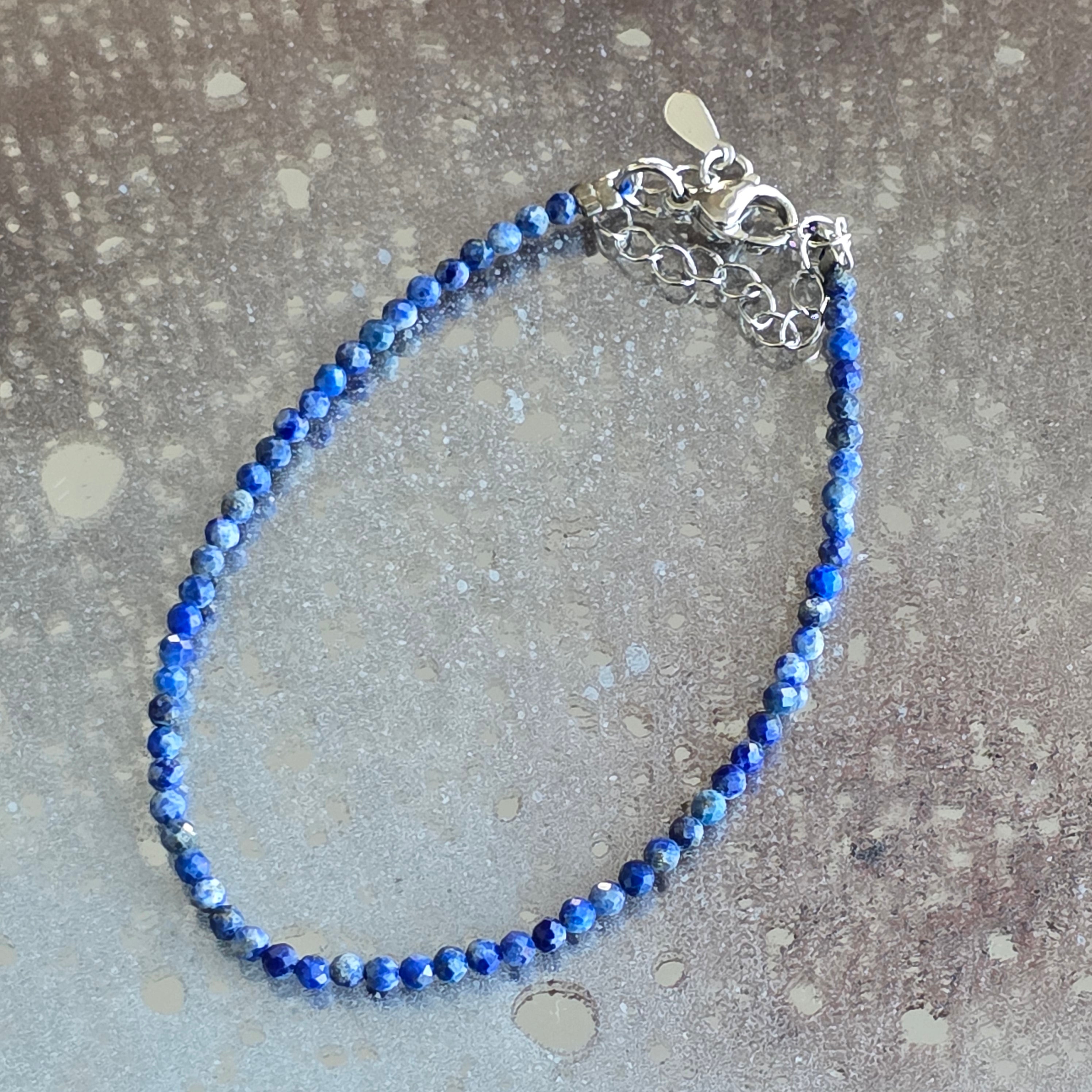 Description - Bracelet réglable en lapis-lazuli 2 mm