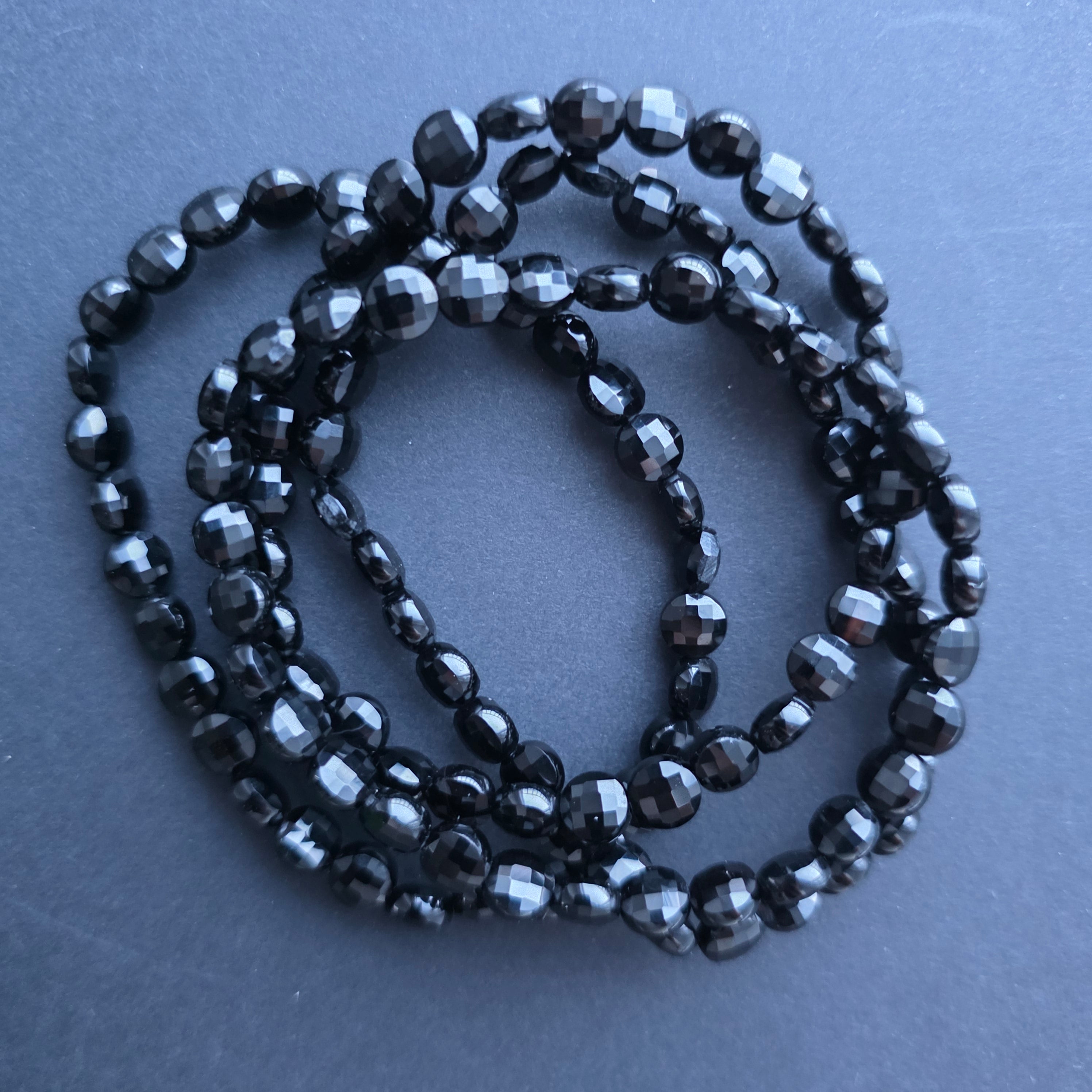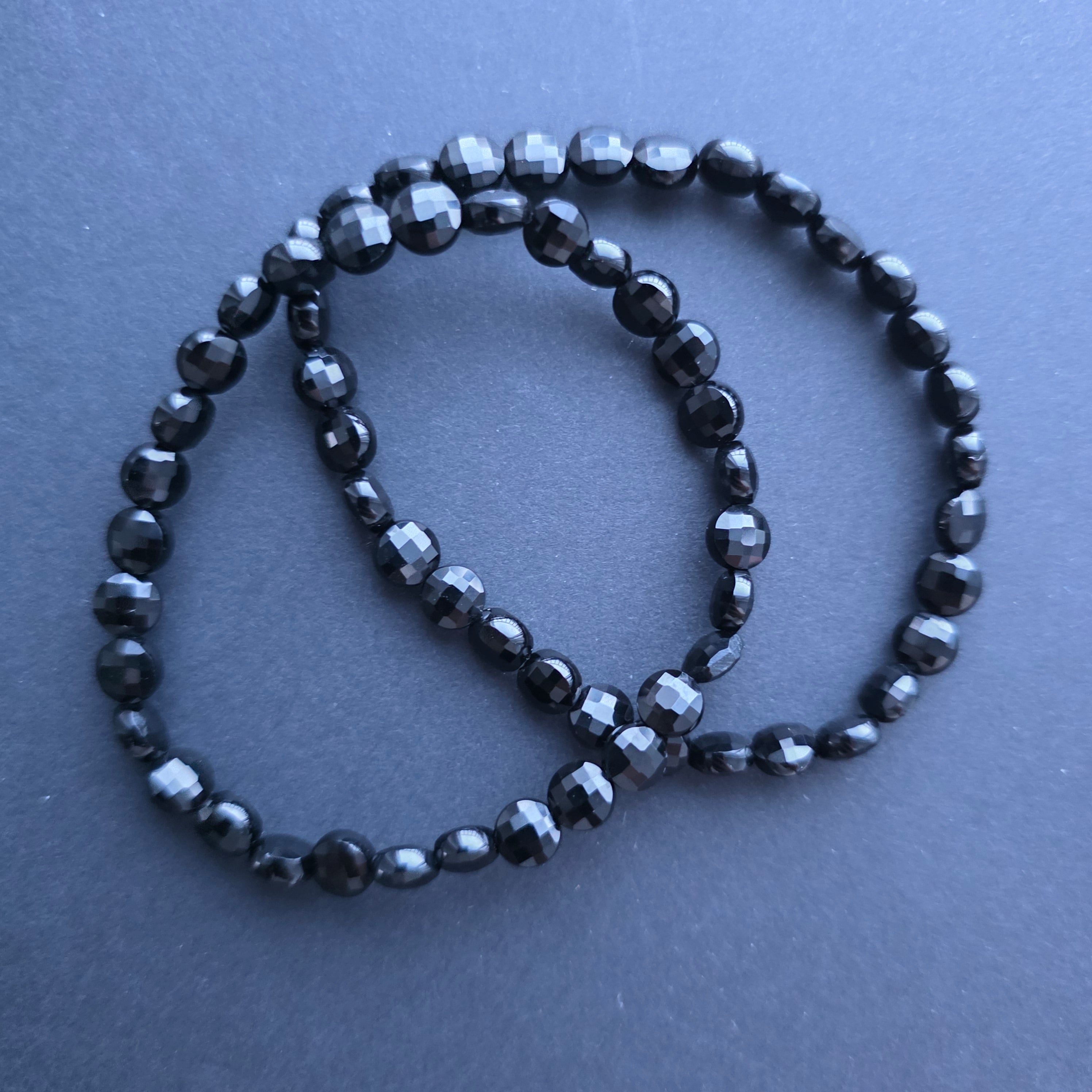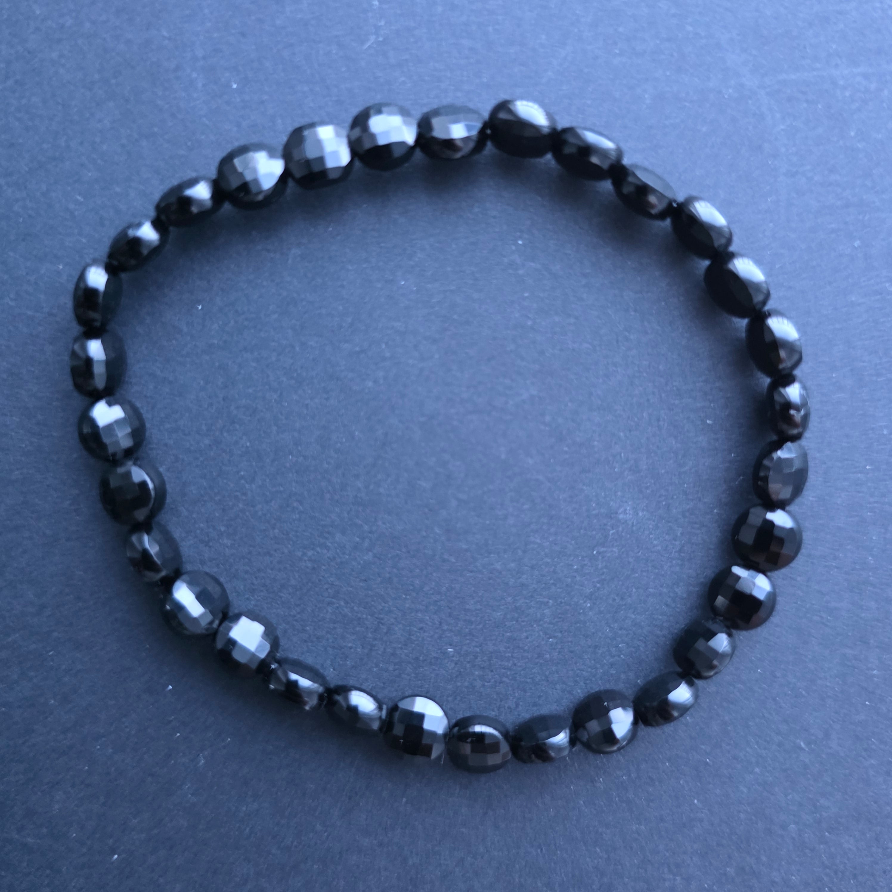 Bracelet à disques facettés en onyx noir mat 6x4 mm