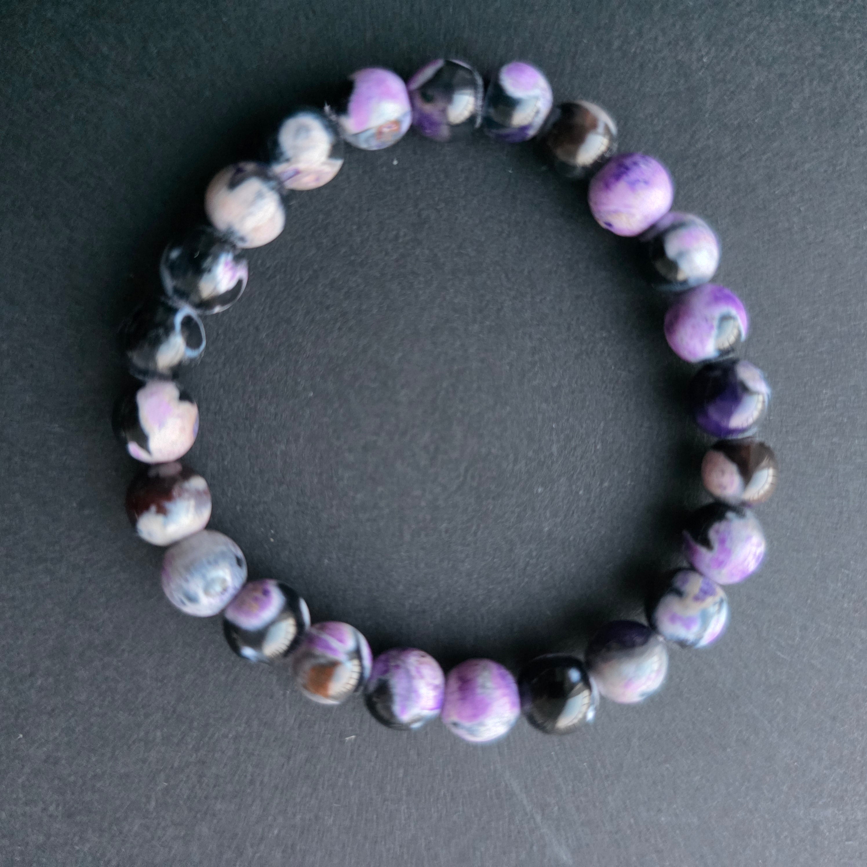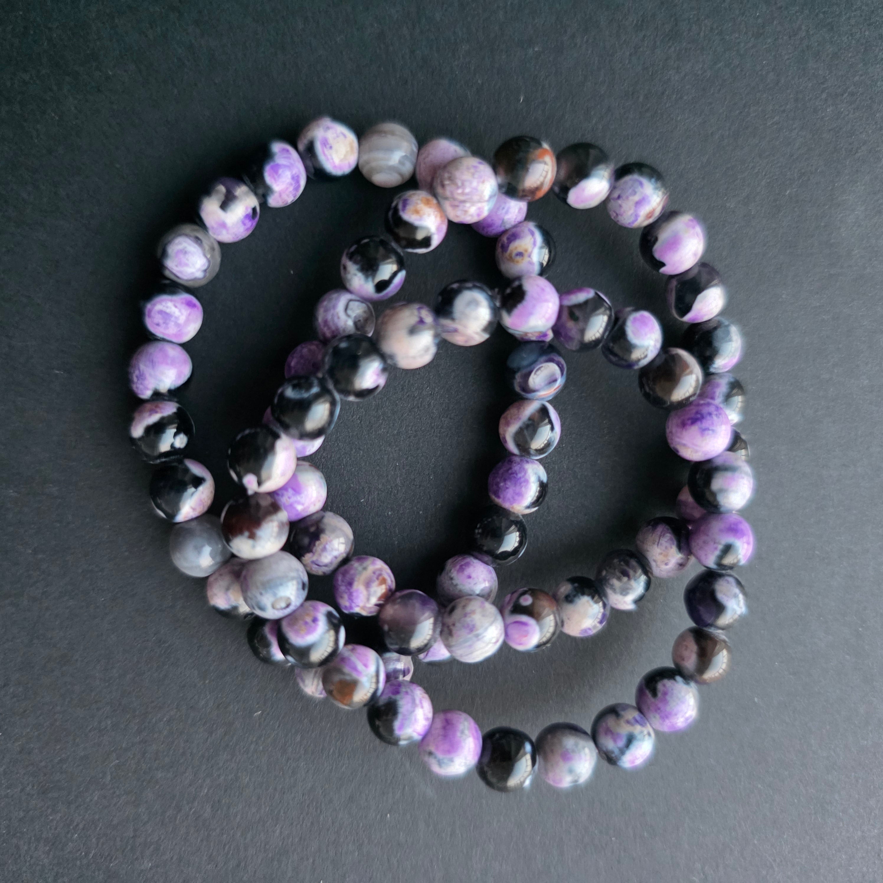 • Pierre : Agate pourpre (fils d’agate, coloré) – perles sphériques 6 mm