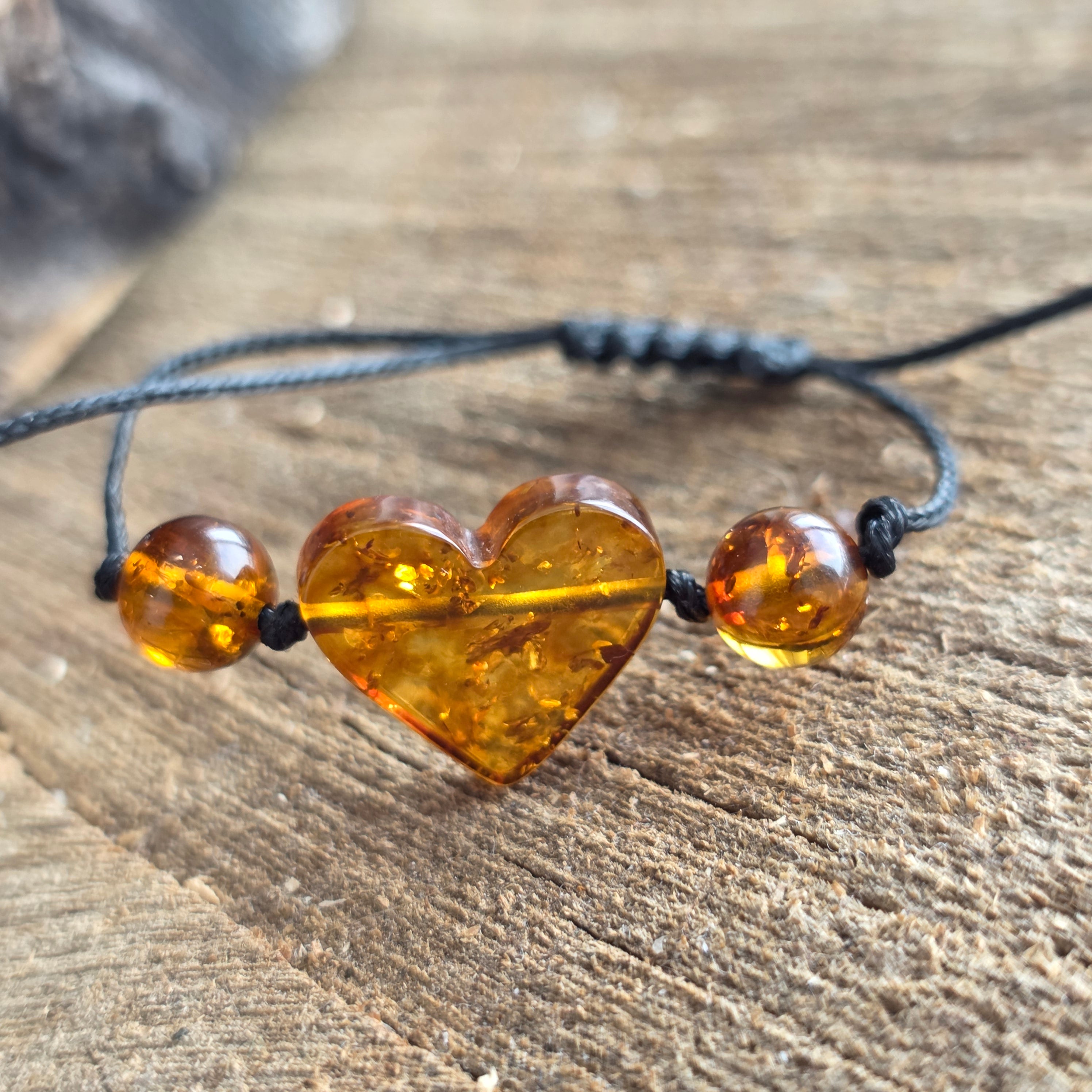 Description - Bracelet en ambre avec cordon ajustable | Love