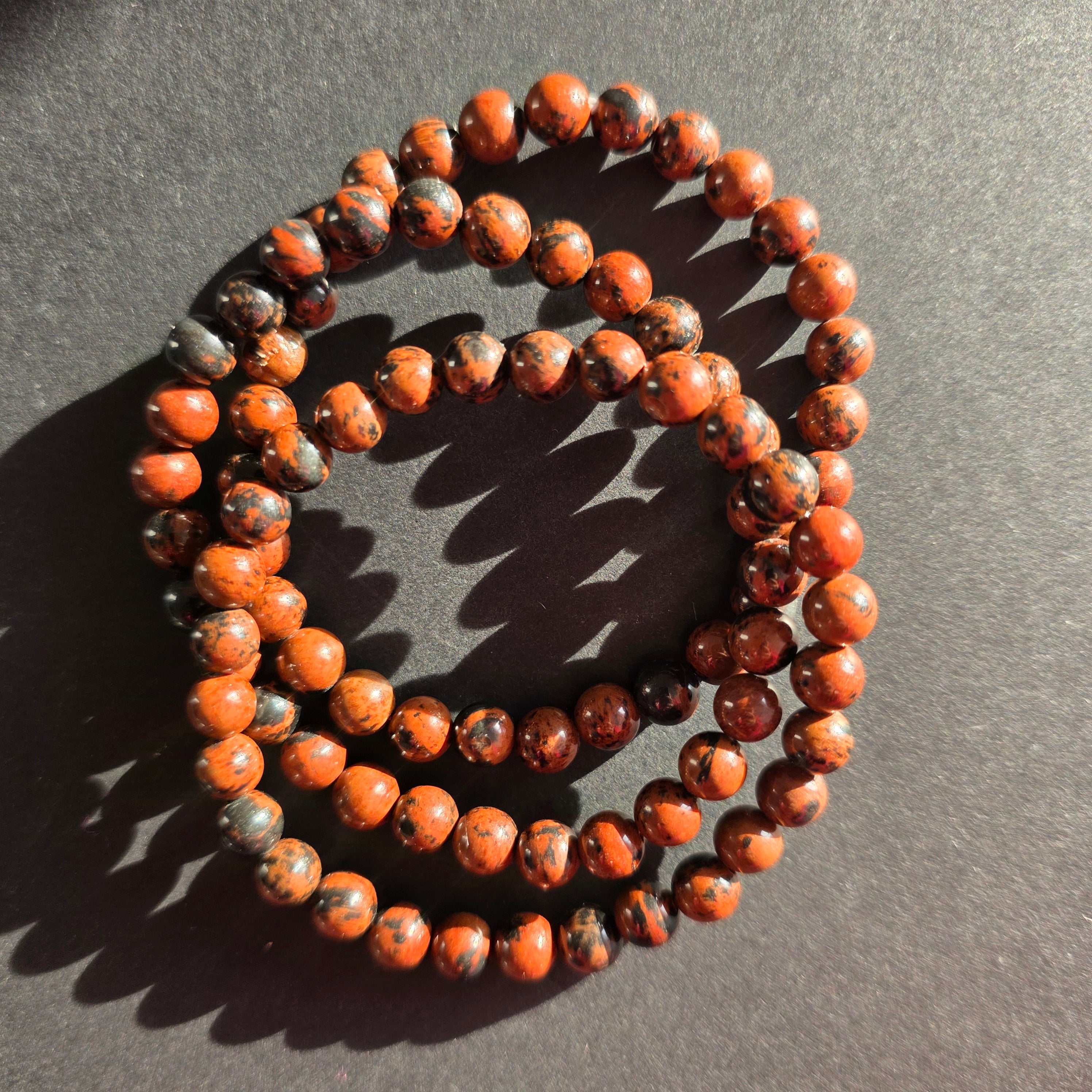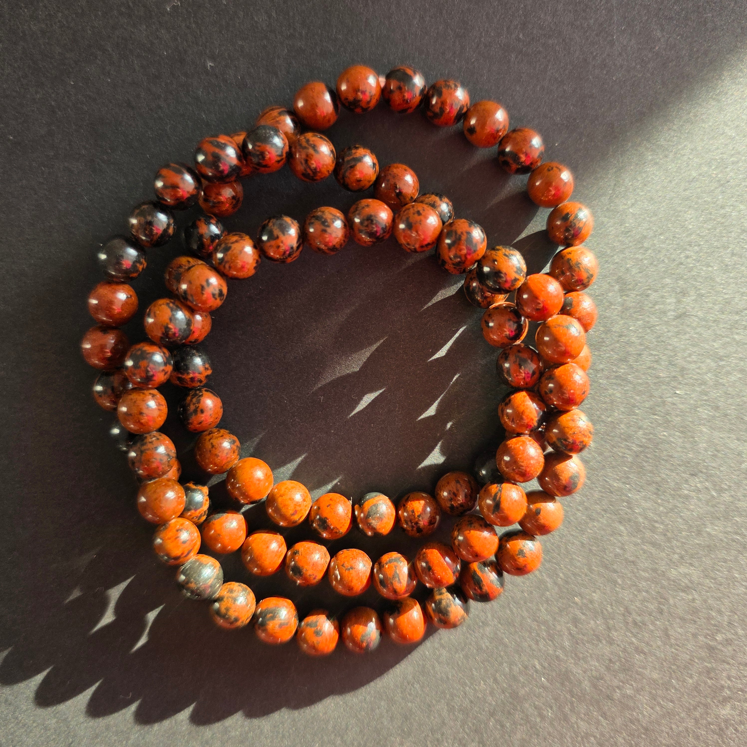 Description - Bracelet en obsidienne acajou 6-7 mm