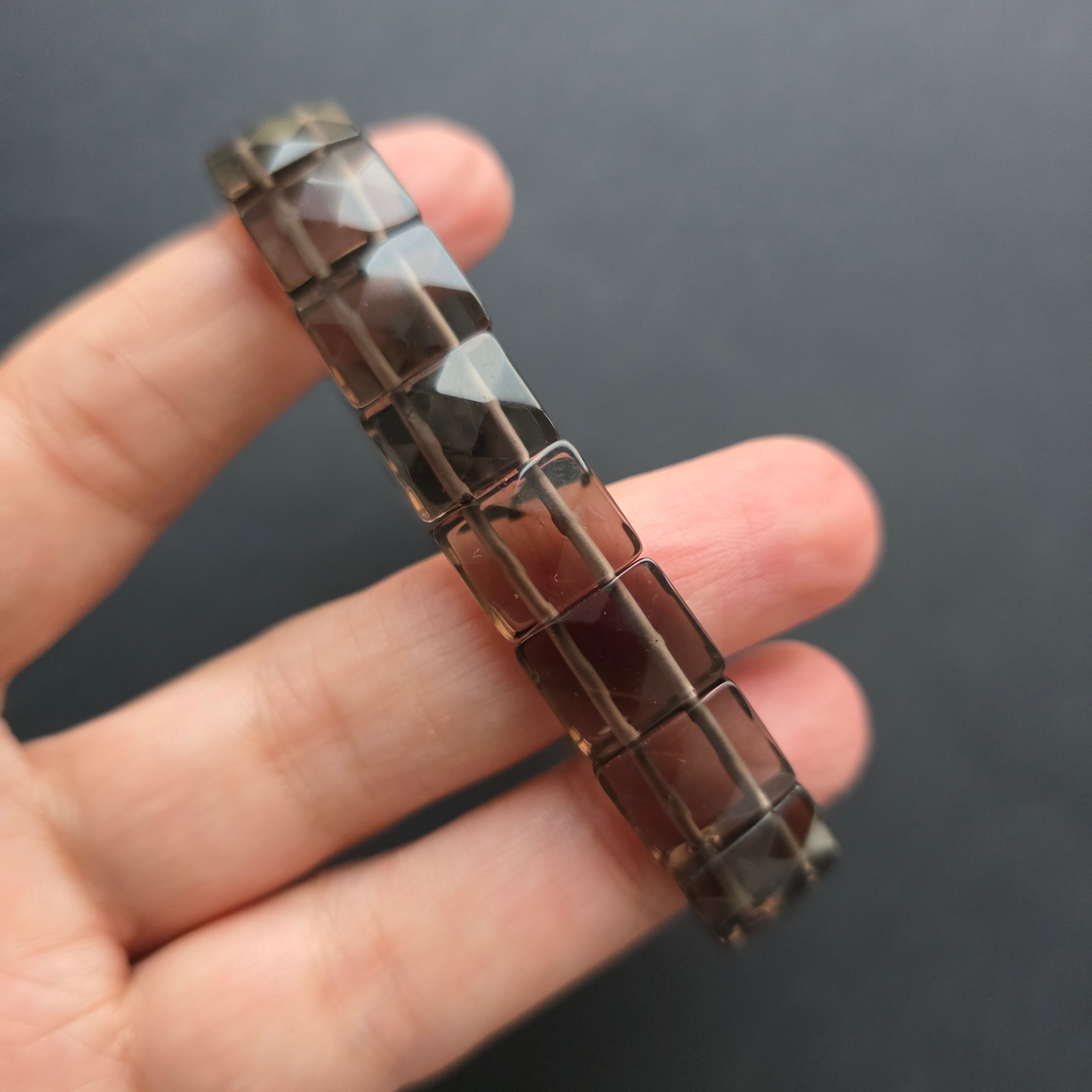 Bracelet en quartz fumé | FORCE en perles taille facettée 11*6 mm