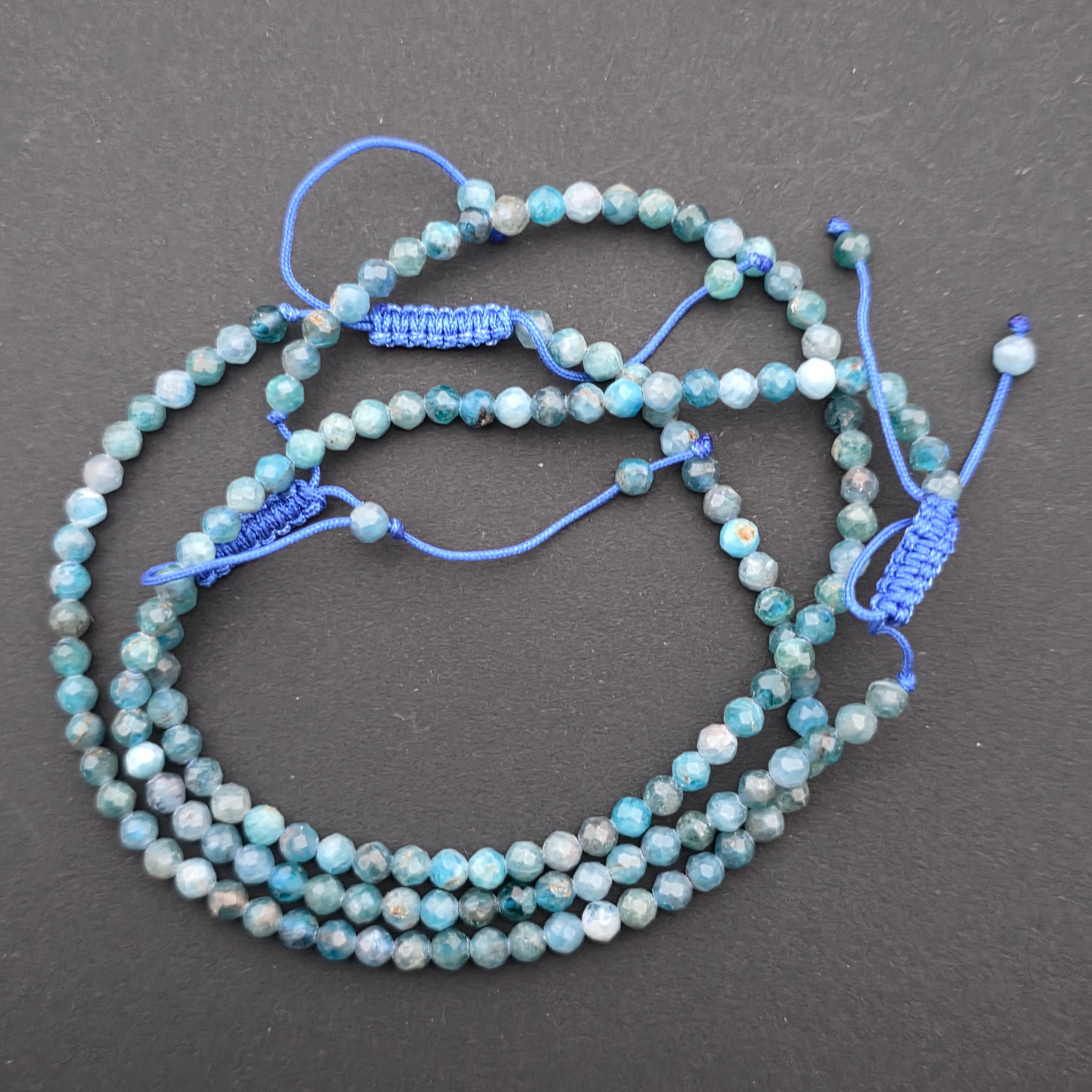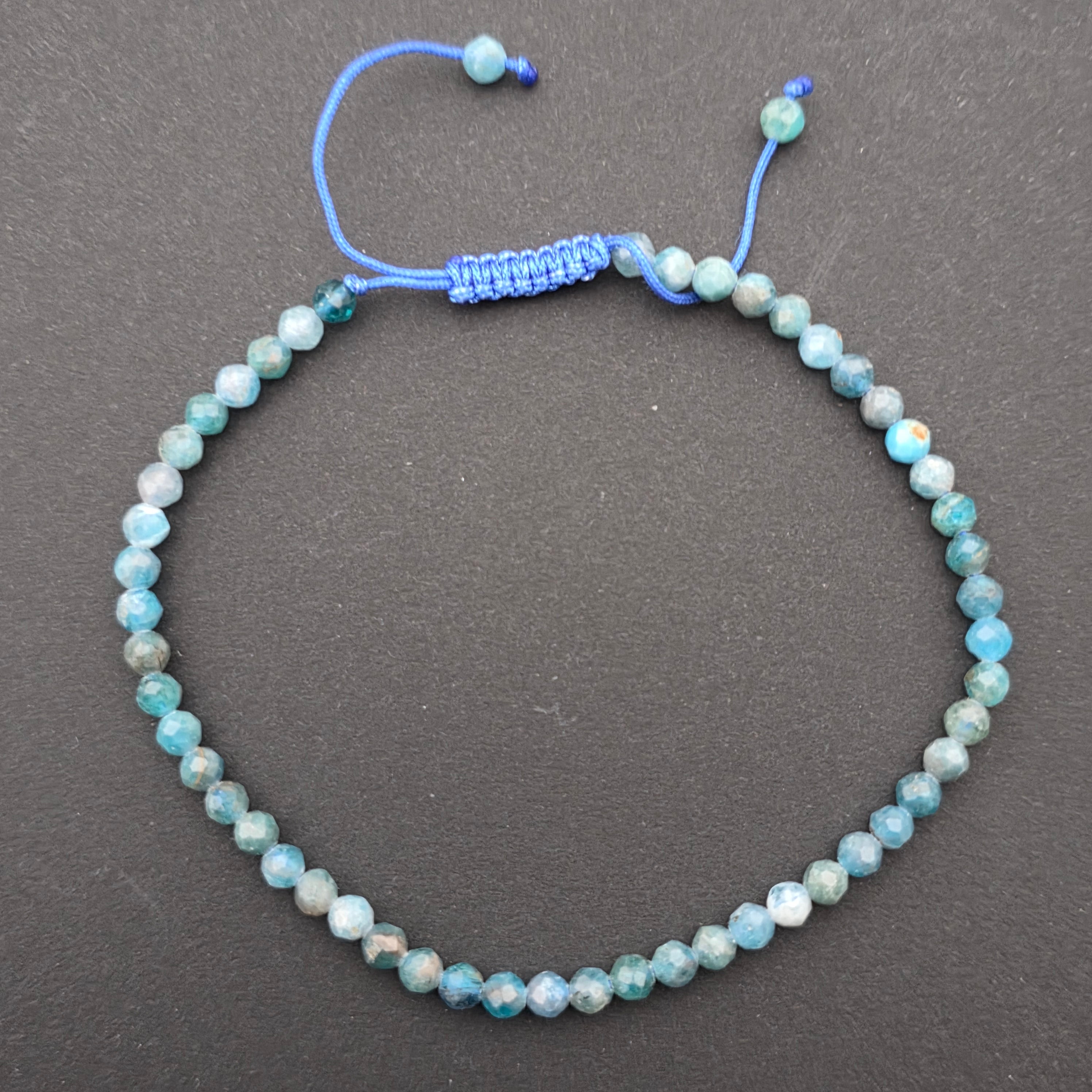 Bracelet facetté en apatite 3 mm avec cordon réglable